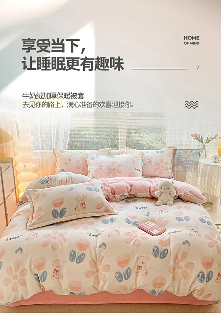 商品名称:慕尚 2022新款牛奶绒保暖单被套 小花熊