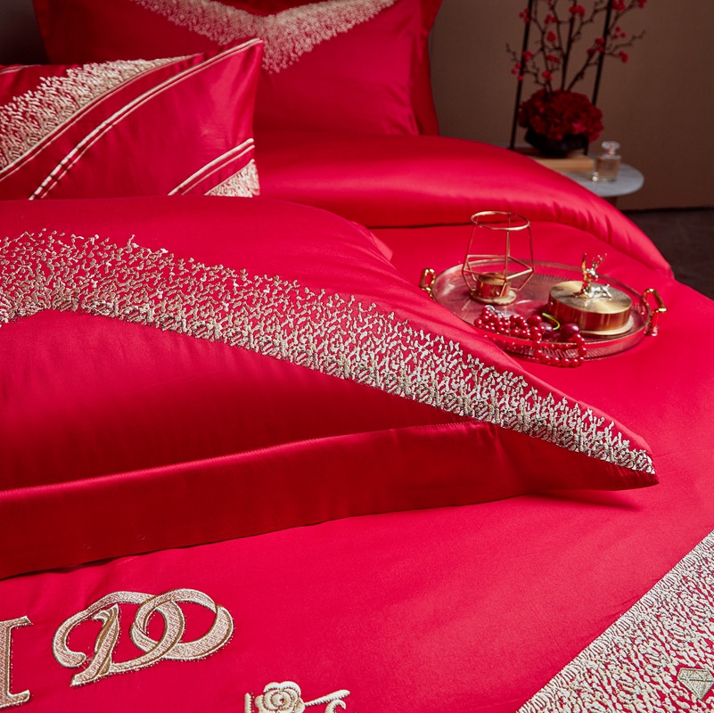 高大尚婚庆馆 2025新款长绒棉囍嫁系列婚庆四件套 格调,格调