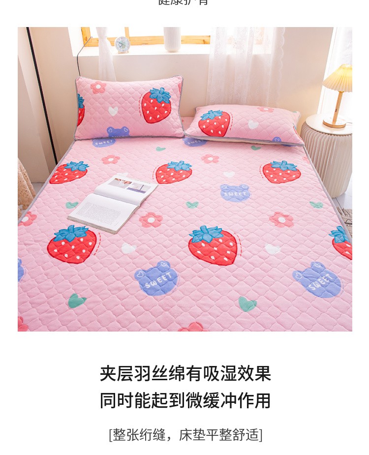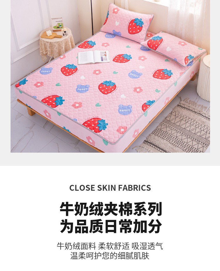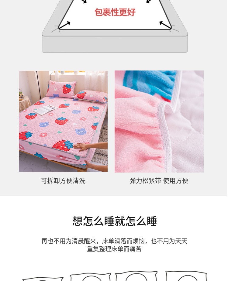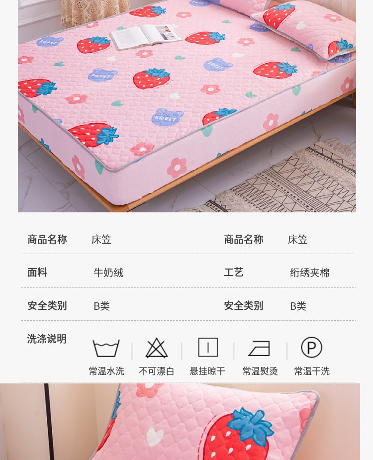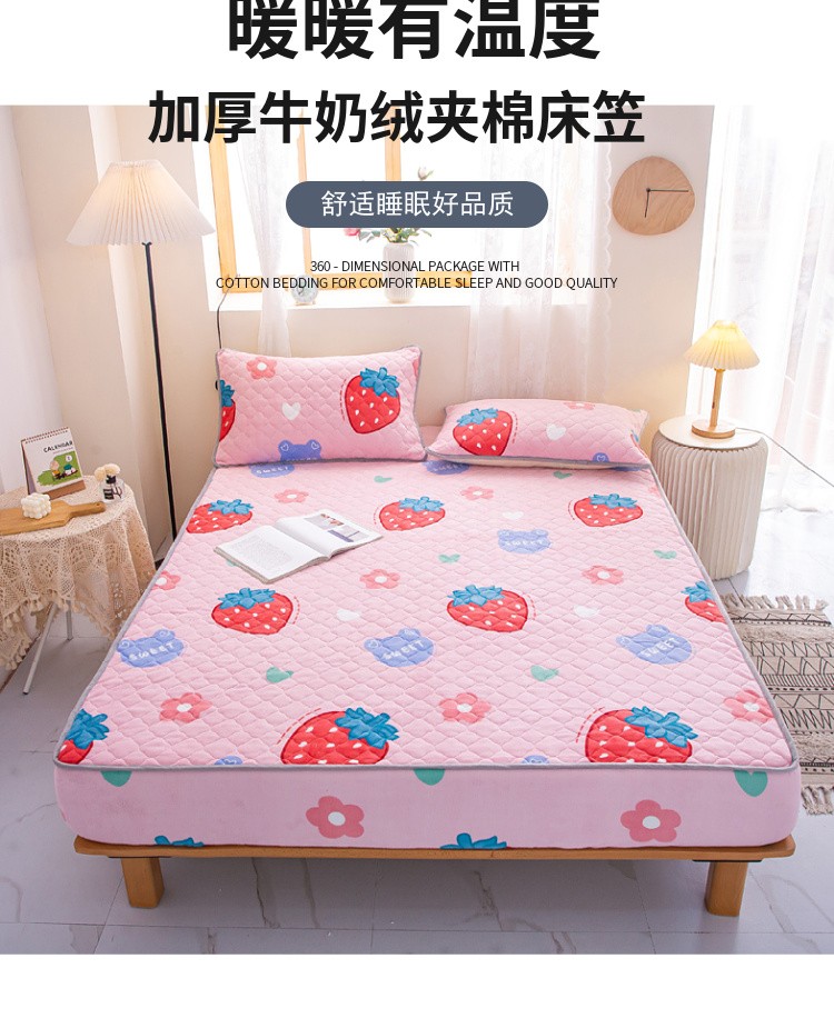 小虾米 2022新款大床牛奶绒夹棉床笠 草莓粉