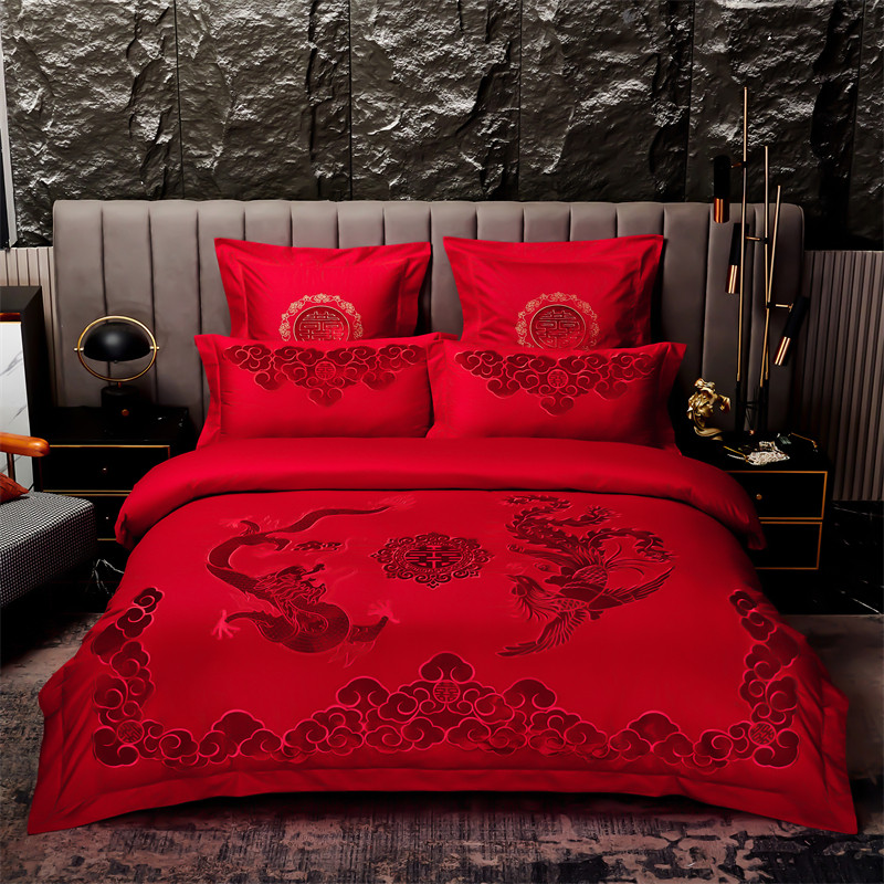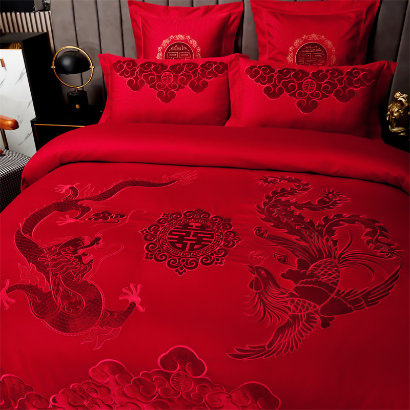 (总)皇潮婚庆馆 新款新疆长绒棉高端婚庆刺绣四件套,龙凤合玺,祥龙禧凤