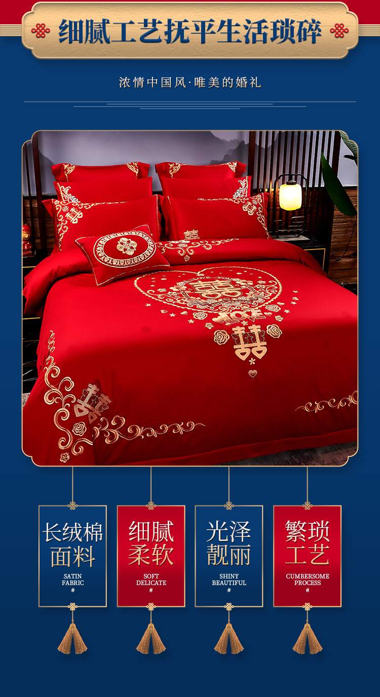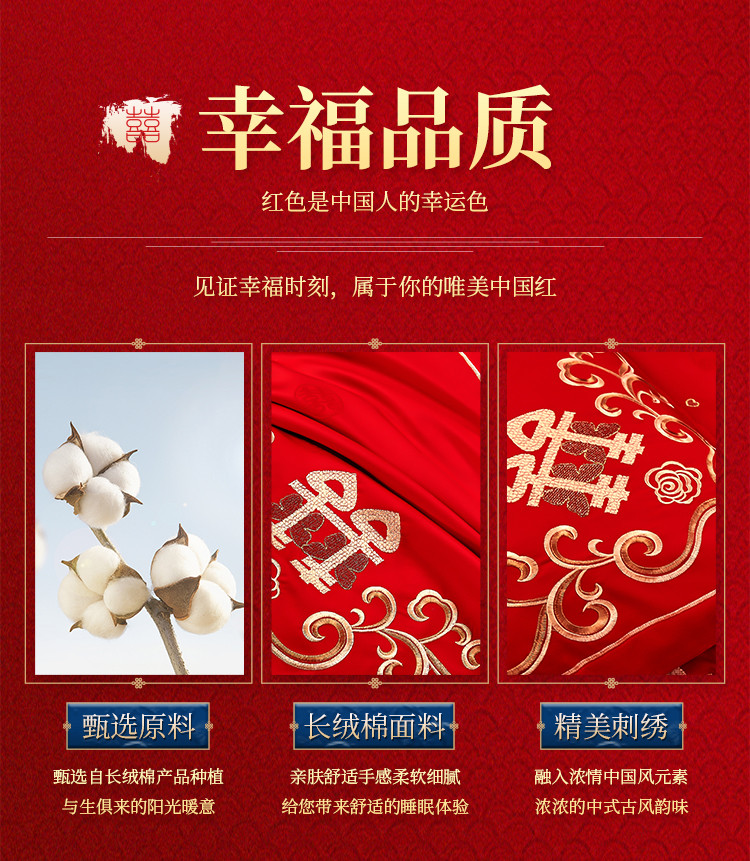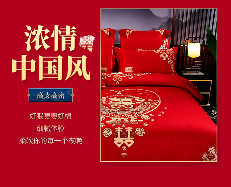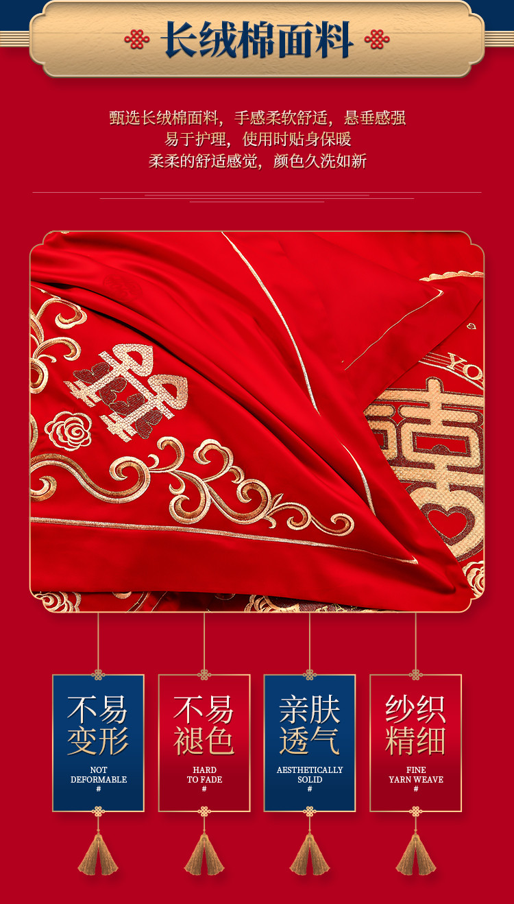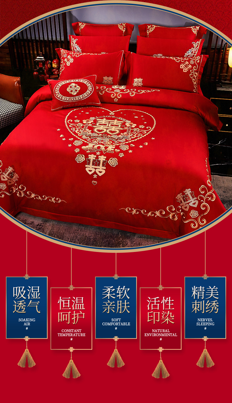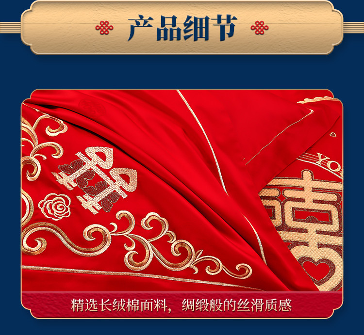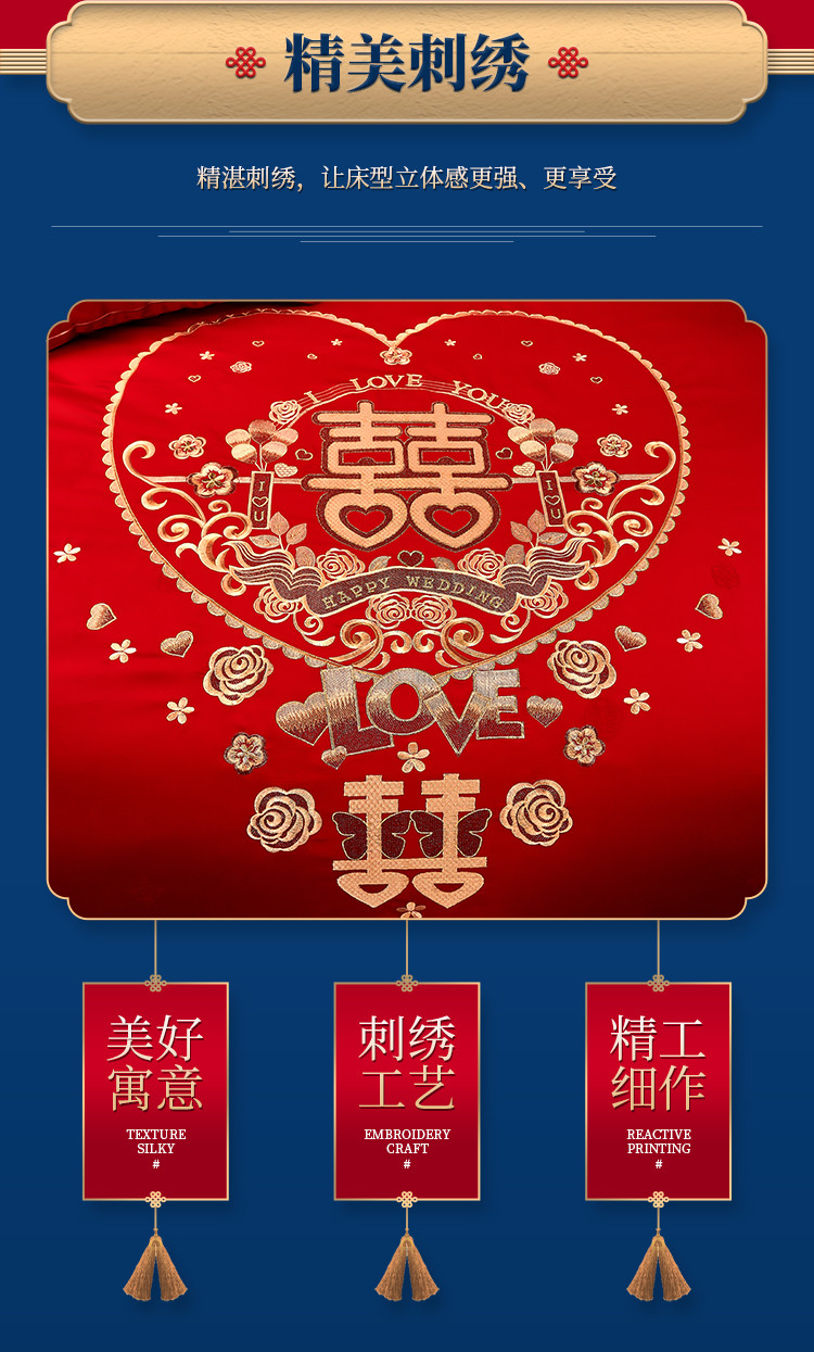 商品名称:皇潮婚庆馆 新款60支长绒棉婚庆四件套 小欢喜-金