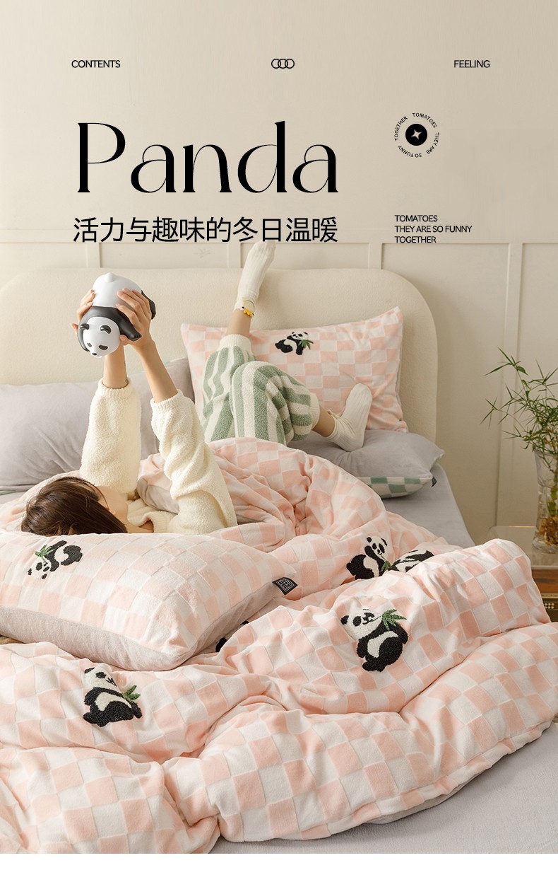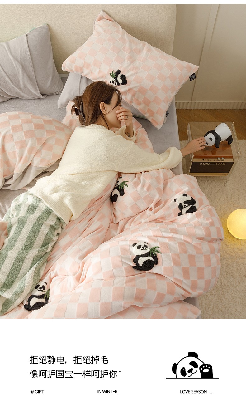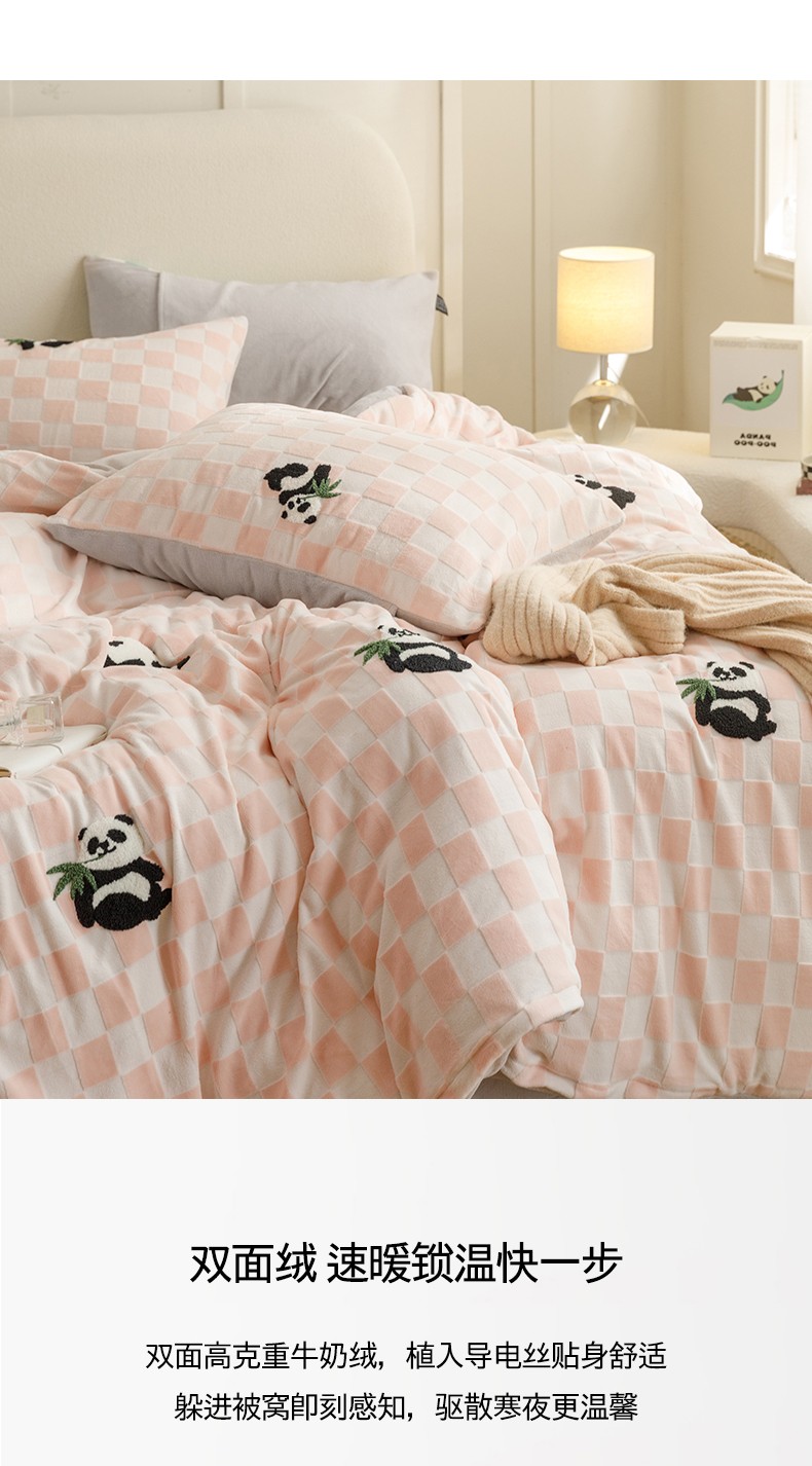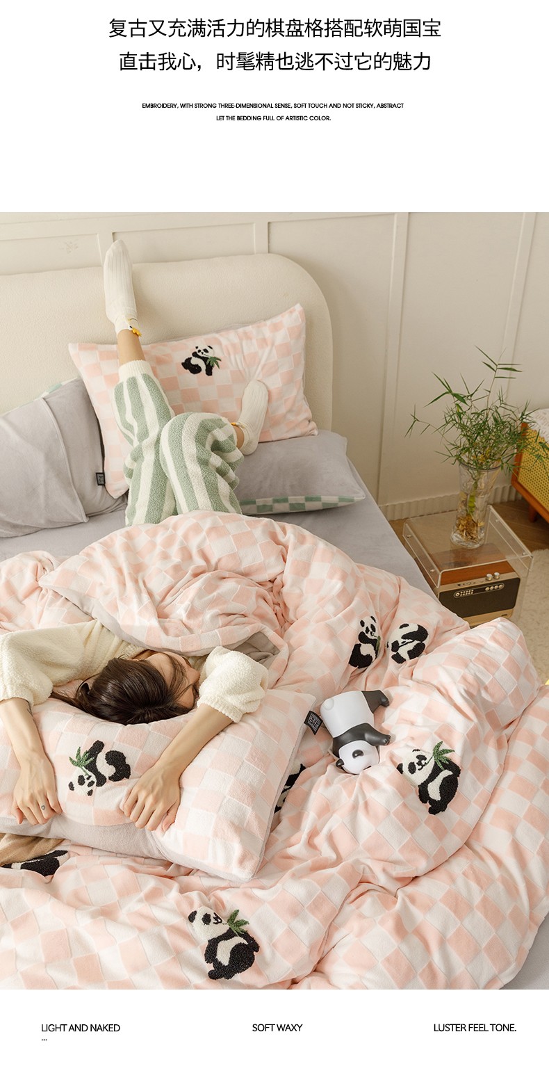 2022锦芙牛奶绒250克全消光绣花四件套,情绪熊猫-白竹