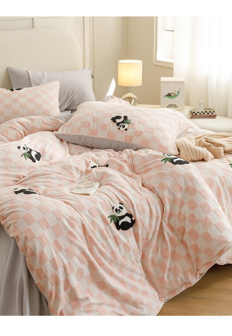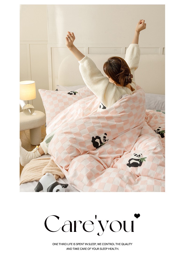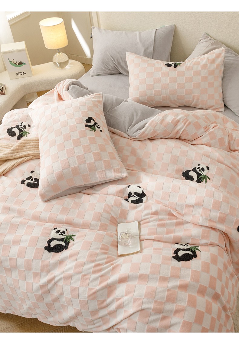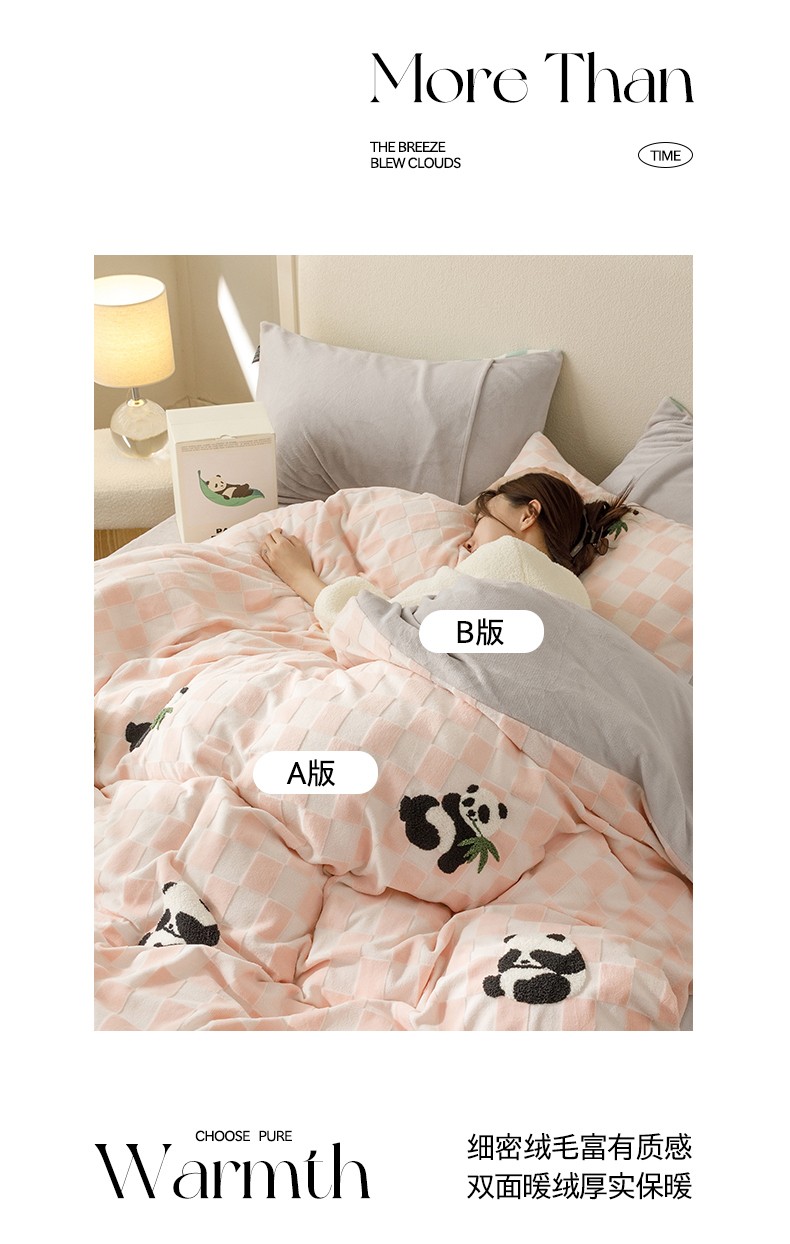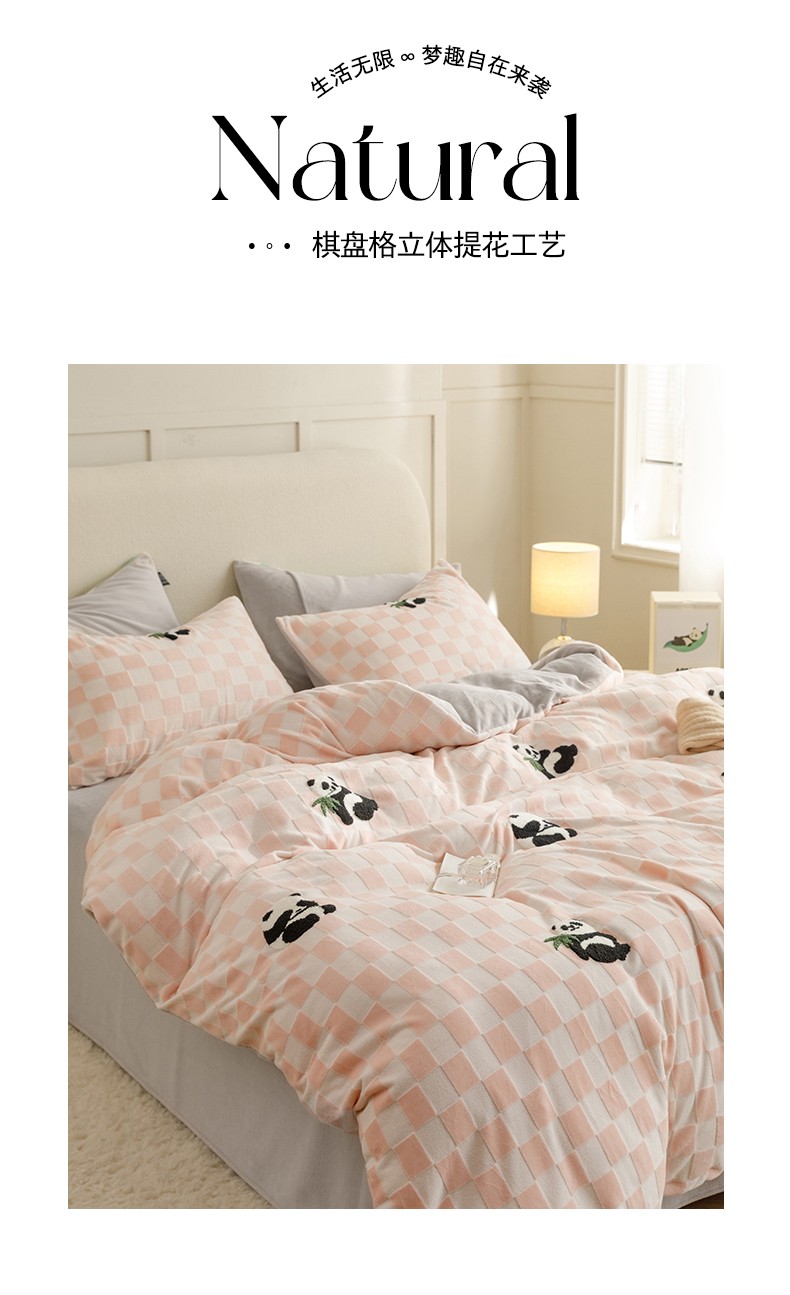 2022锦芙牛奶绒250克全消光绣花四件套,情绪熊猫-白竹
