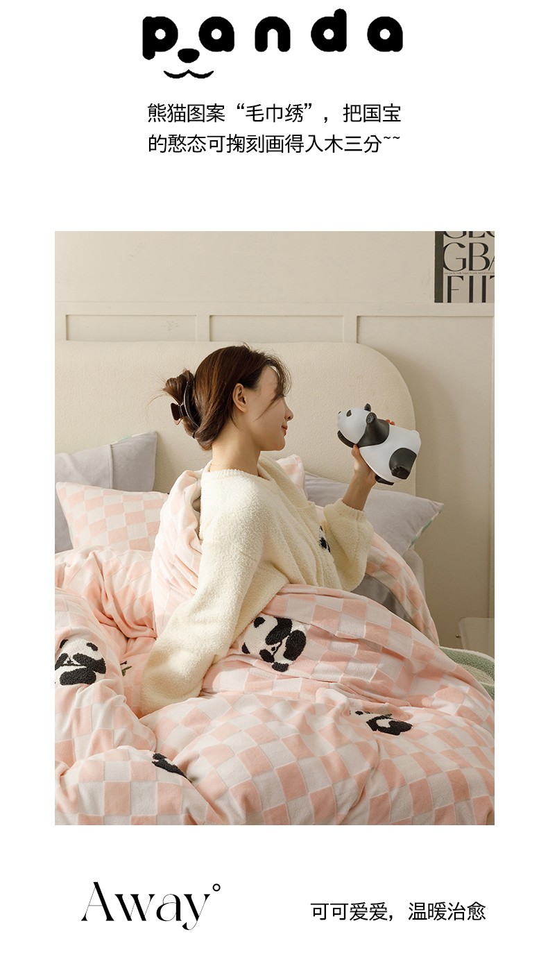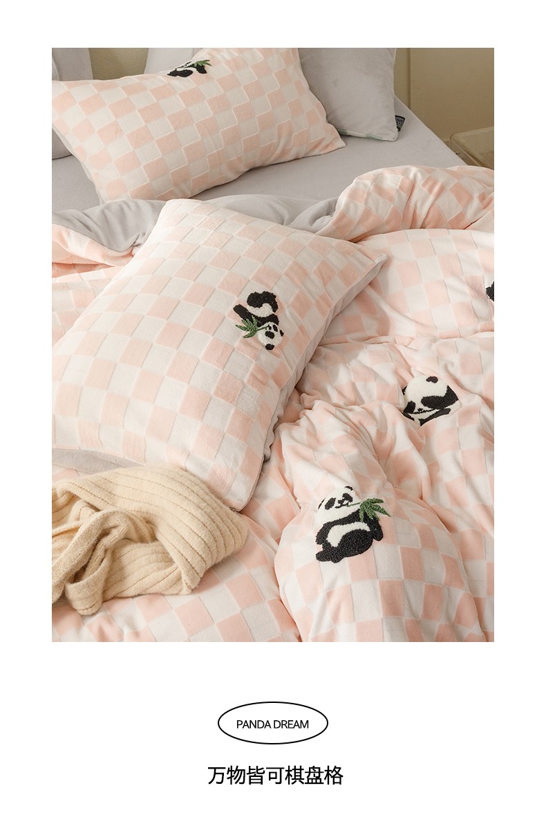 A类母婴级棋盘格牛奶绒毛巾绣熊猫系列(风格二) 棋盘格熊猫-奶盐粉
