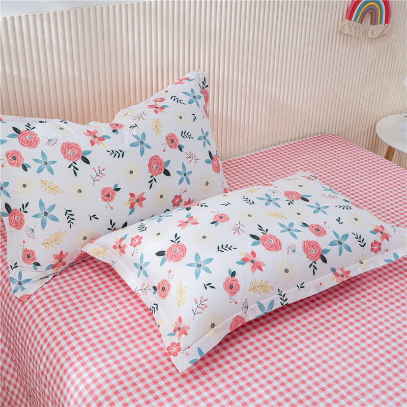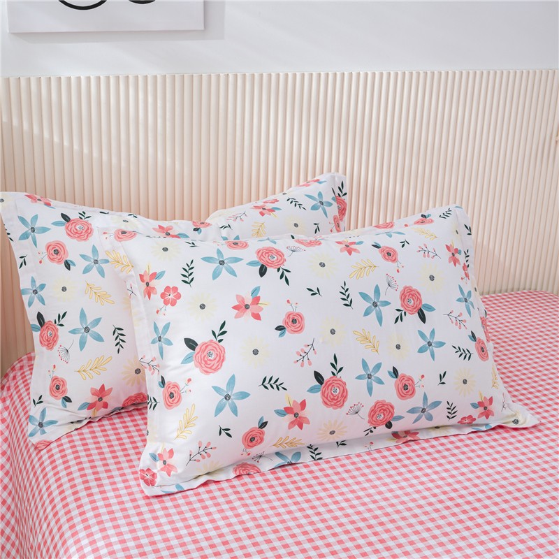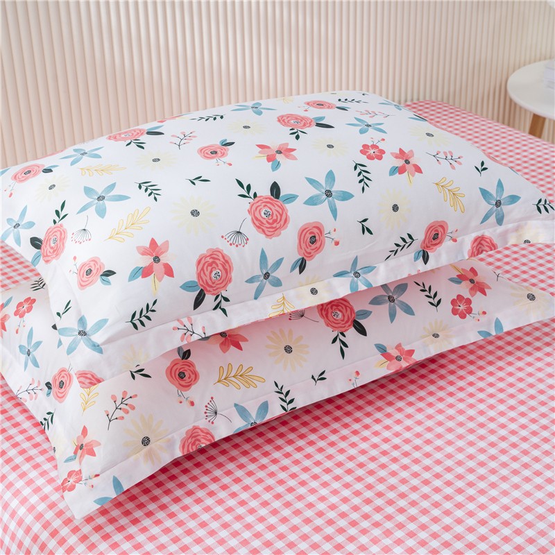 茗婷2025纯棉印花单人枕套全棉双人枕头套方枕红粉佳人