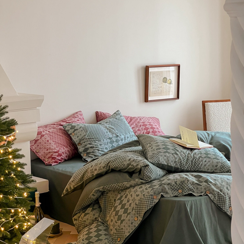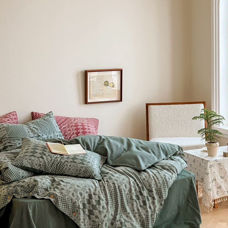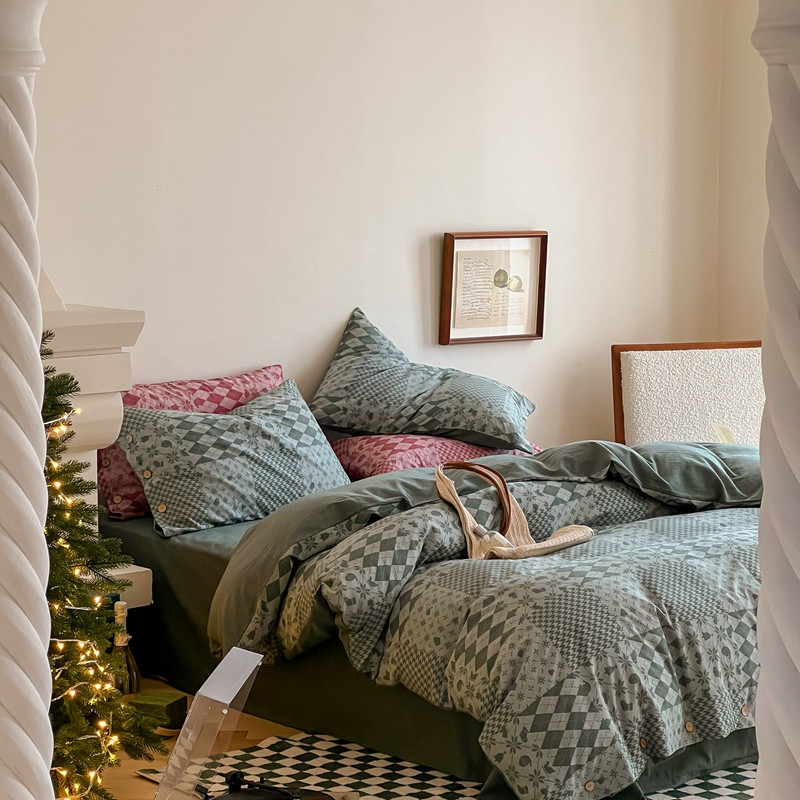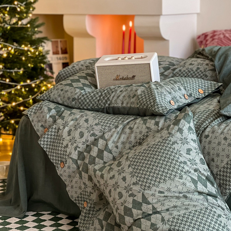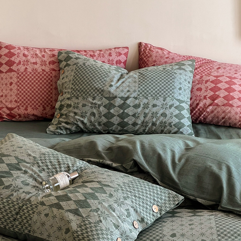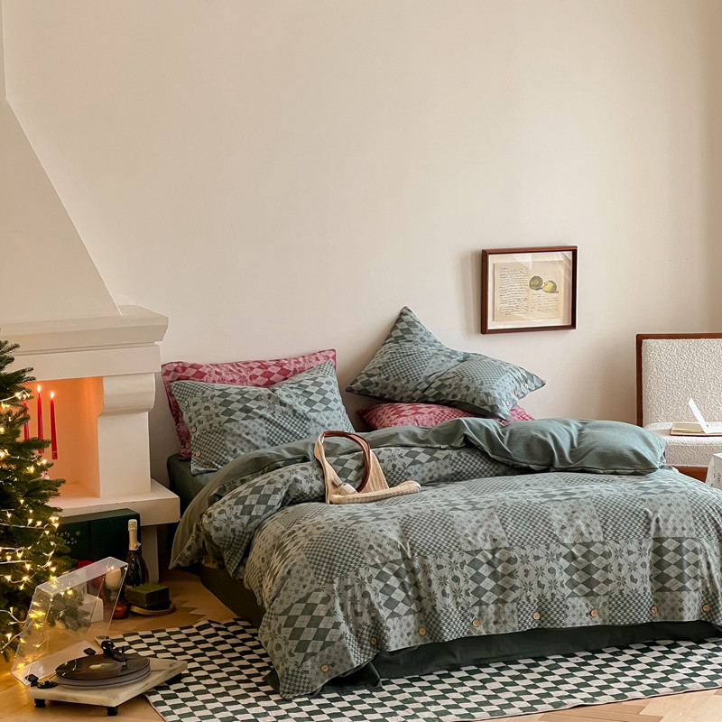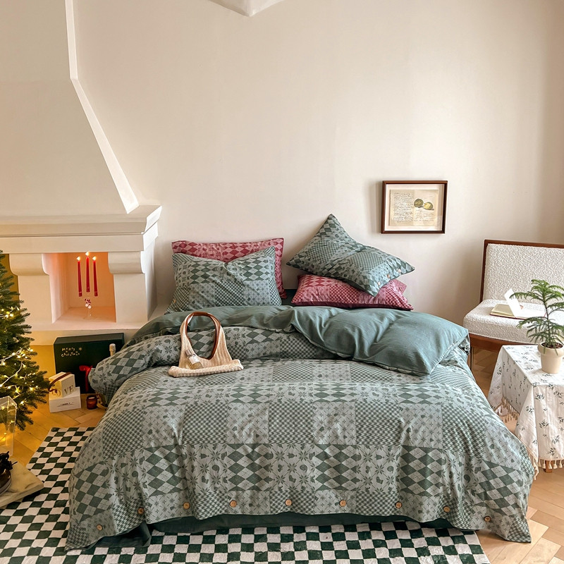 (总)华超针织 2021新款天竺棉千鸟格四件套,千鸟格豆沙,千鸟格海蓝,千鸟格姜黄,千鸟格墨绿,千鸟格藕色,千鸟格炭黑