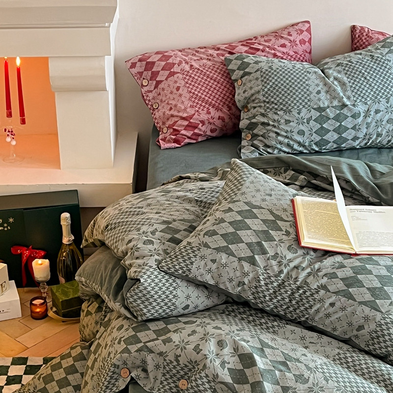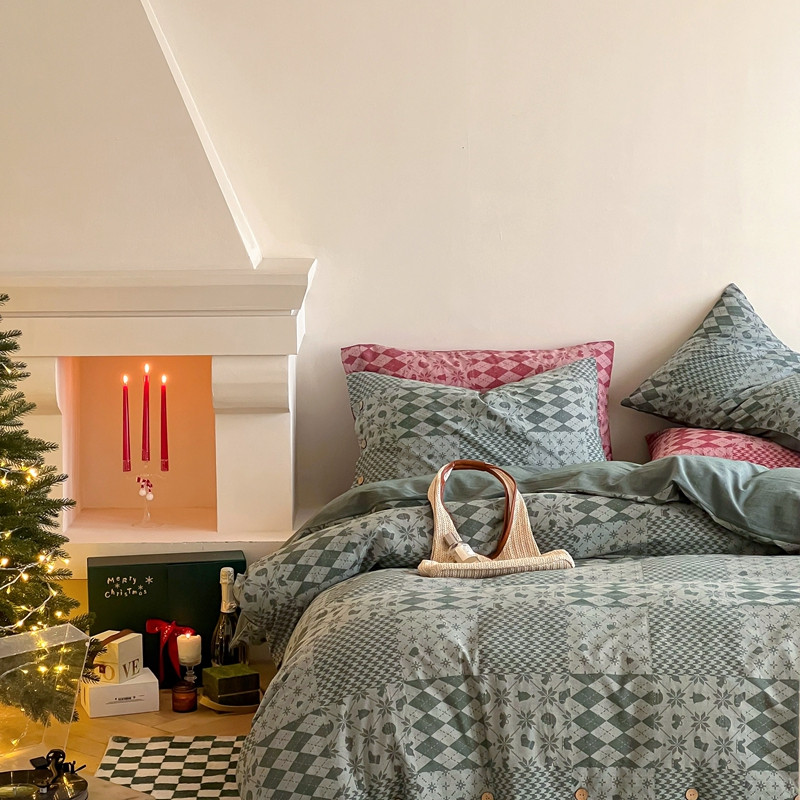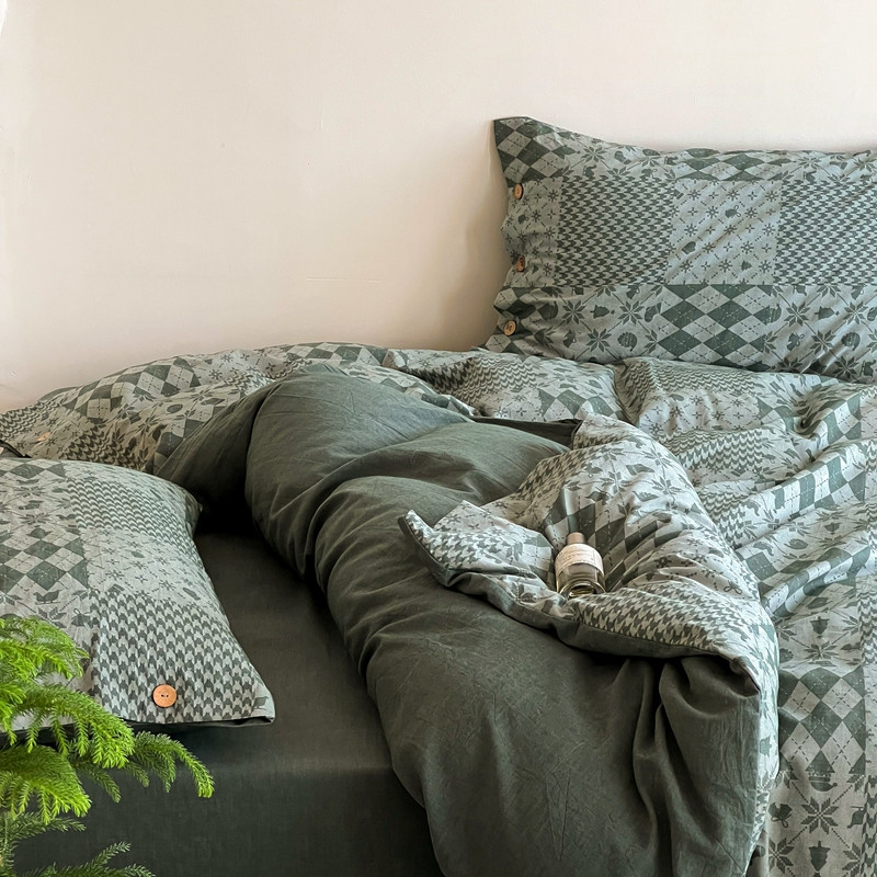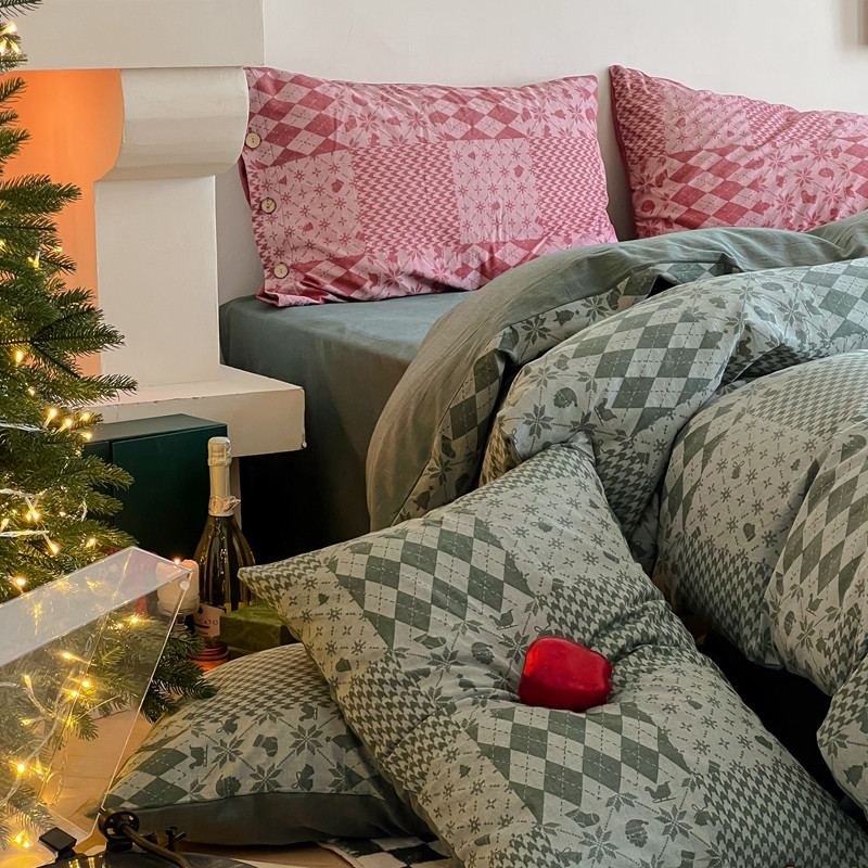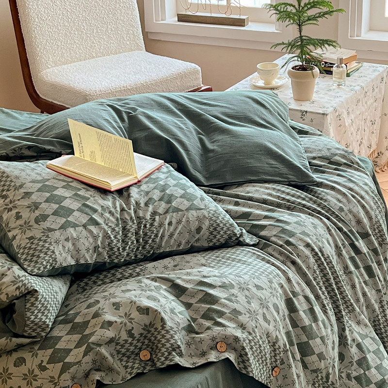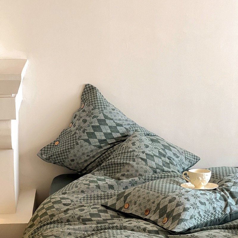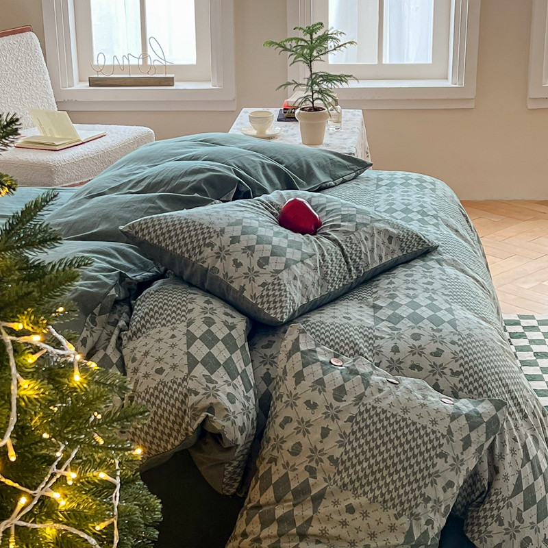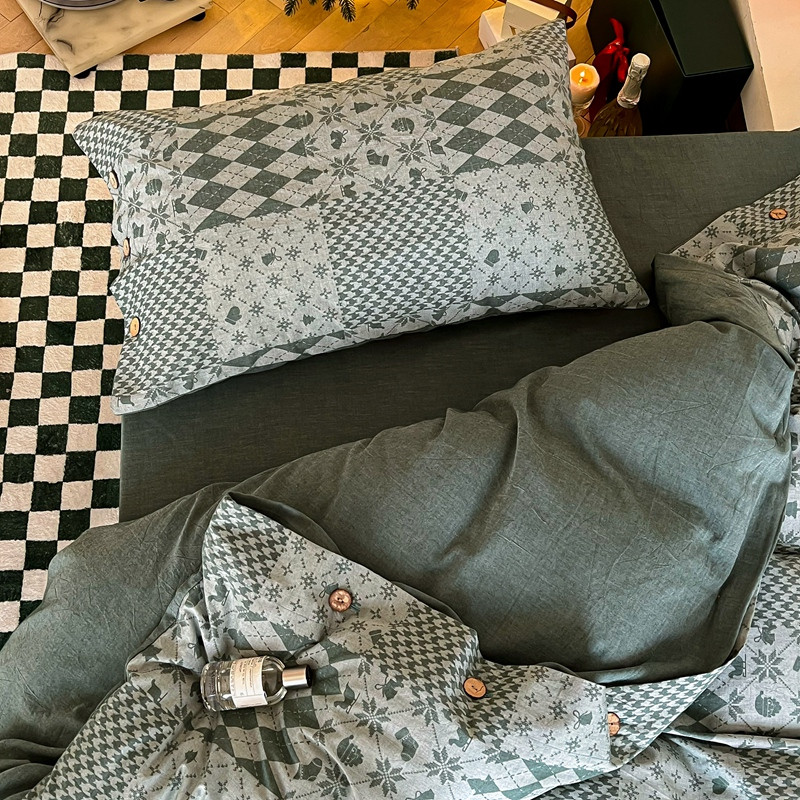 (总)华超针织 2021新款天竺棉千鸟格四件套,千鸟格豆沙,千鸟格海蓝,千鸟格姜黄,千鸟格墨绿,千鸟格藕色,千鸟格炭黑