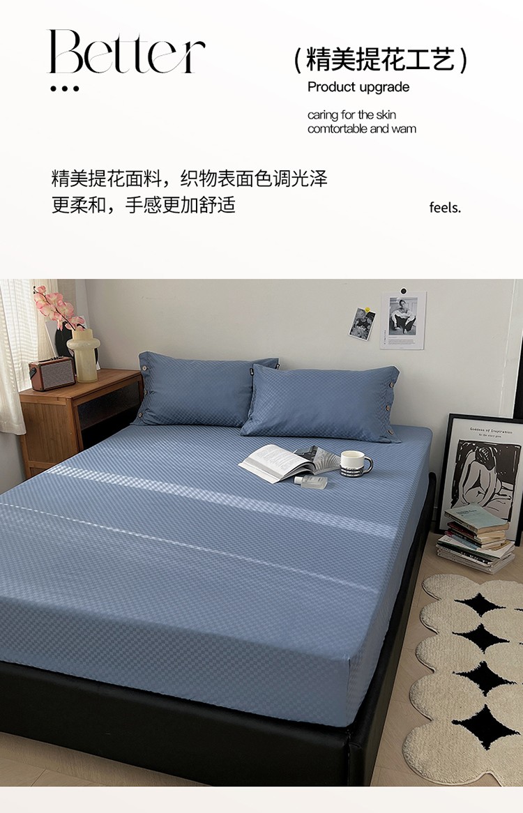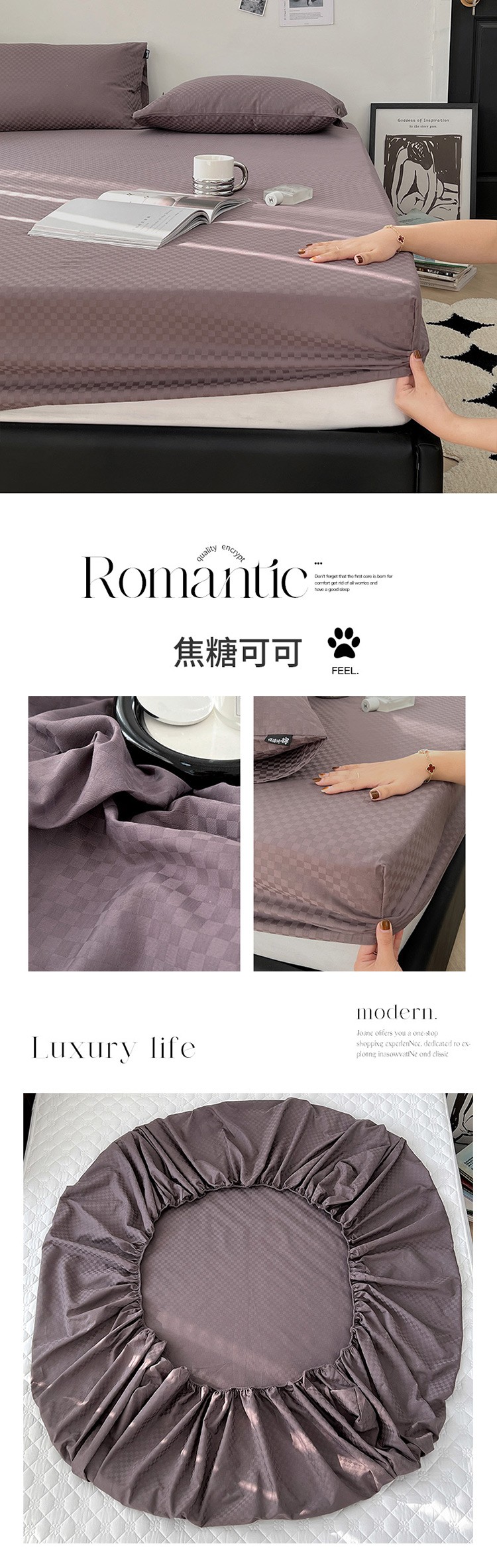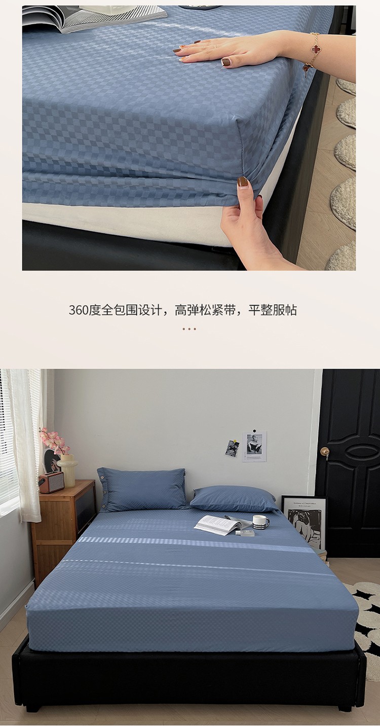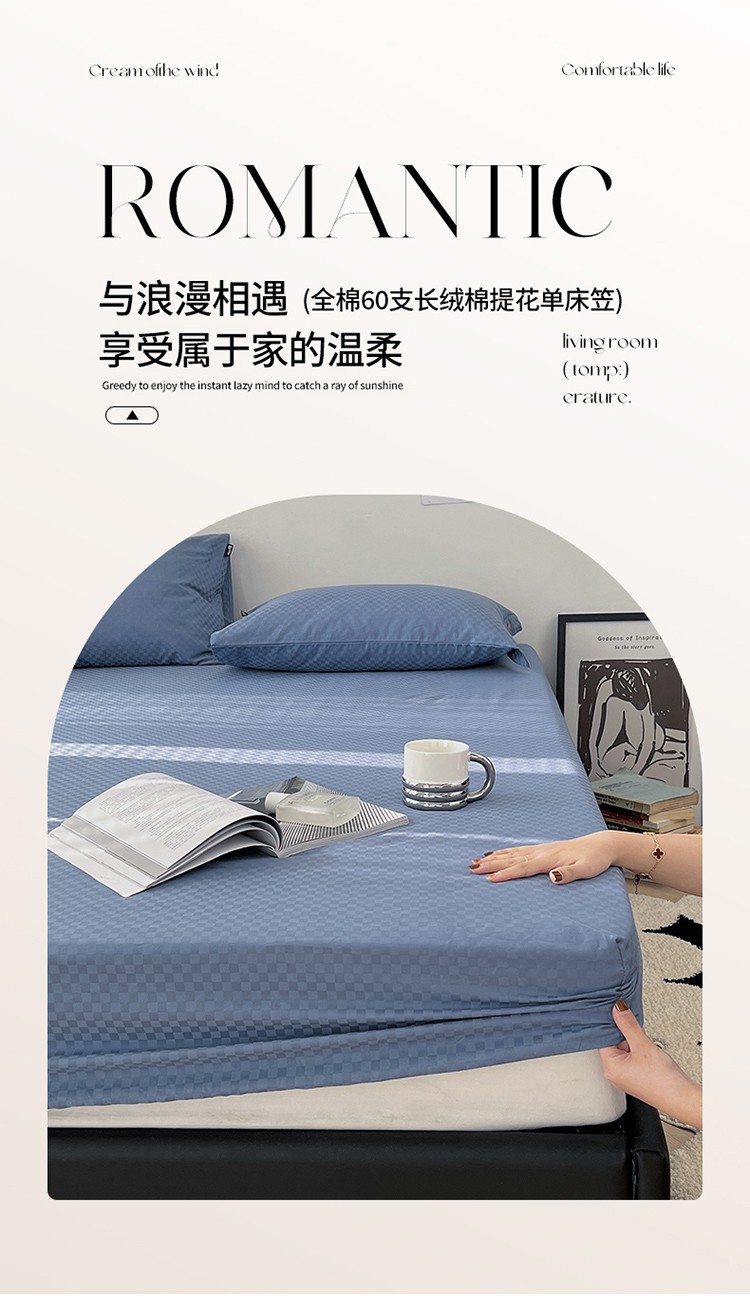 (总) 三朵 2023新款全棉提花贡缎锻格单品床笠及三件套