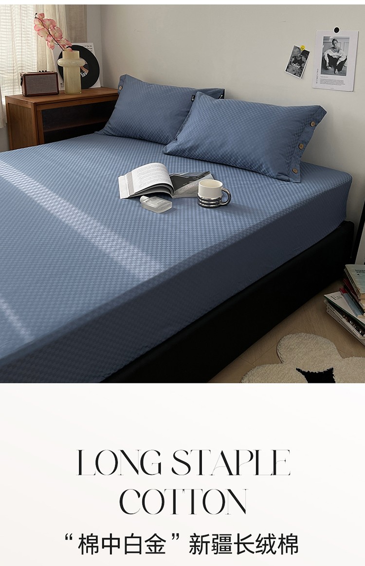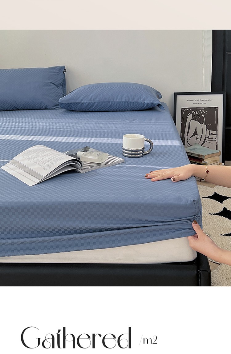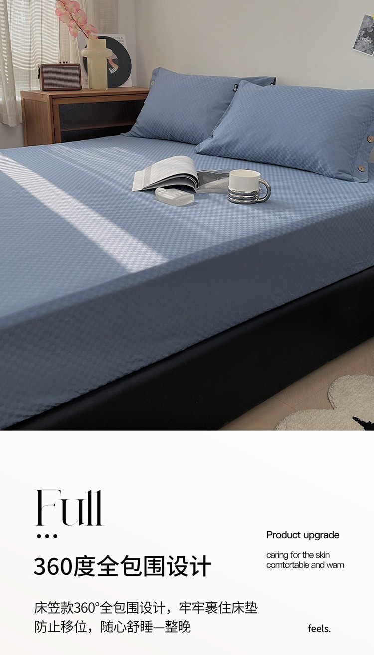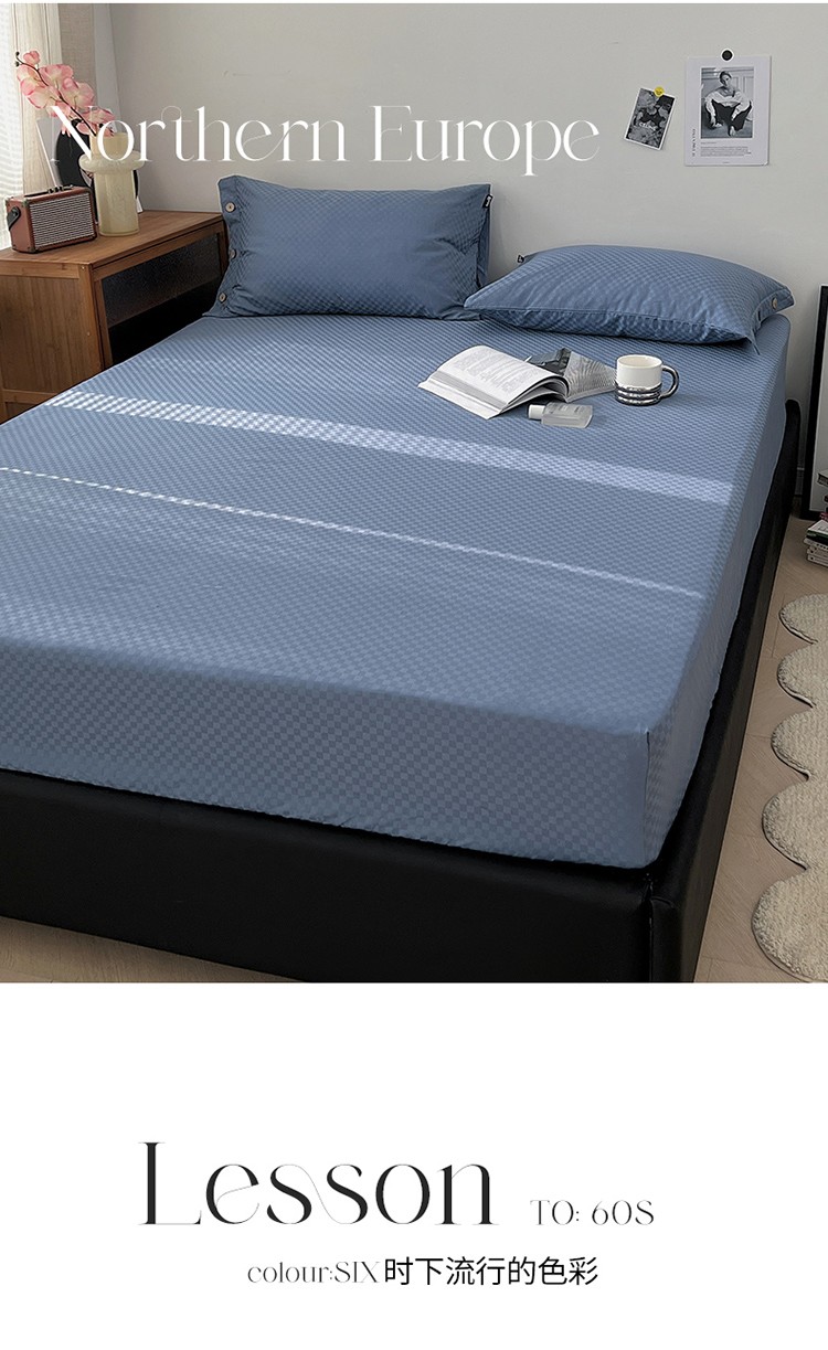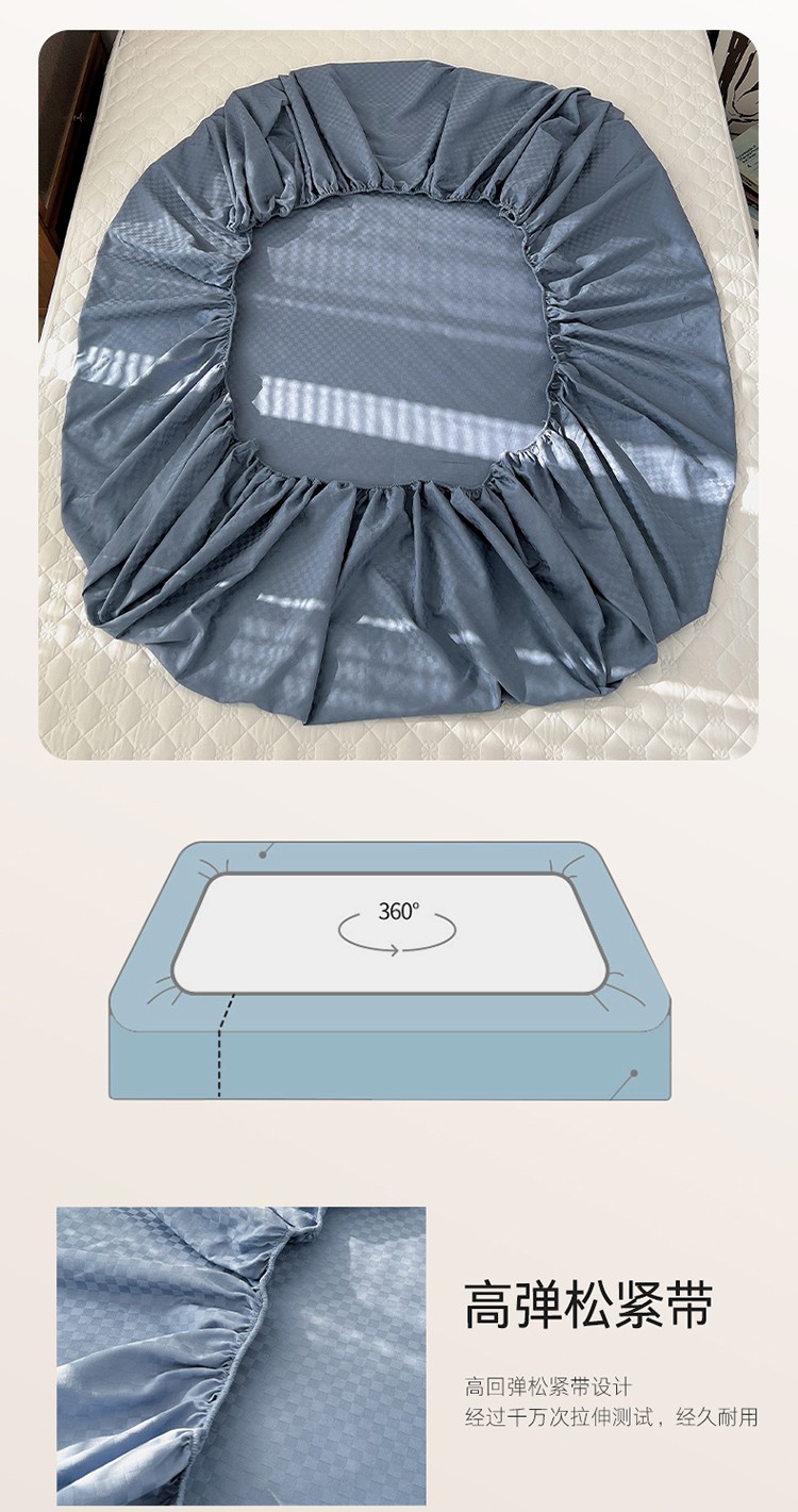 (总) 三朵 2023新款全棉提花贡缎锻格单品床笠及三件套