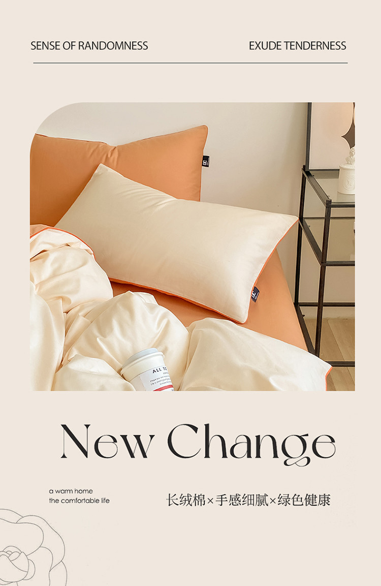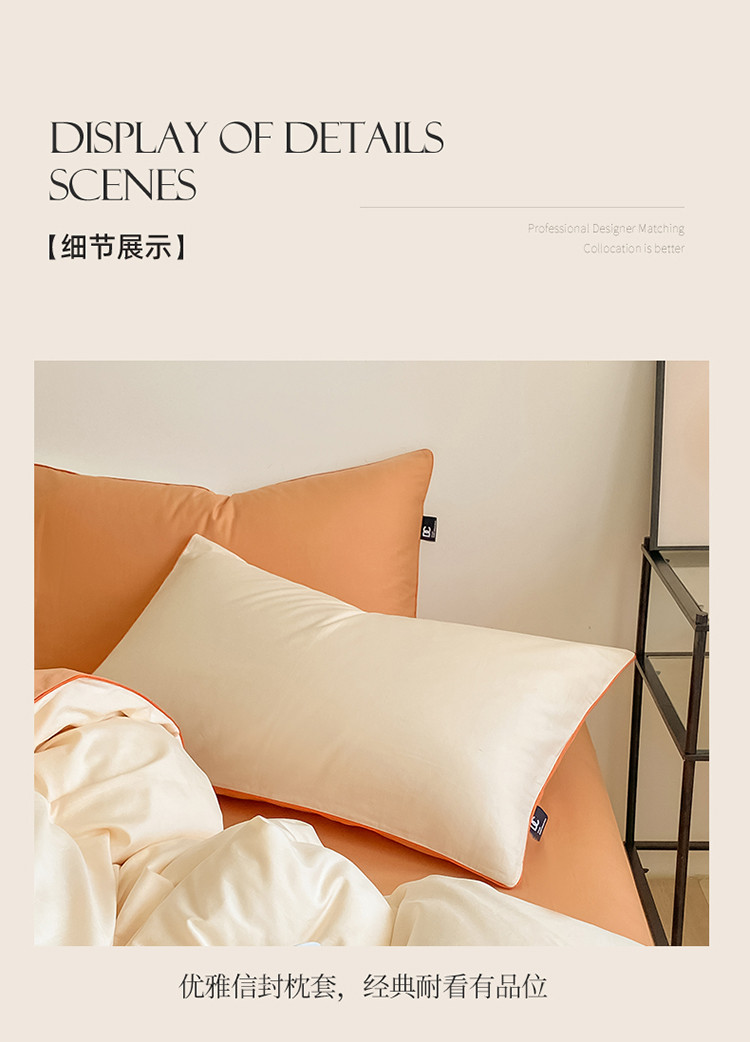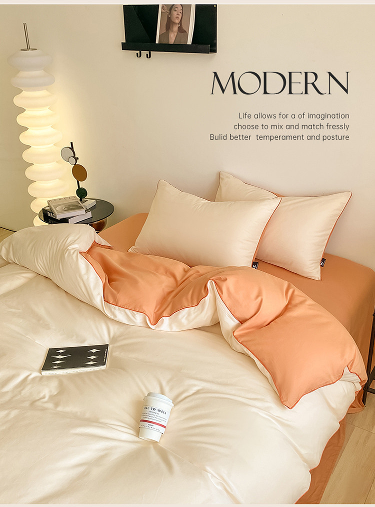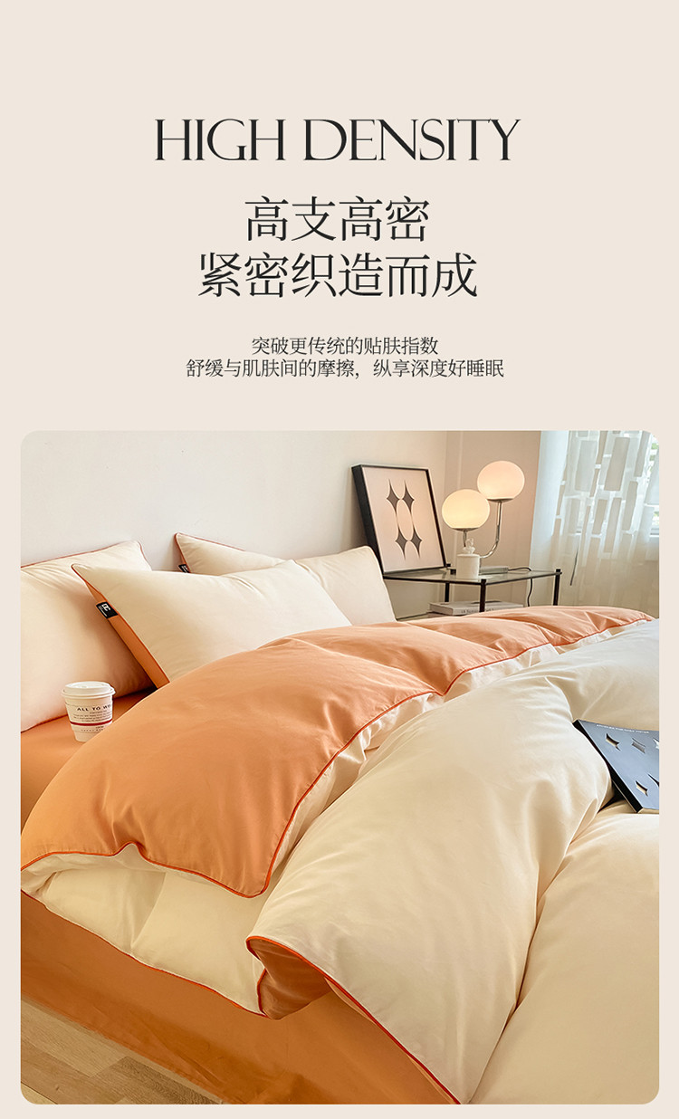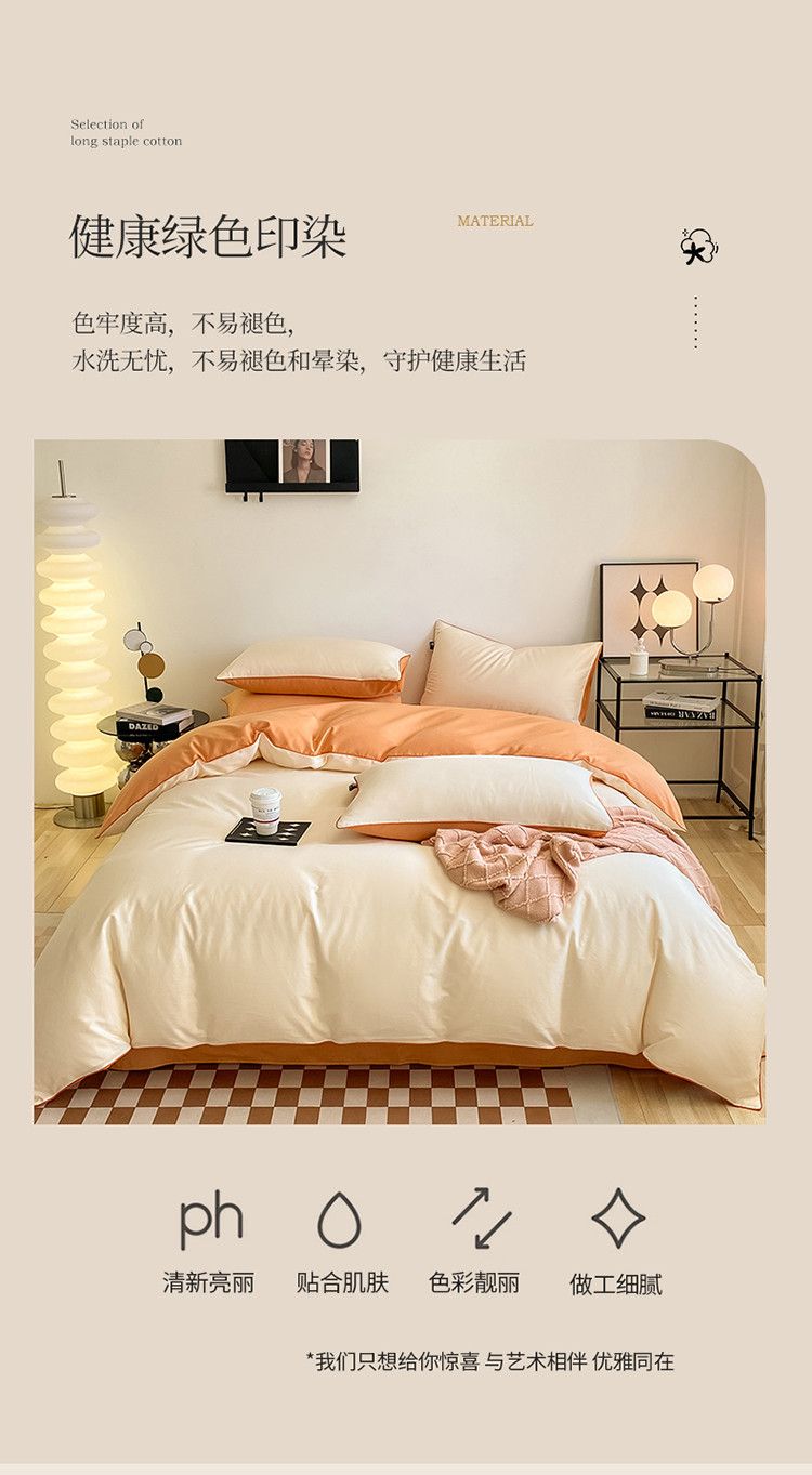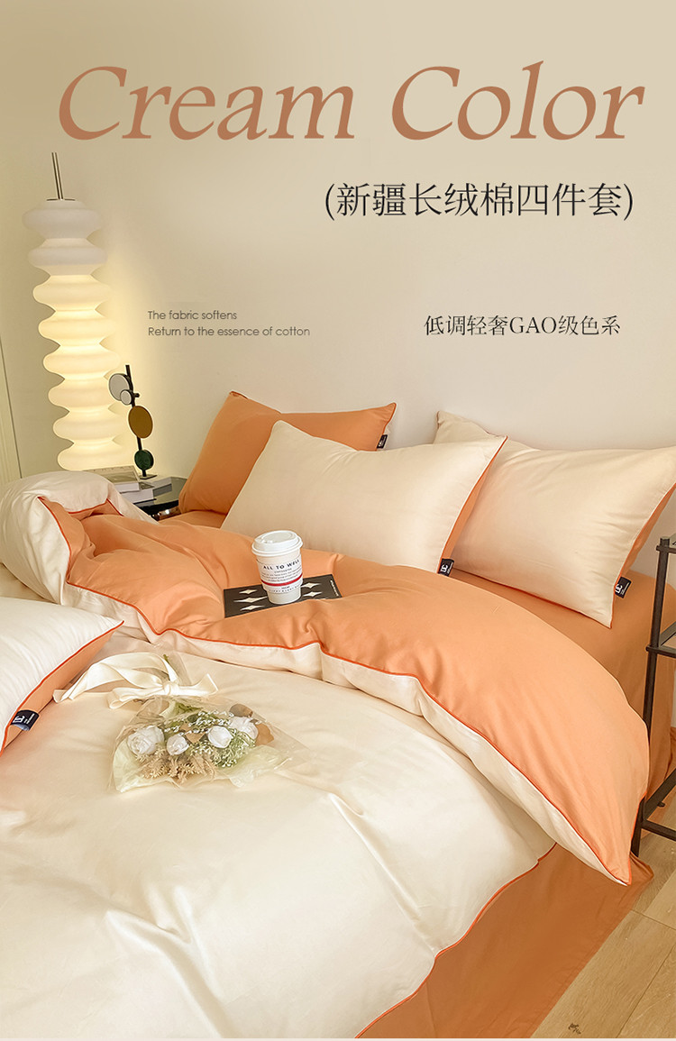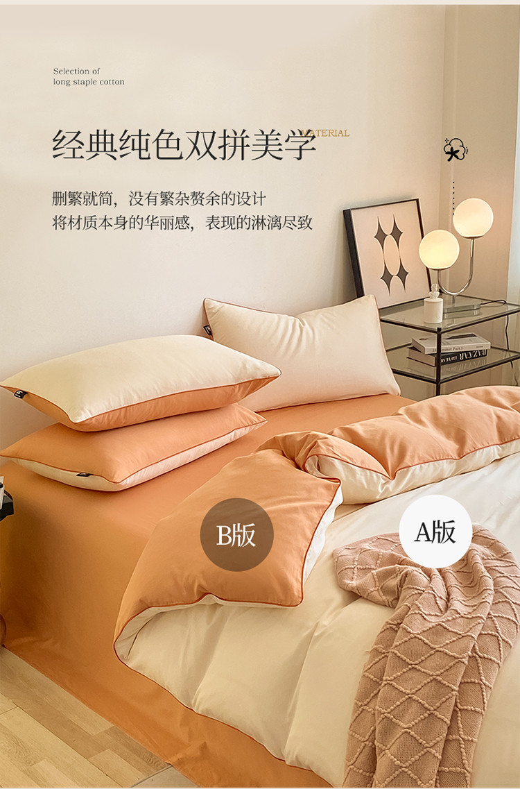 安力森/诚臻酒店用品 2023新款经典纯棉倾呐双拼AB款四件套 奶昔白-南瓜橘