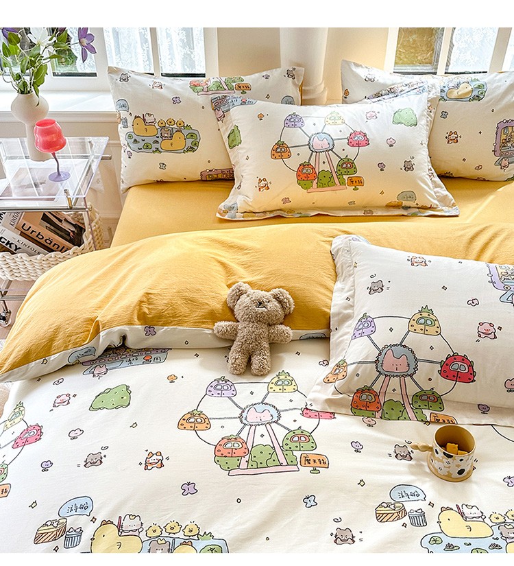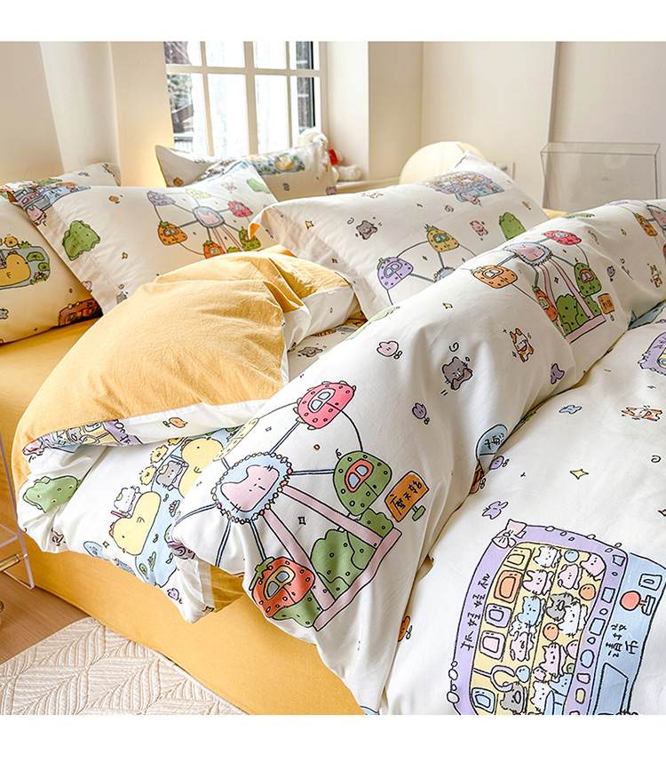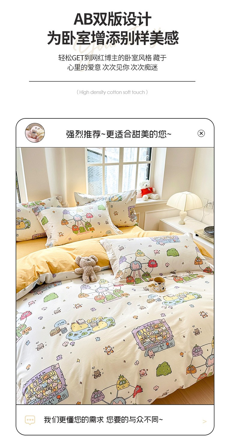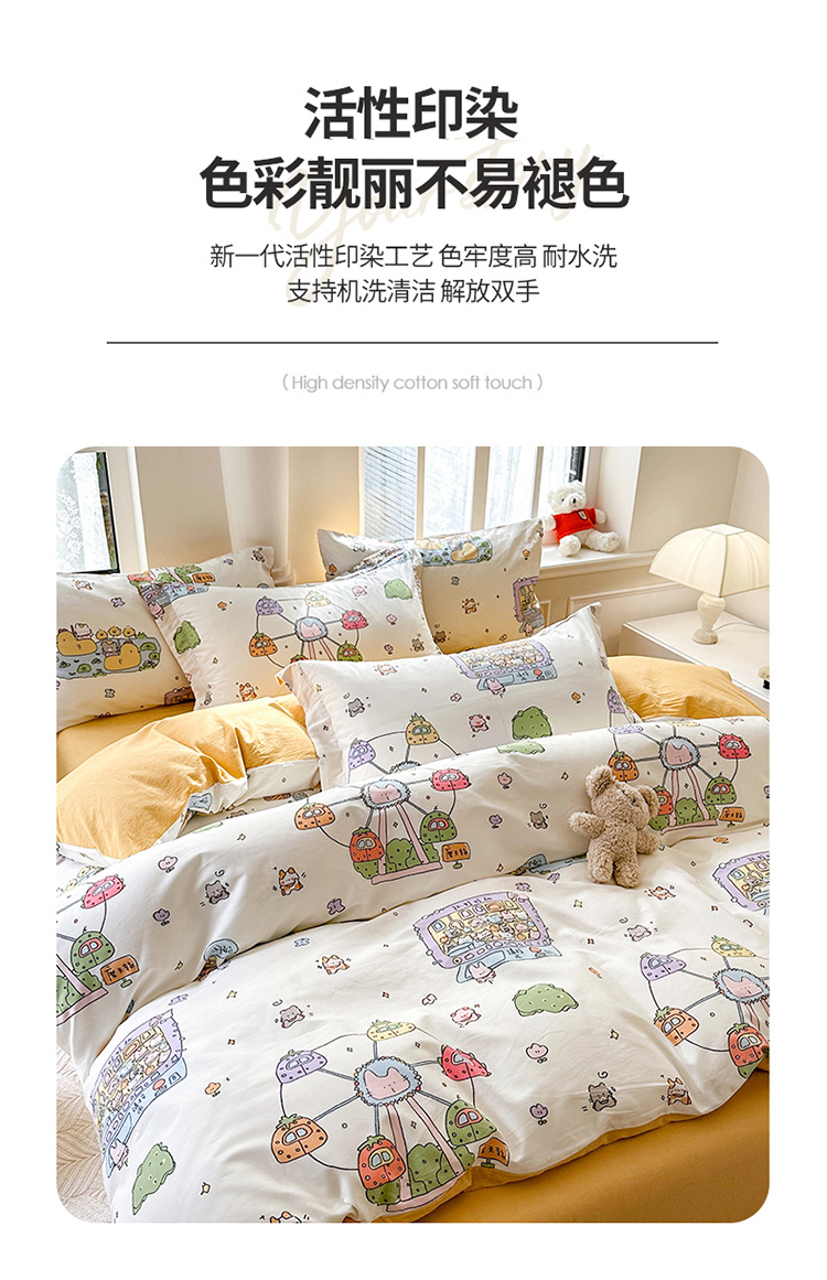 商品名称:嘉汀兰 2023新款被套AB两用全棉水洗棉印花绣花四件套 欢乐谷