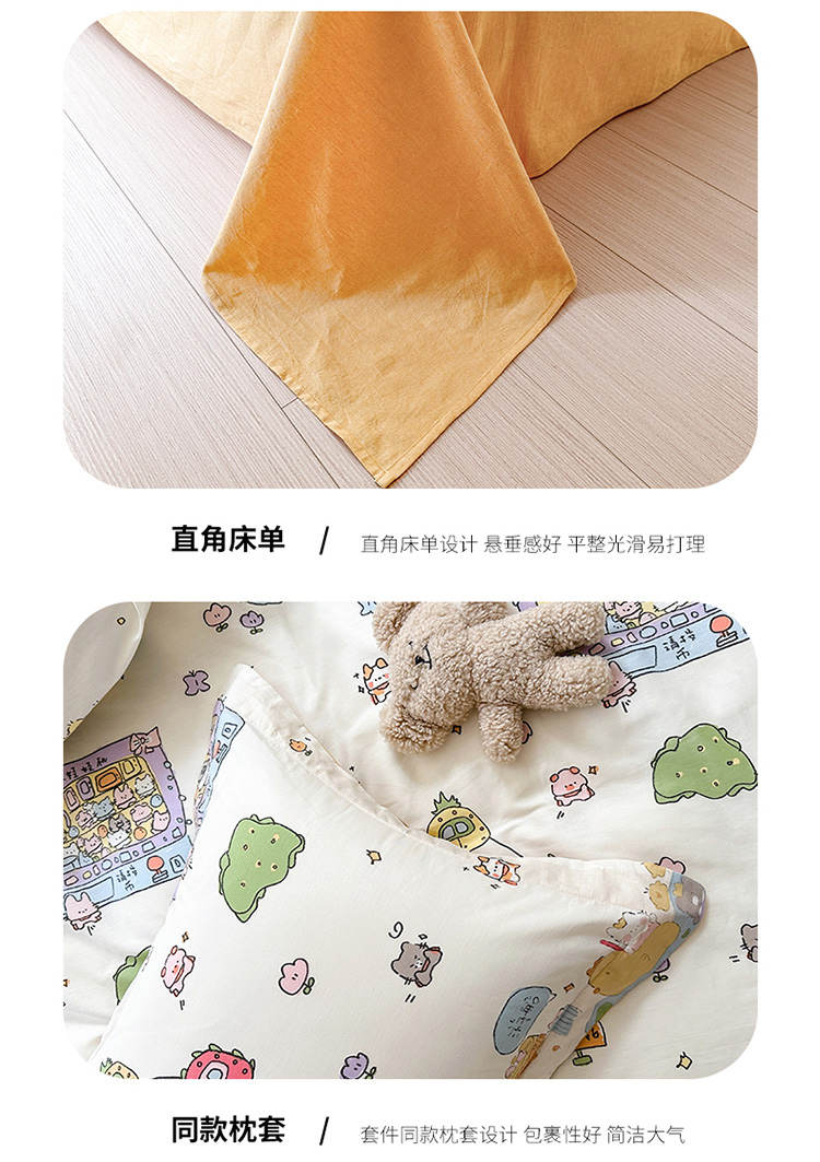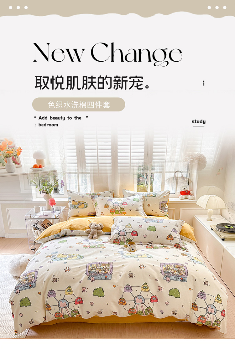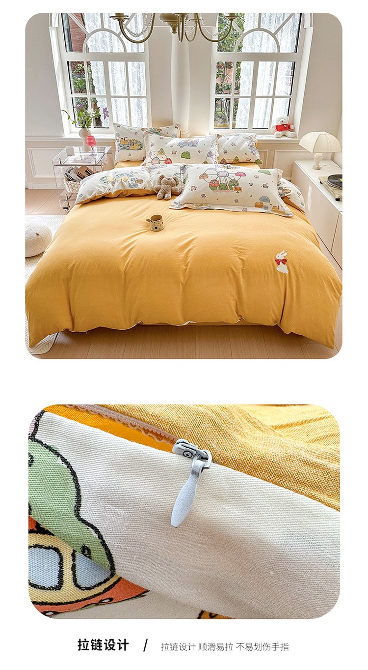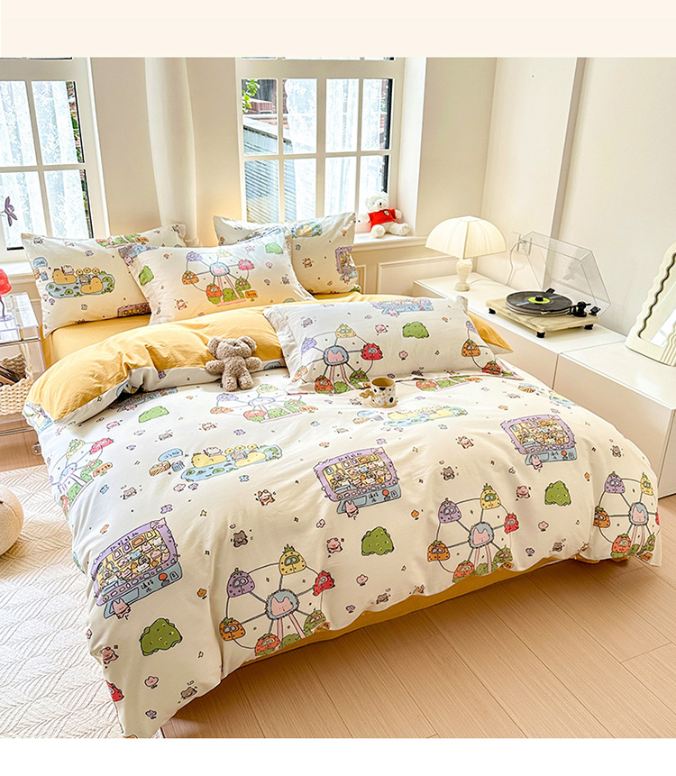 商品名称:嘉汀兰 2023新款被套AB两用全棉水洗棉印花绣花四件套 欢乐谷