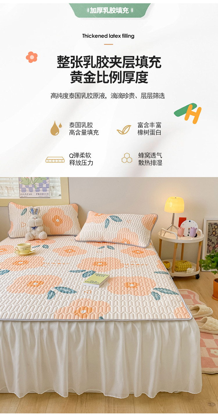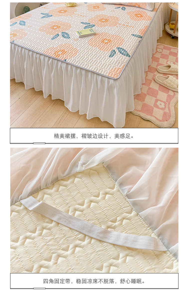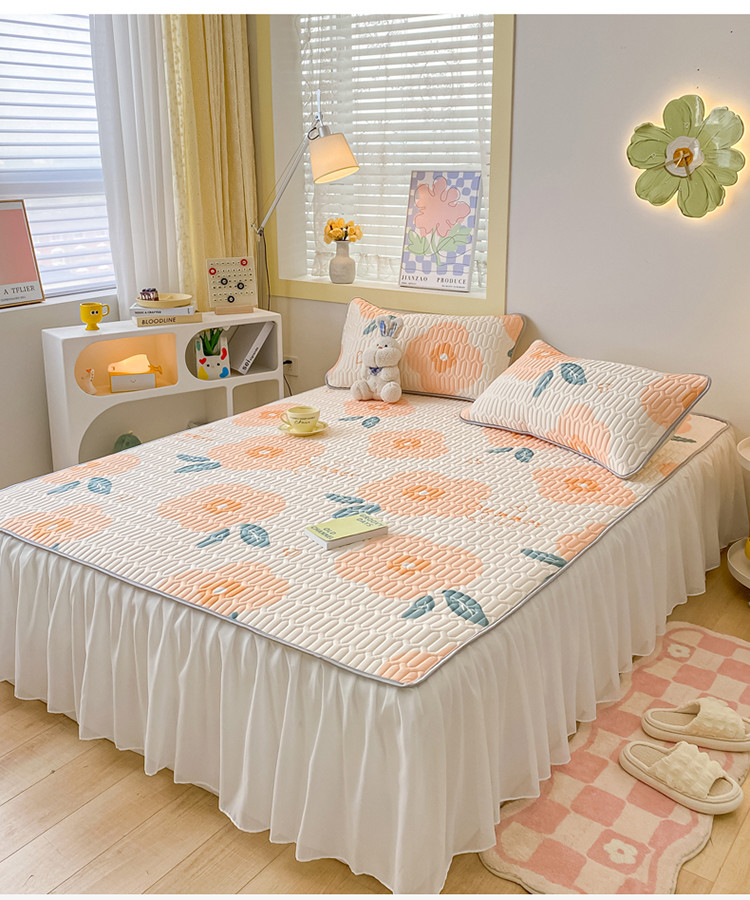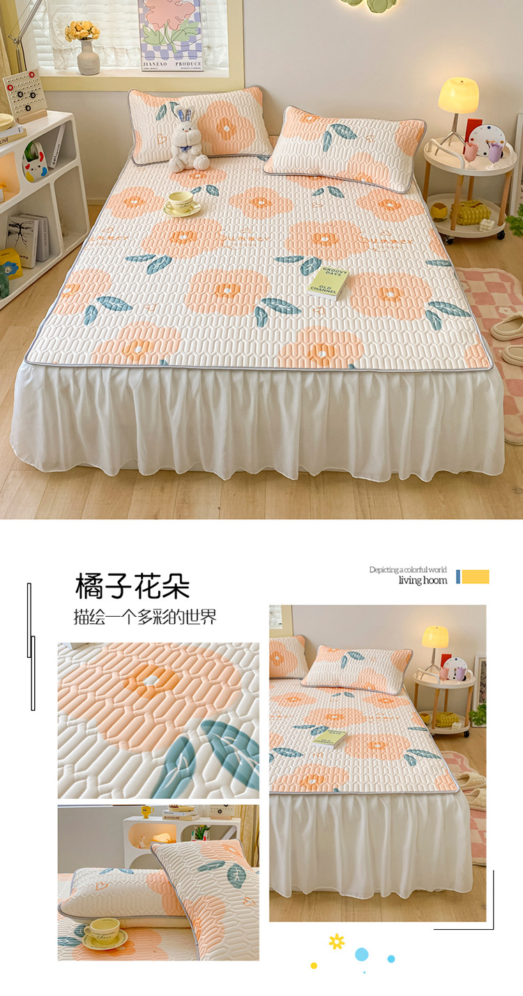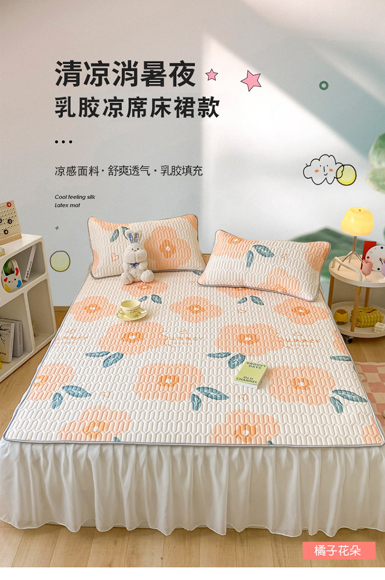 商品名称:金爱家 2023新款凉感丝乳胶软凉席床裙款三件套 橘子花朵