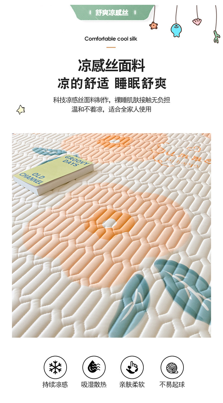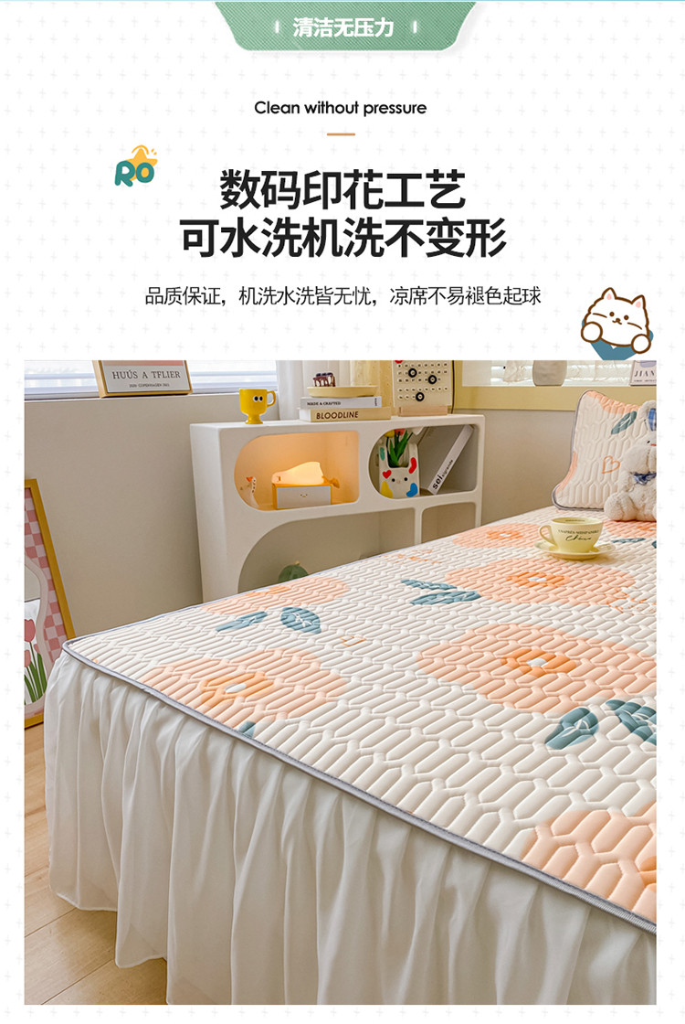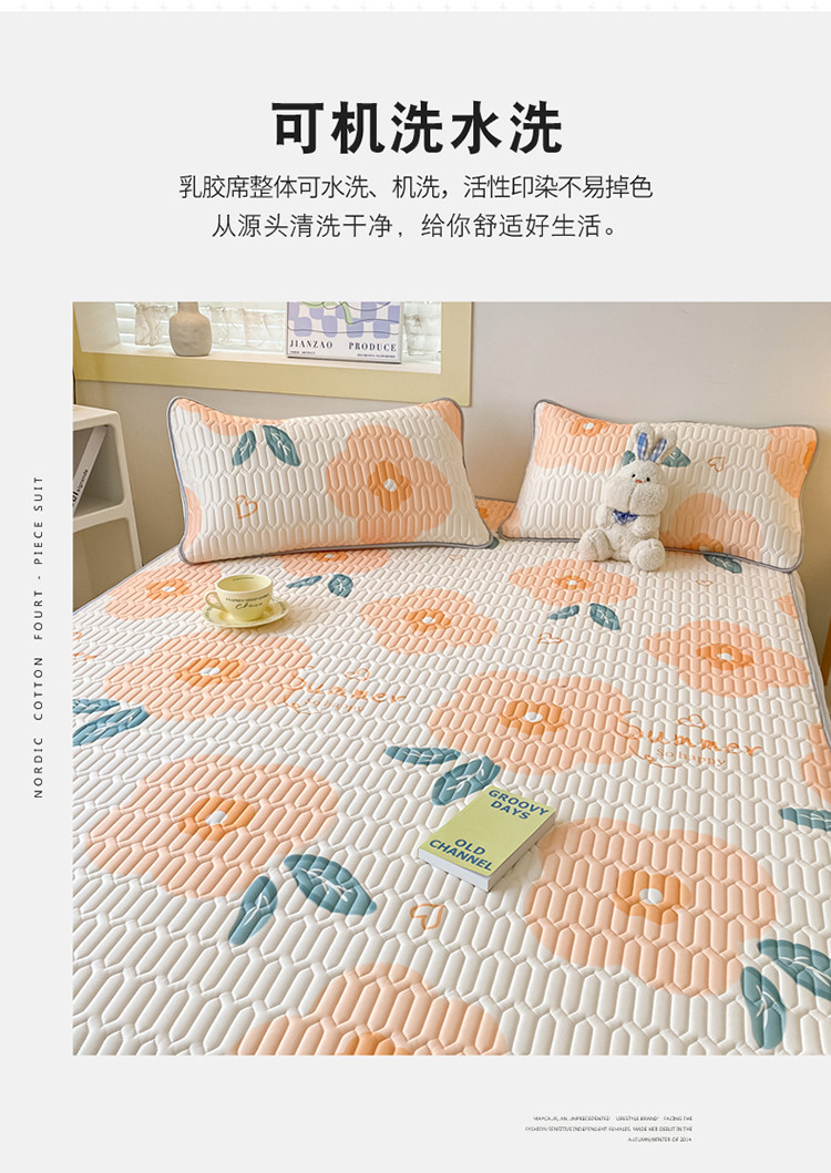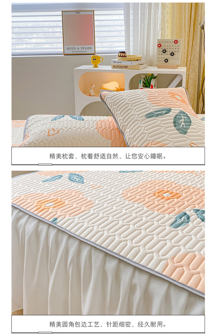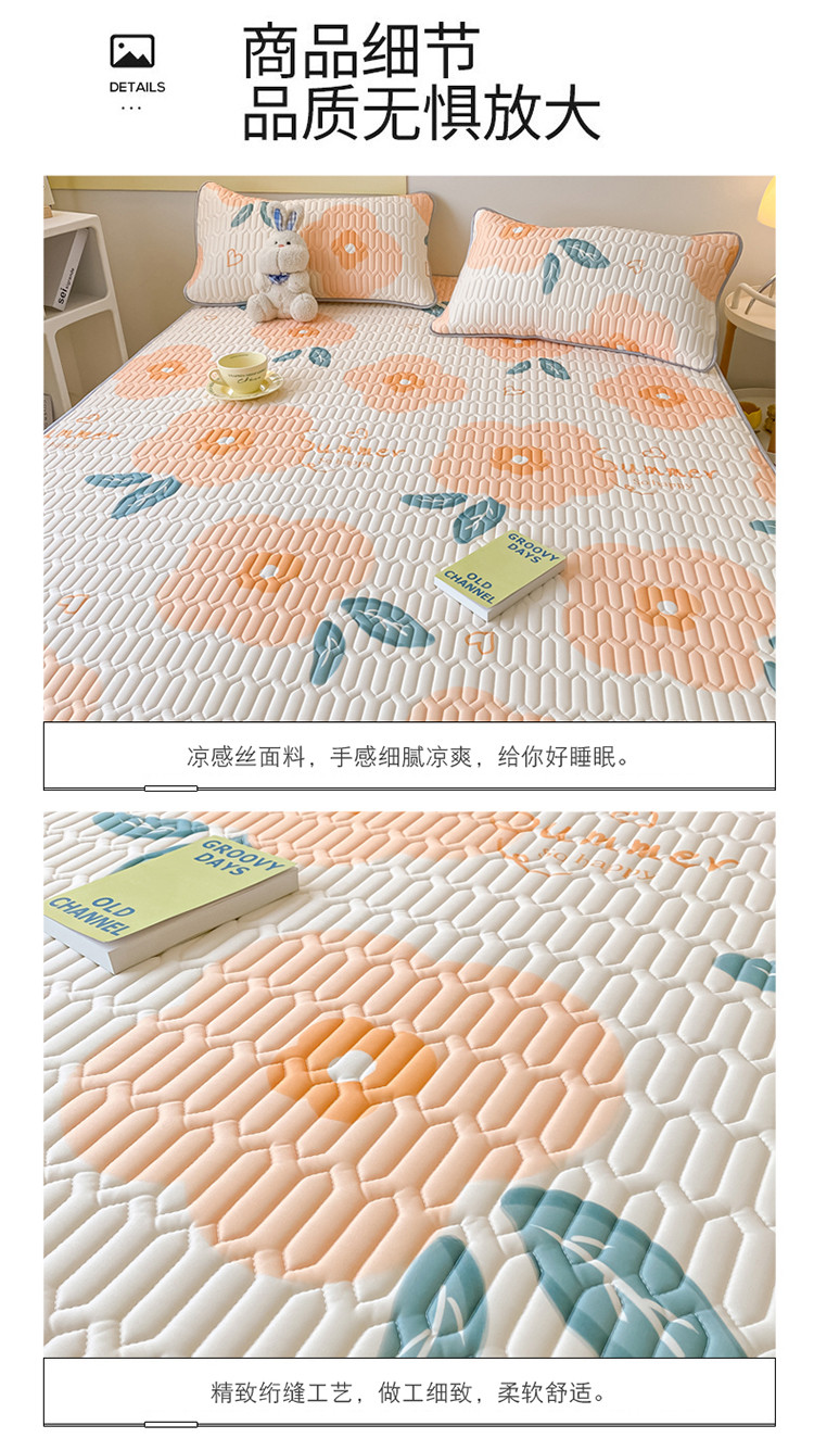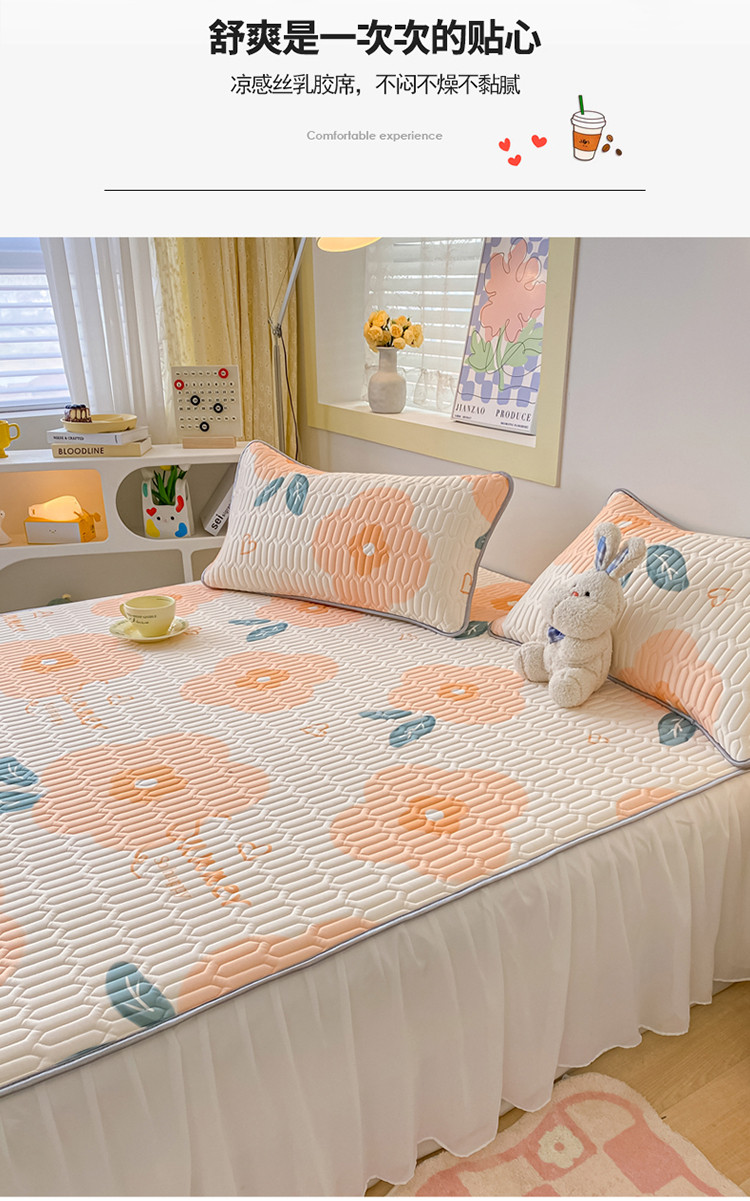 商品名称:金爱家 2023新款凉感丝乳胶软凉席床裙款三件套 橘子花朵