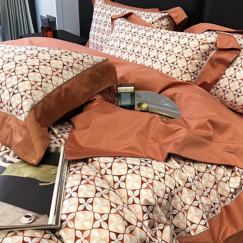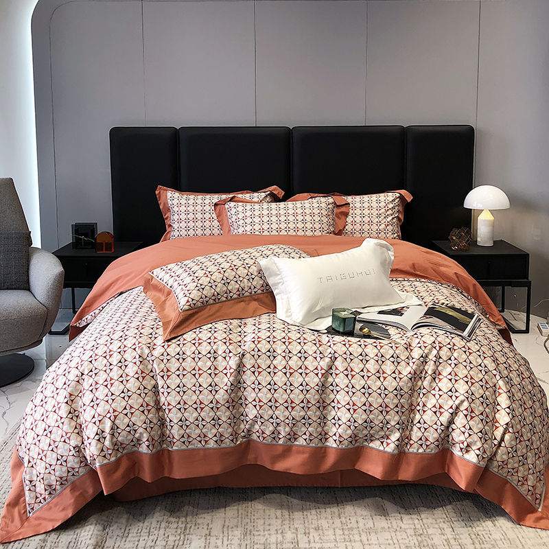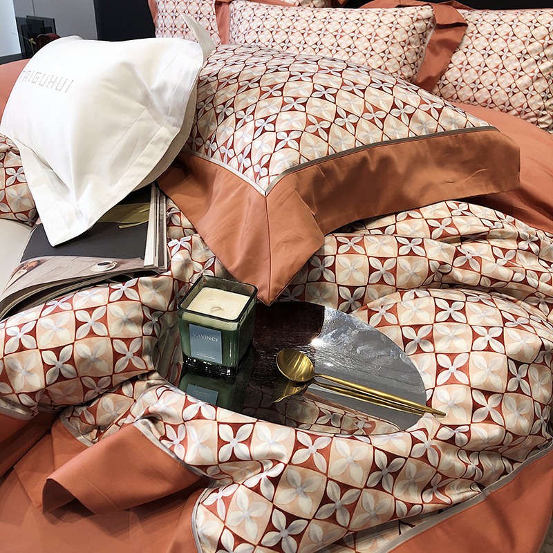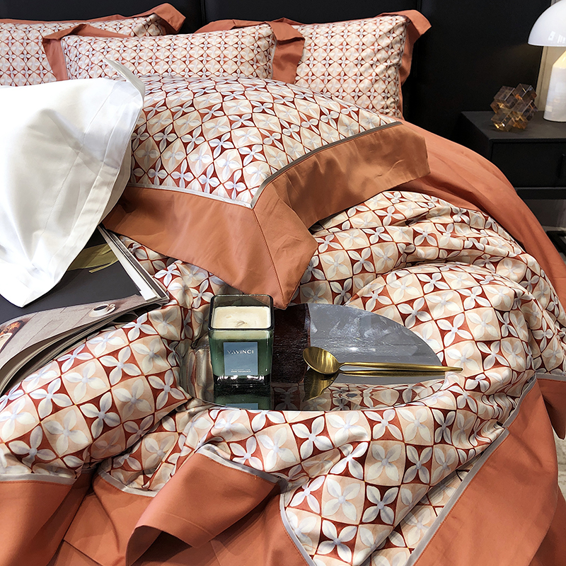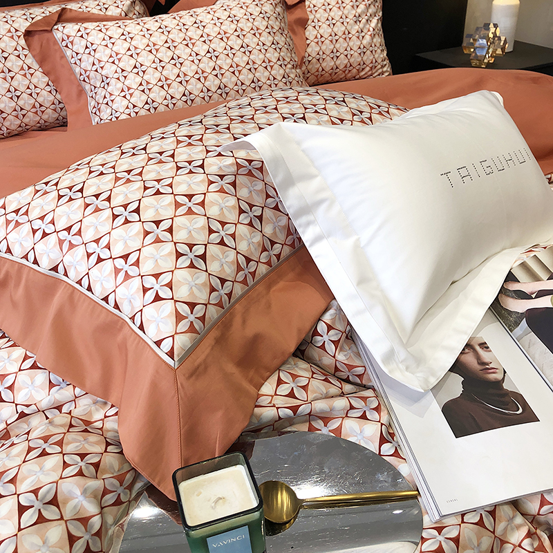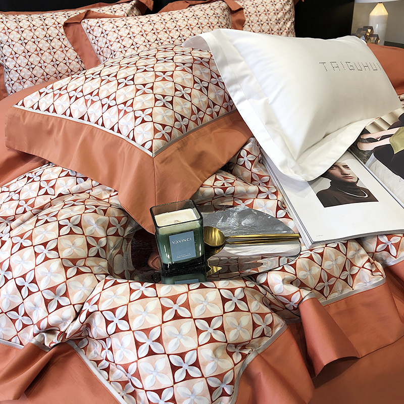 商品名称:太古汇 2023新款长绒棉全棉专版数码印花宽边四件套 维多亚-橙色