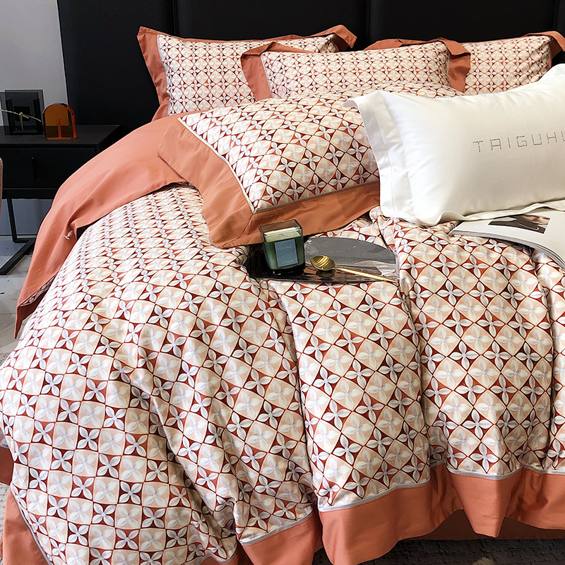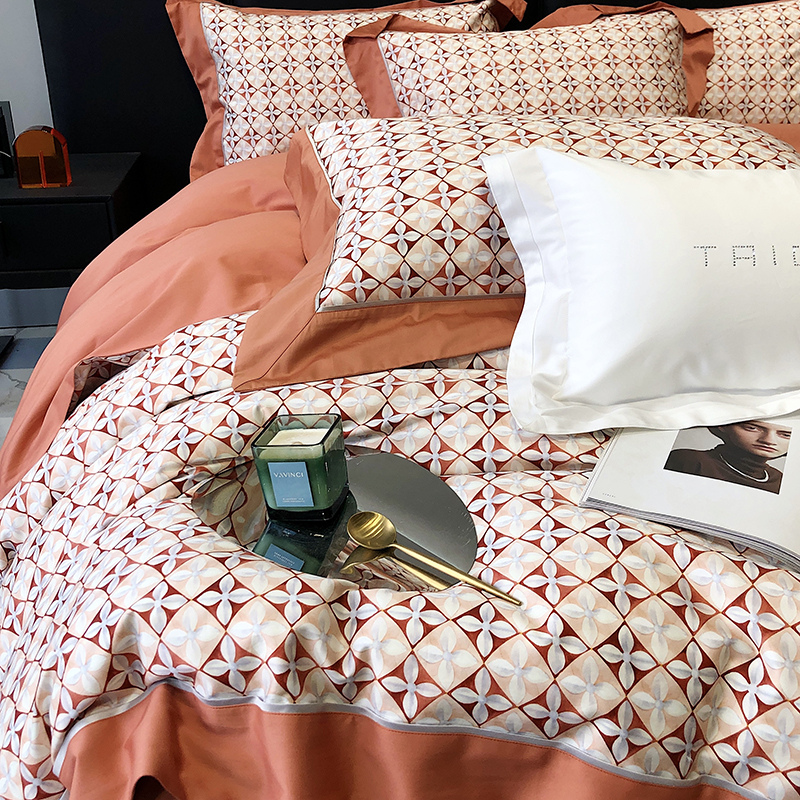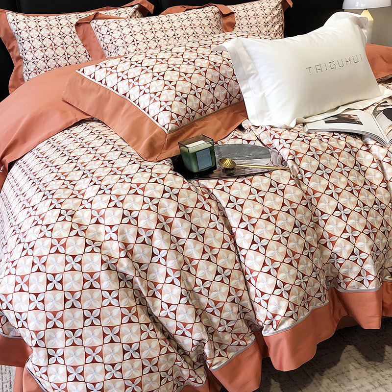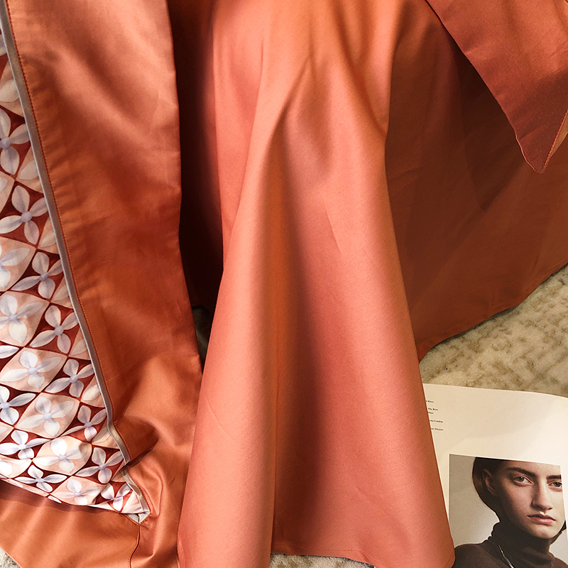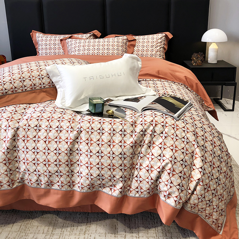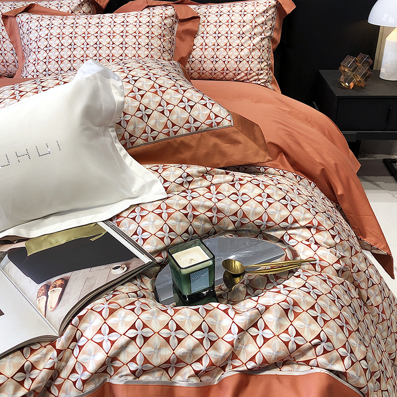 商品名称:太古汇 2023新款长绒棉全棉专版数码印花宽边四件套 维多亚-橙色