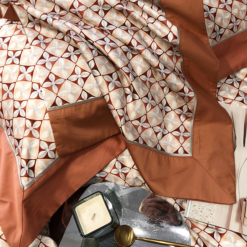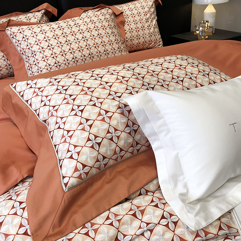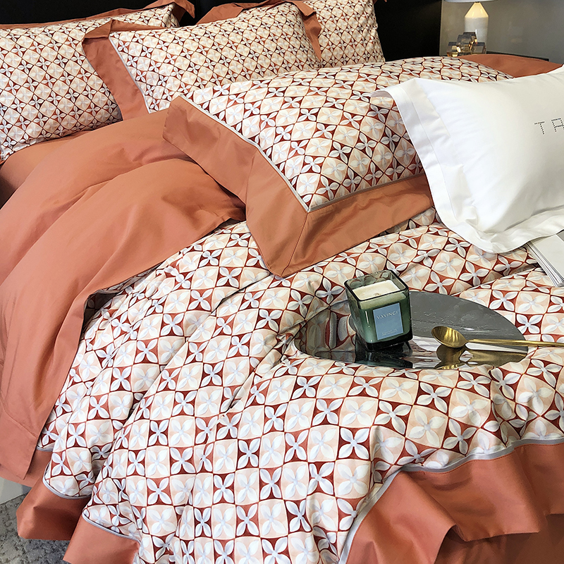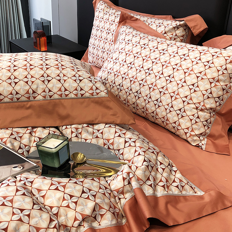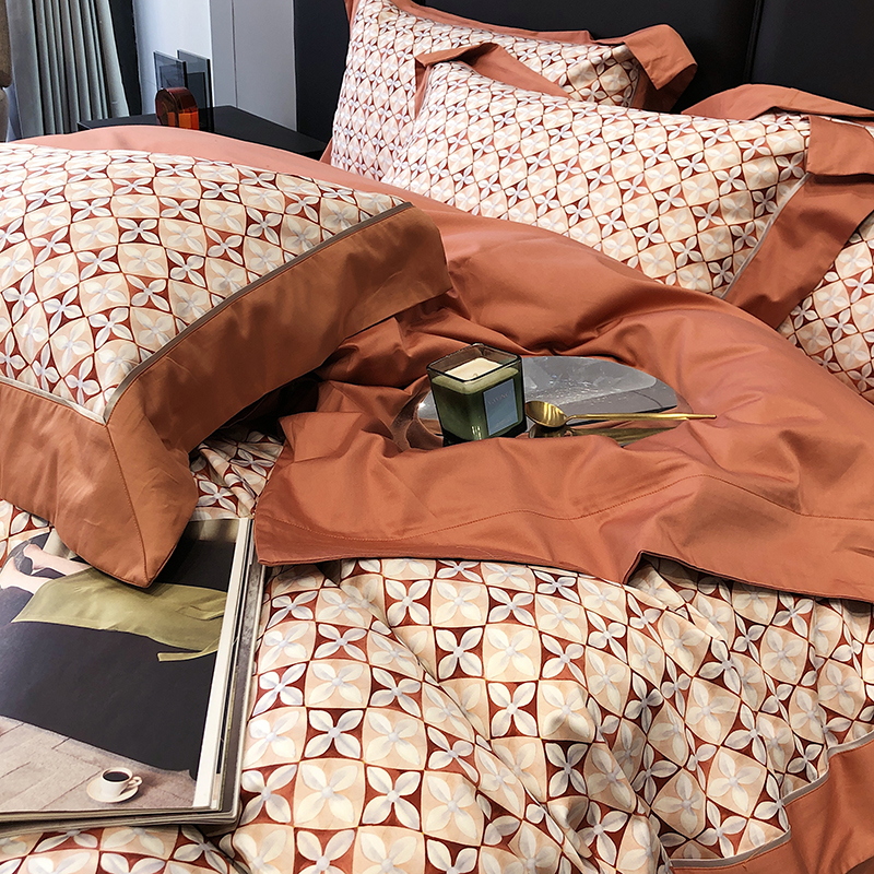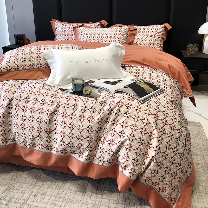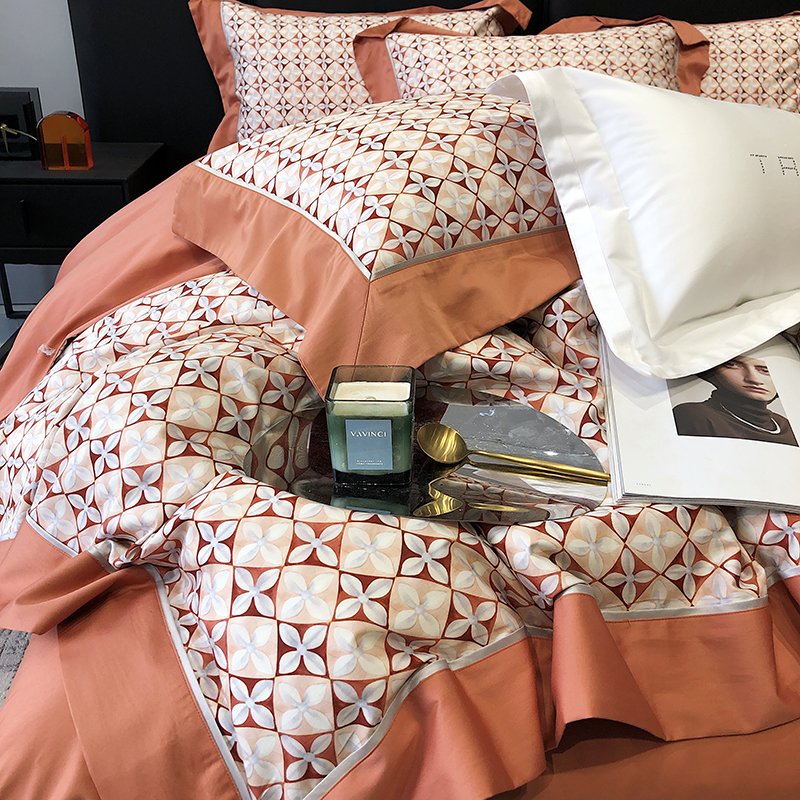 太古汇 2023新款长绒棉全棉专版数码印花宽边四件套 维多亚-橙色