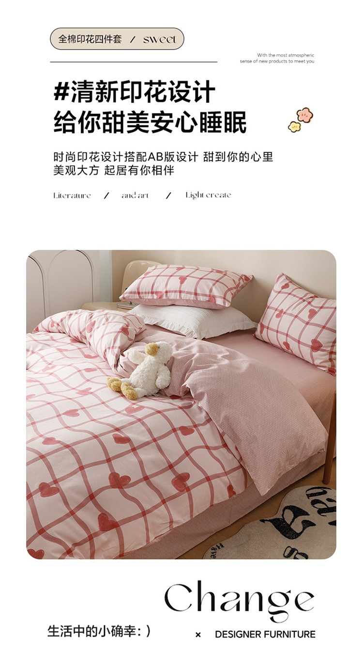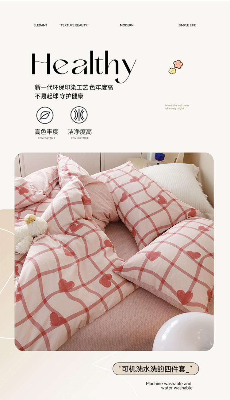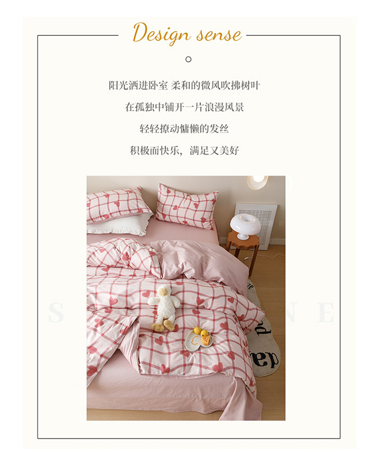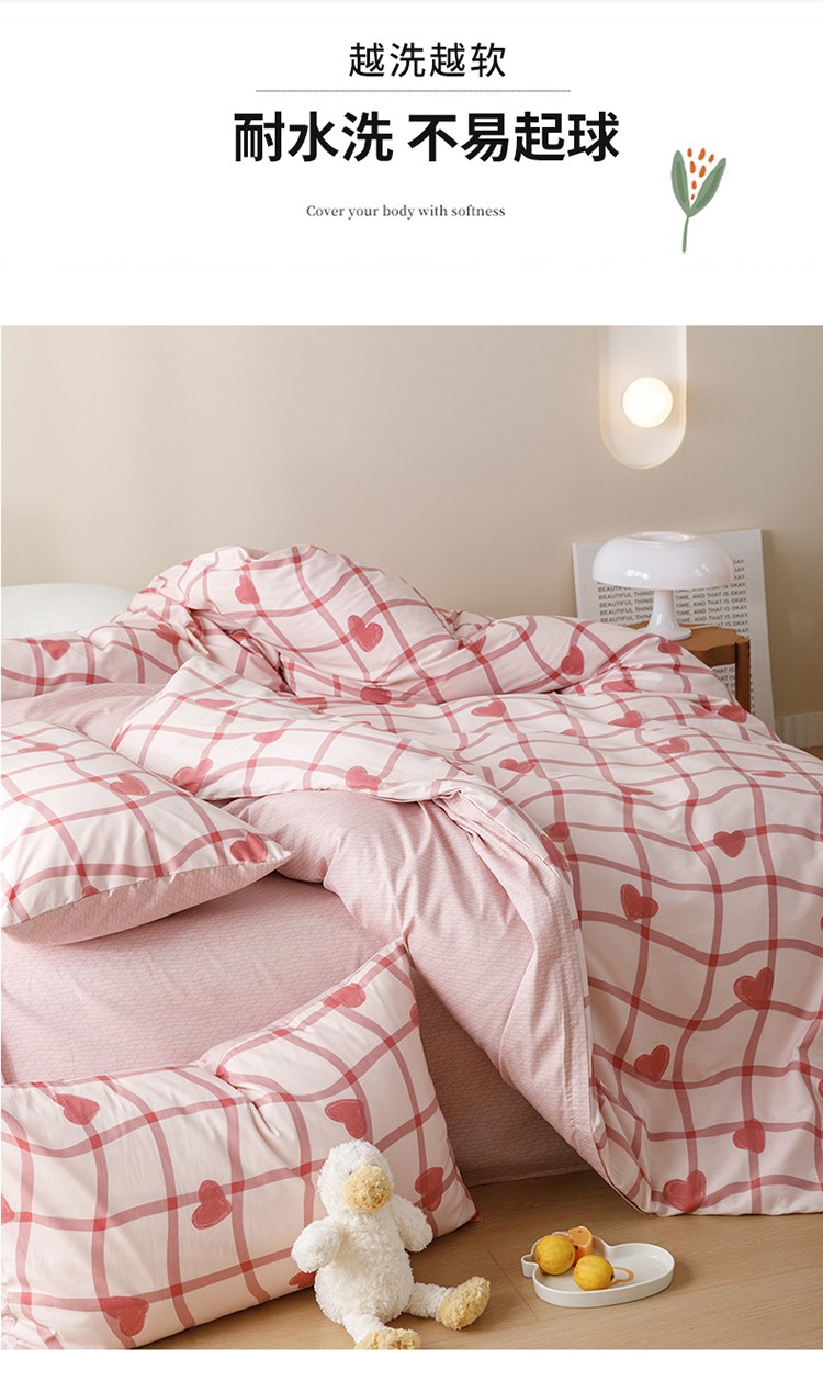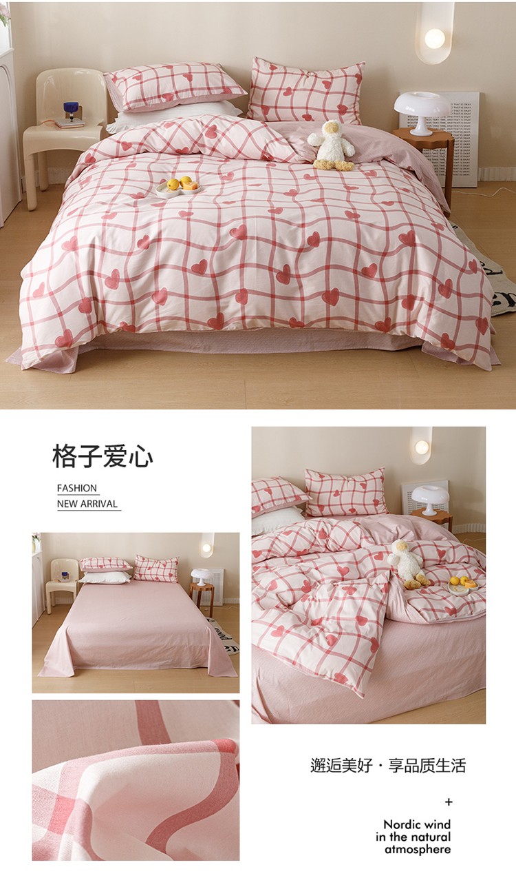 商品名称:2023新款40支纱全棉13070锁边工艺款四件套系列 格子爱心