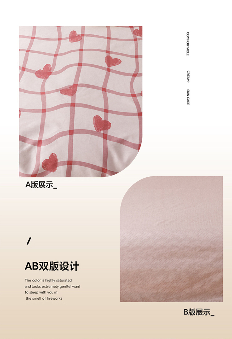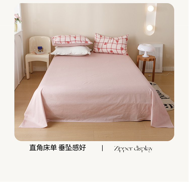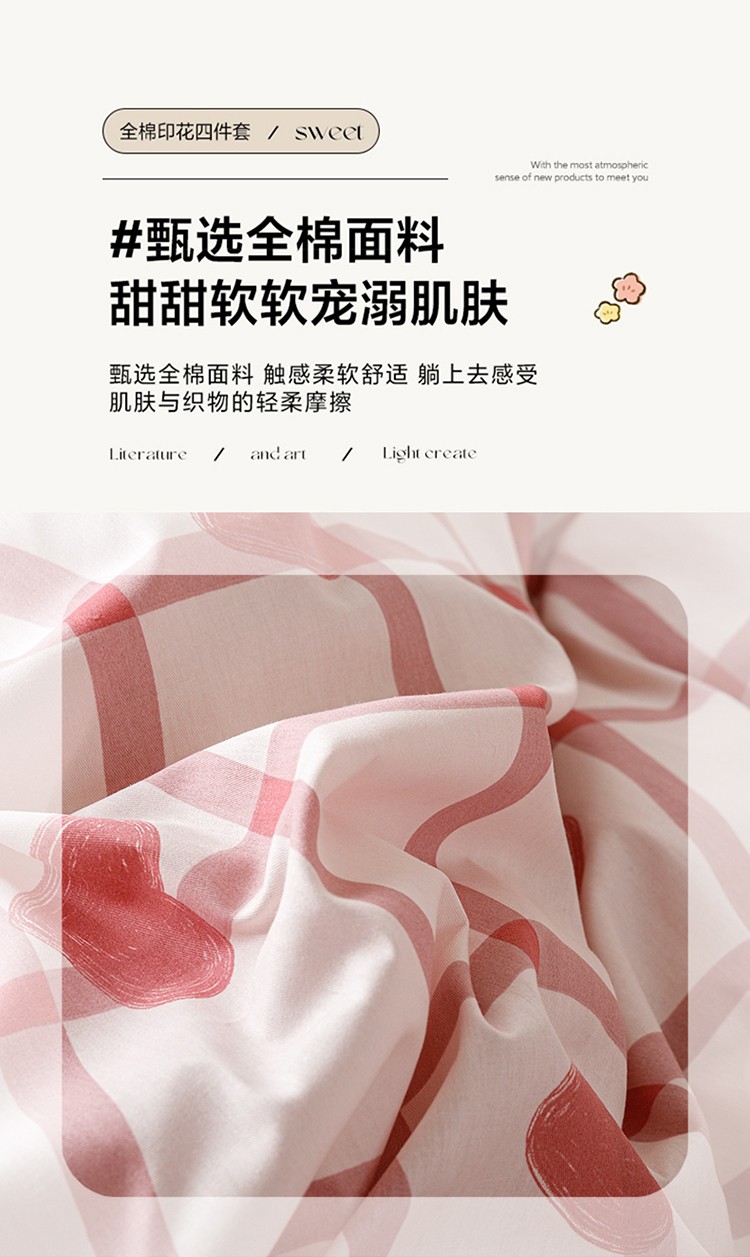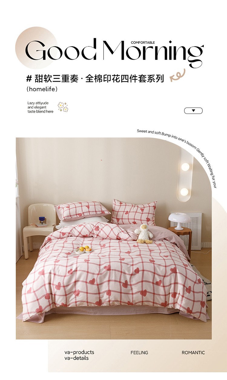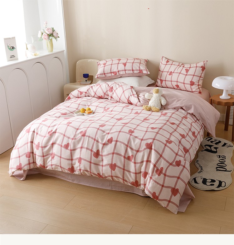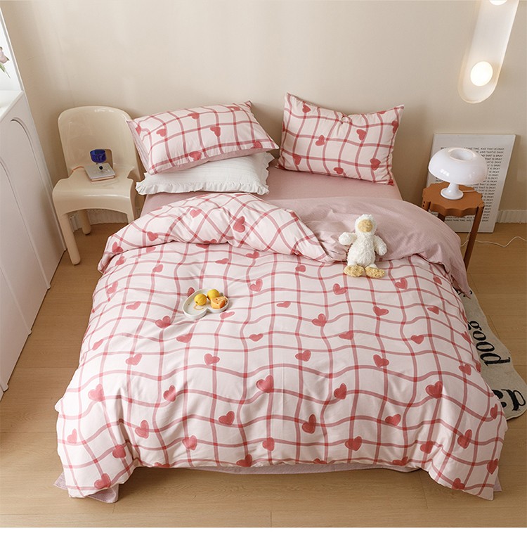 商品名称:2023新款40支纱全棉13070锁边工艺款四件套系列 格子爱心