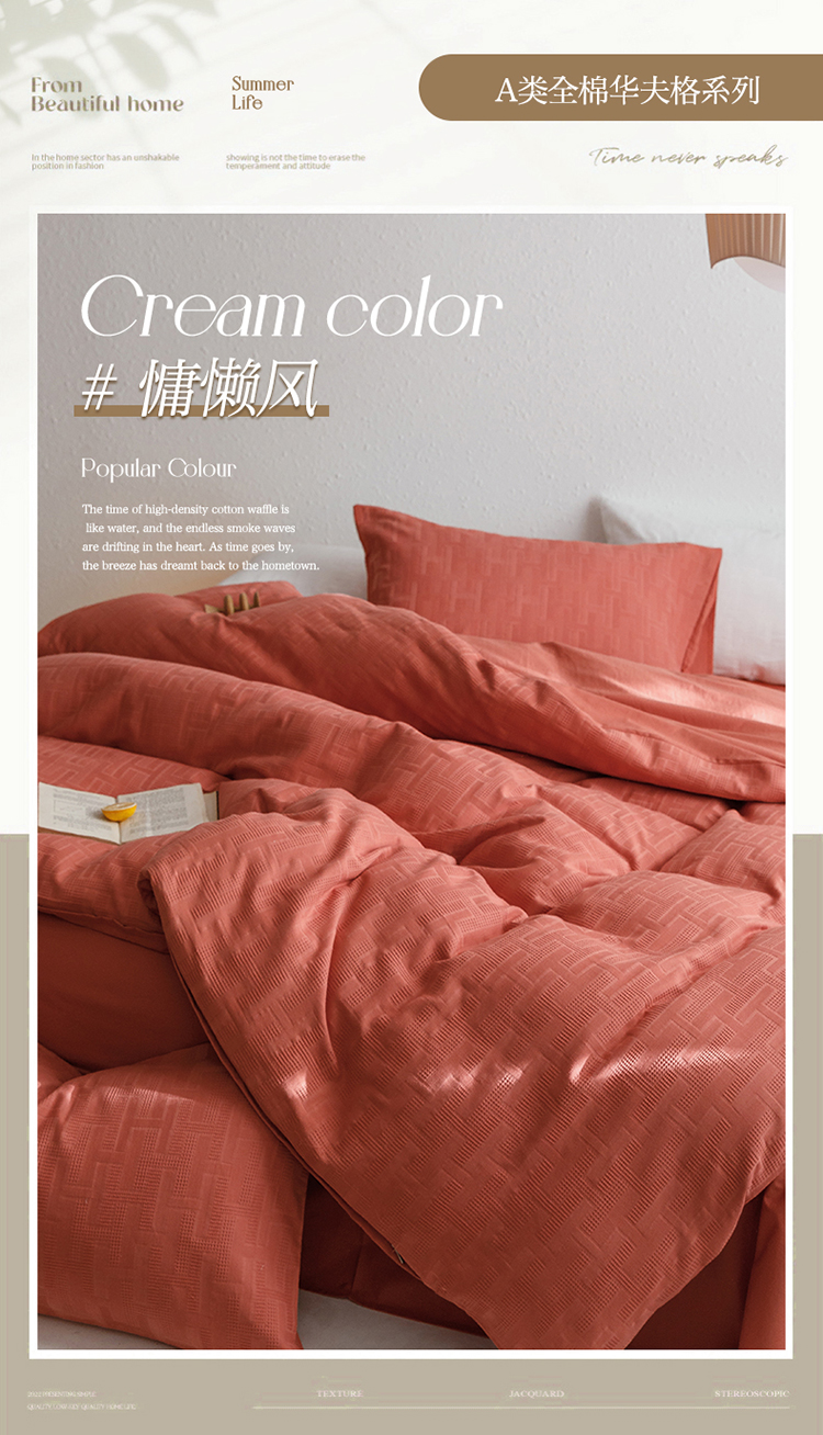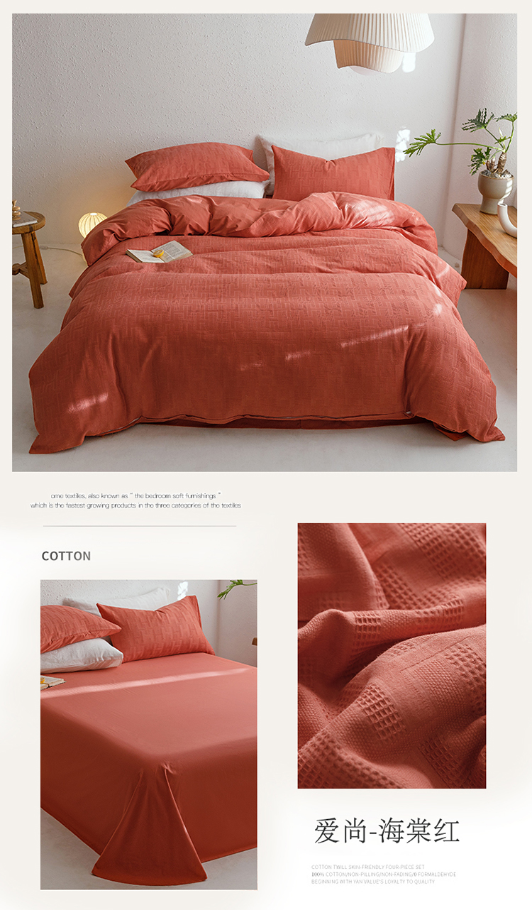瑞米家居2023新款A类华夫格四件套-爱尚-迷之恋 爱尚-海棠红