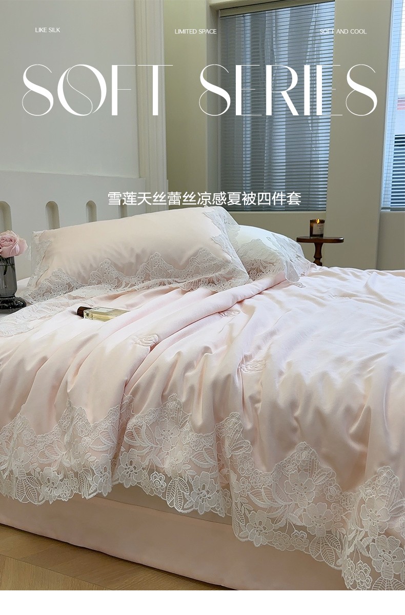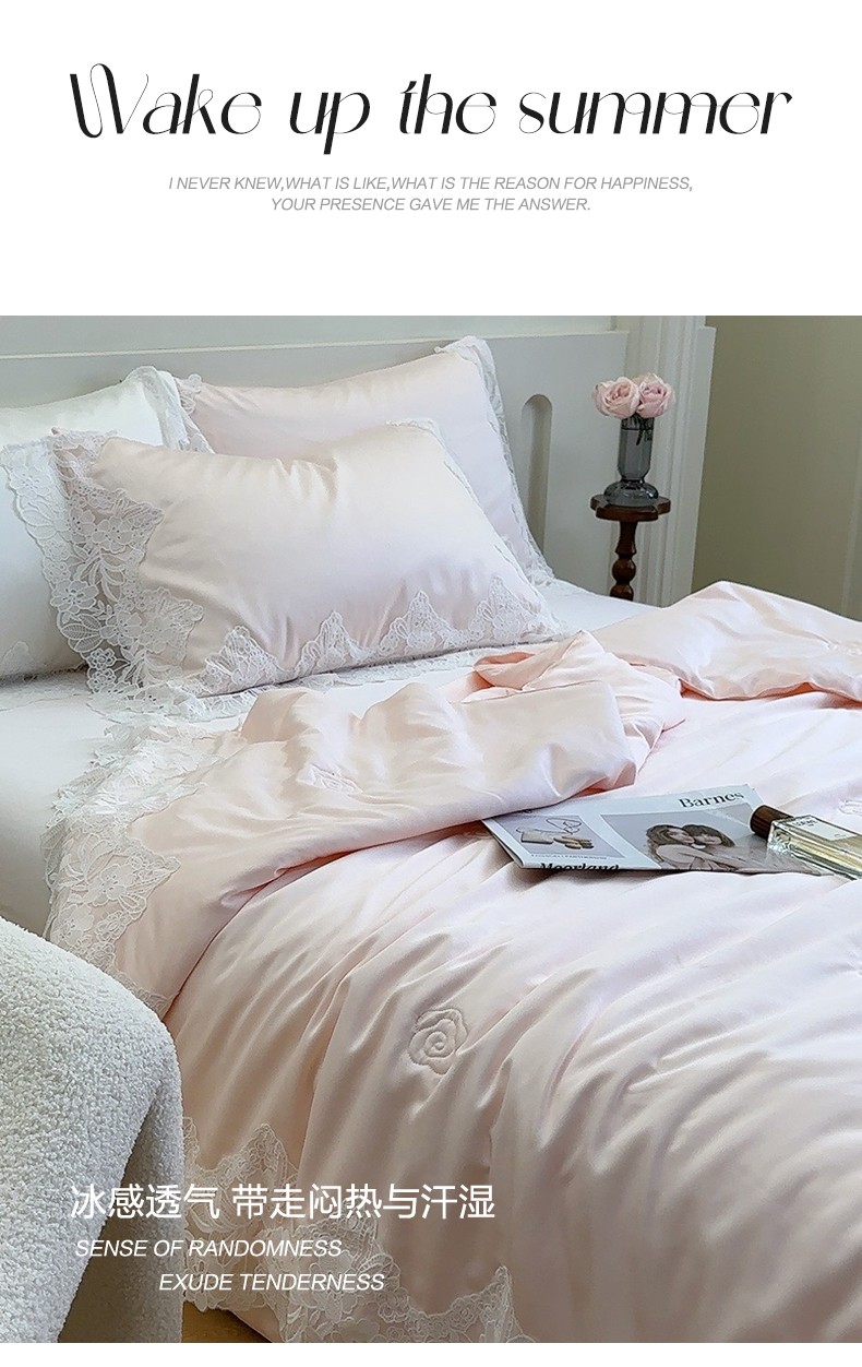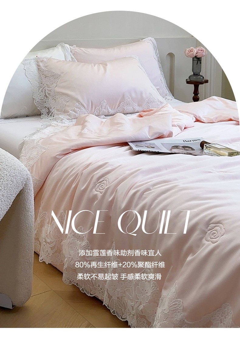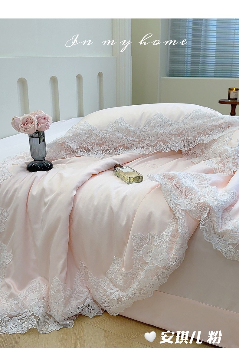 商品名称:安莱生活 2023新款 雪莲天丝蕾丝夏被 安琪儿 粉