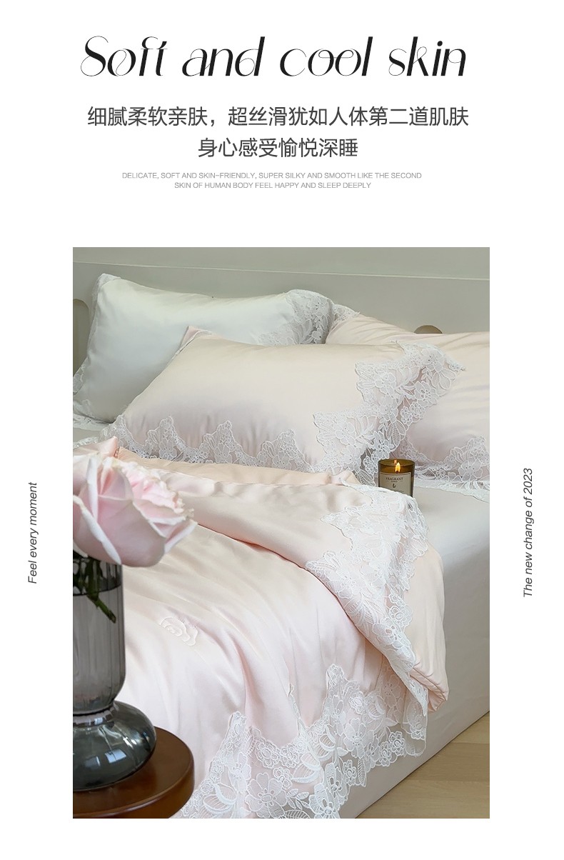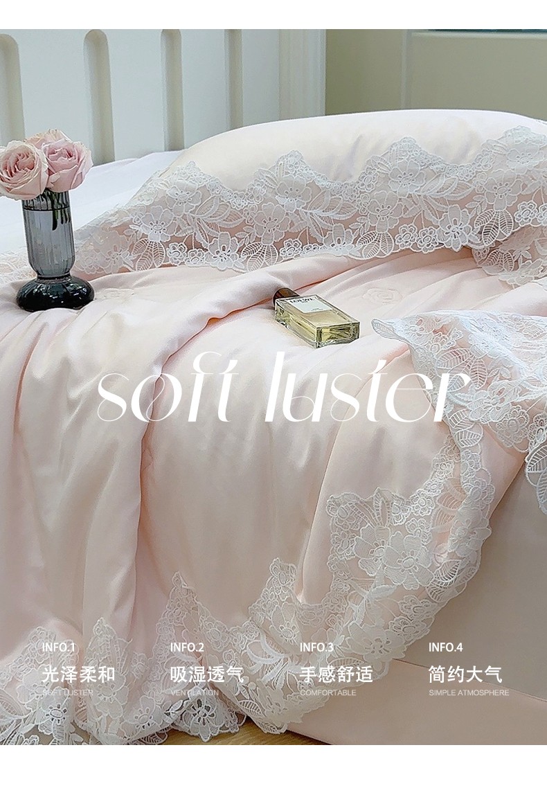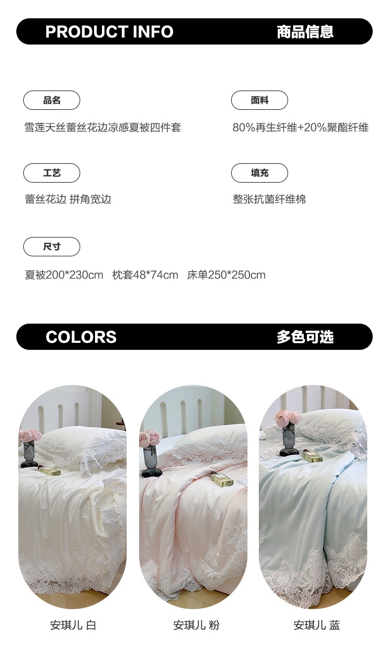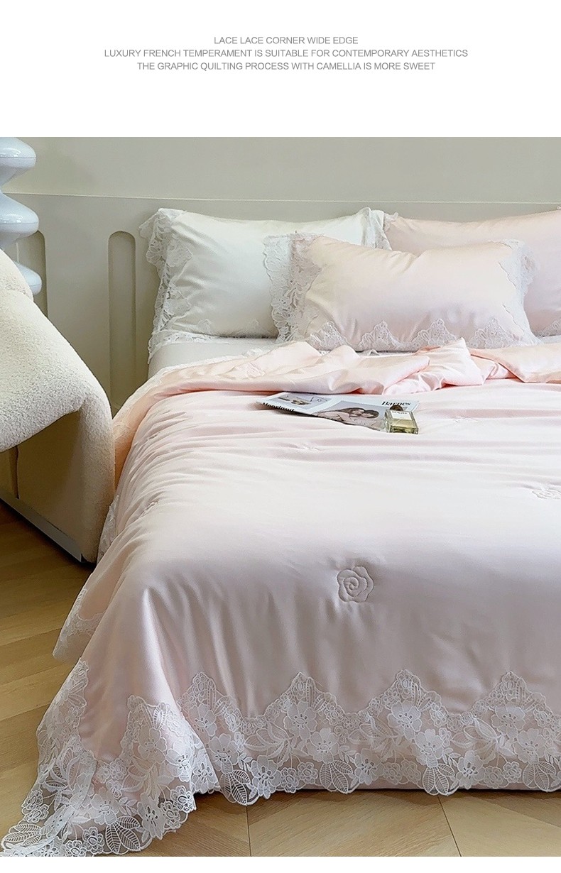 商品名称:安莱生活 2023新款 雪莲天丝蕾丝夏被 安琪儿 粉