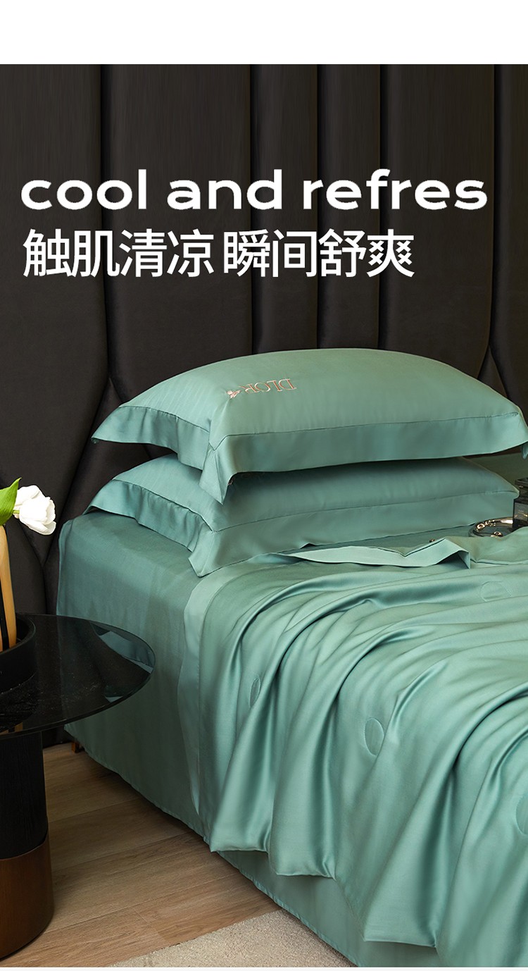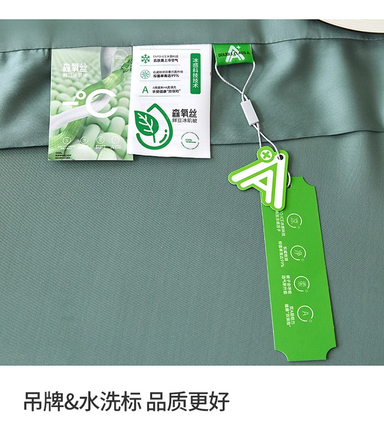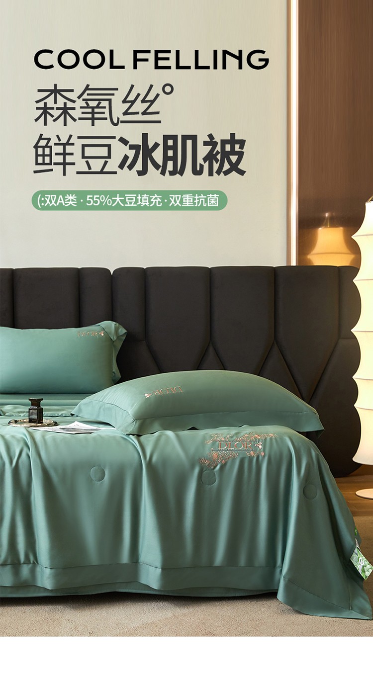 • 91家纺网 家纺一手货源 找家纺 新款森氧丝A类莱赛尔55%大豆抗菌夏被(迹风系列风格1) 迹风翡翠绿