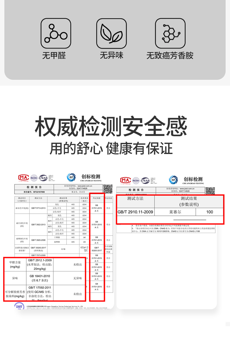 • 填充纤维种类: 大豆蛋白改性聚酯纤维