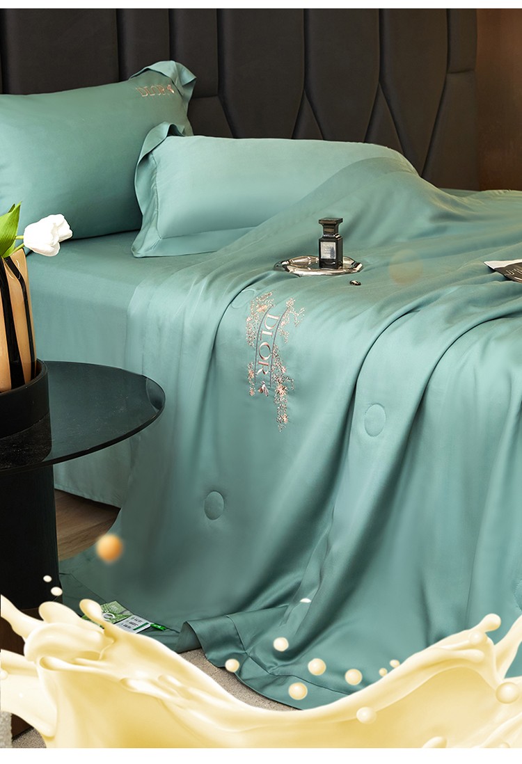 新款森氧丝A类莱赛尔55%大豆抗菌夏被(迹风系列风格1) 迹风翡翠绿