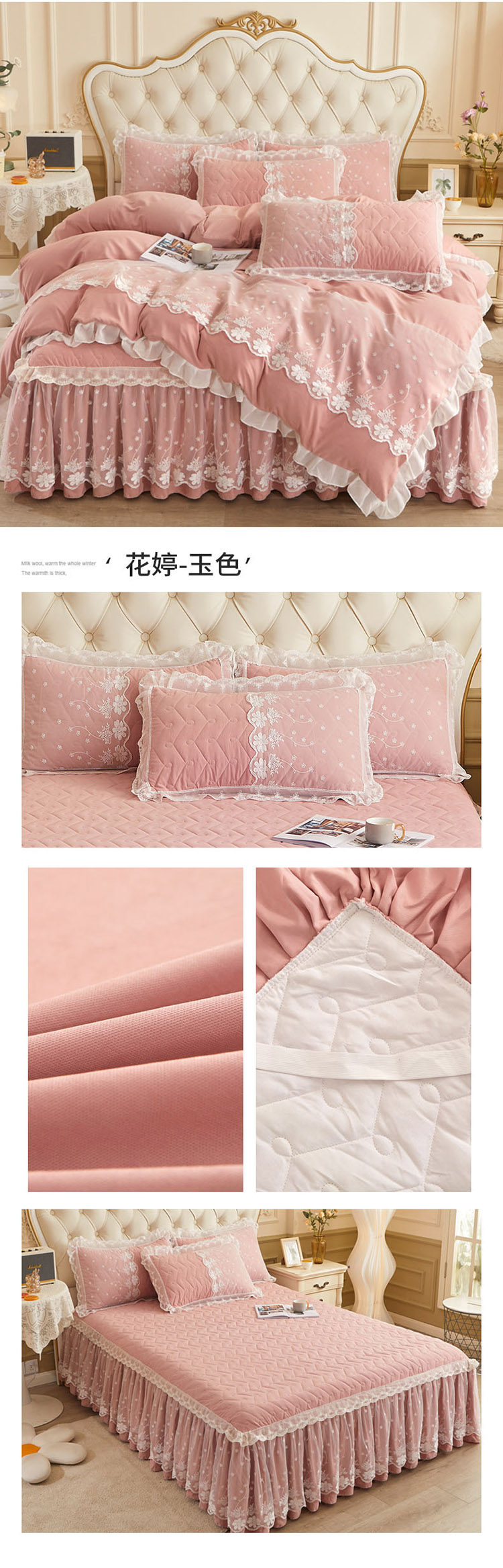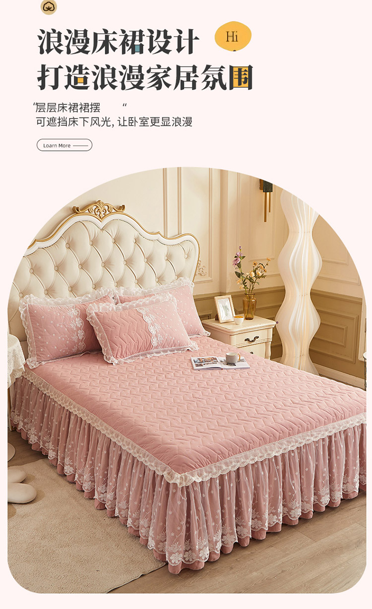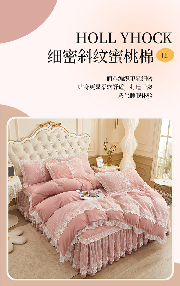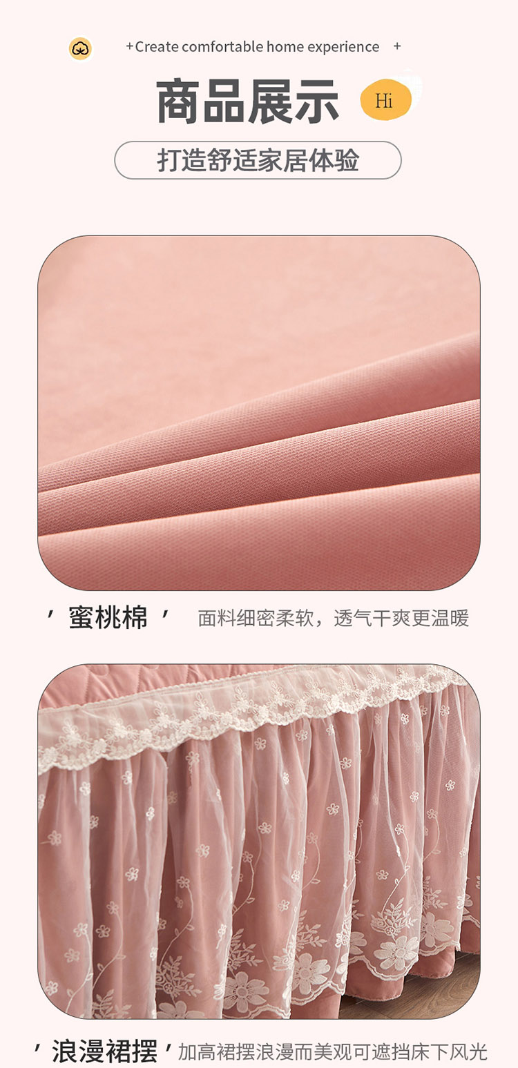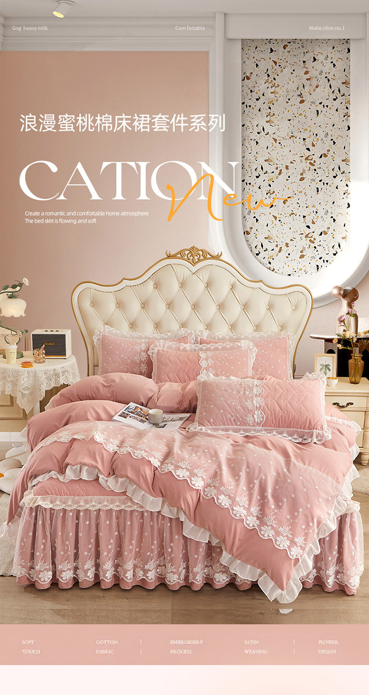 当前位置: 91家纺网 > 商品网购 > 床品套件 > 四件套 > 全棉普通四件套 > 恋尚 2023新款蜜桃棉夹棉床裙款四件套 花婷-玉色