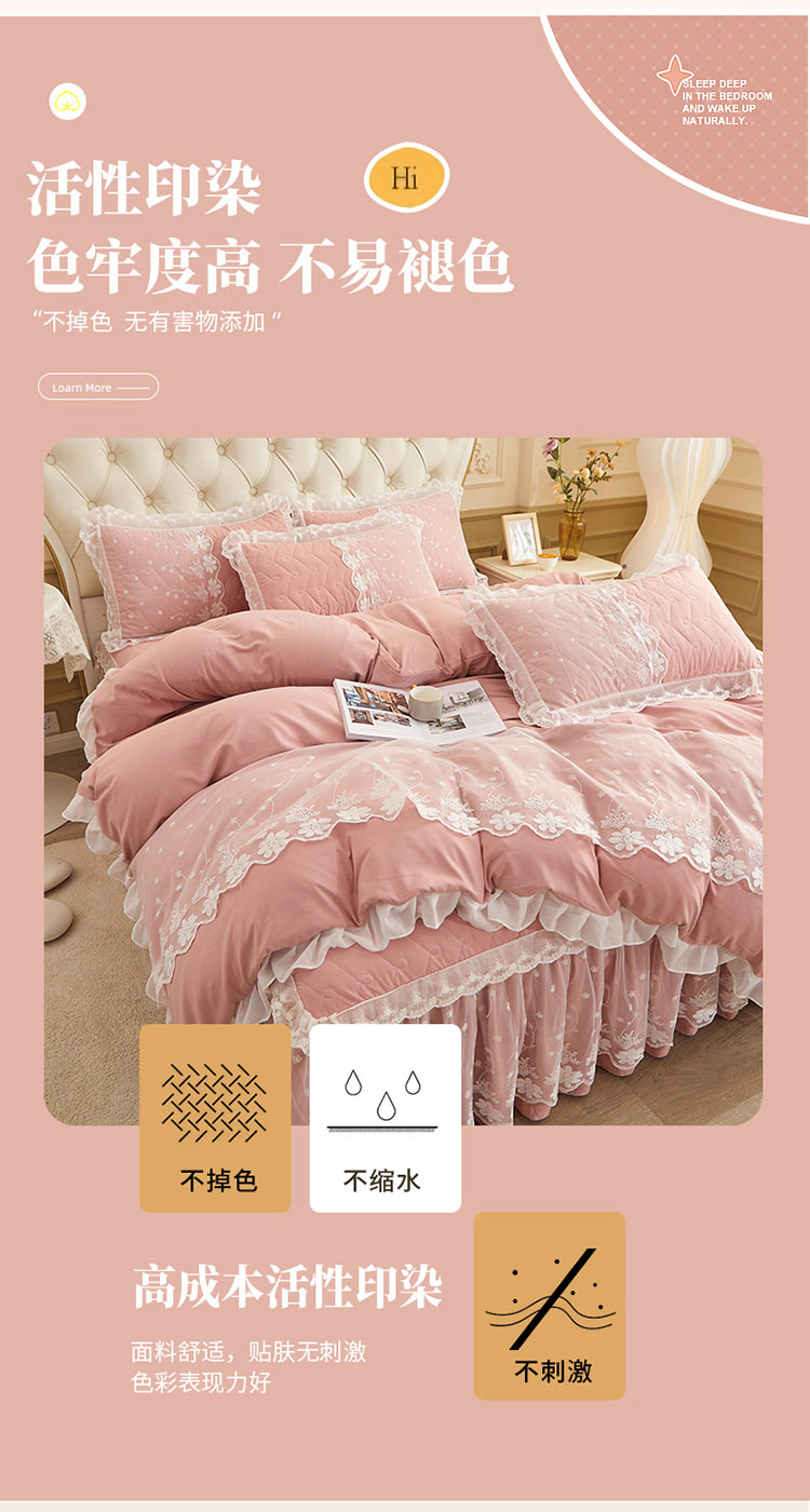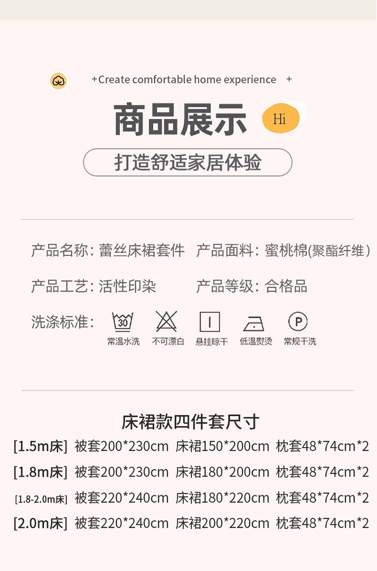 1.8m床裙款四件套(被套200*230cm床裙180*200cm枕套48*74cm*2) | ¥195.00 |