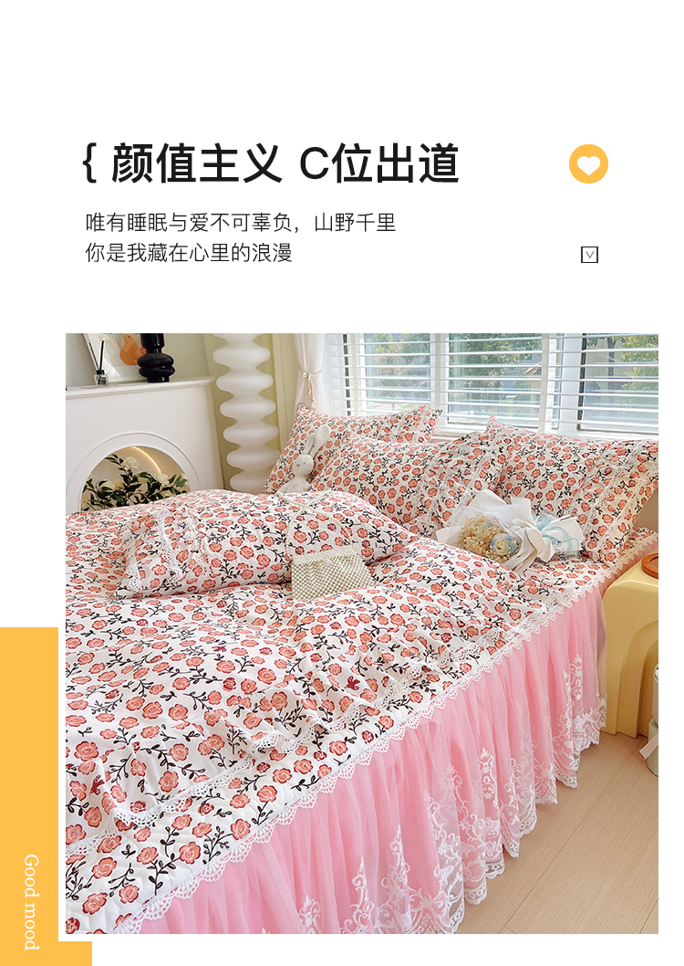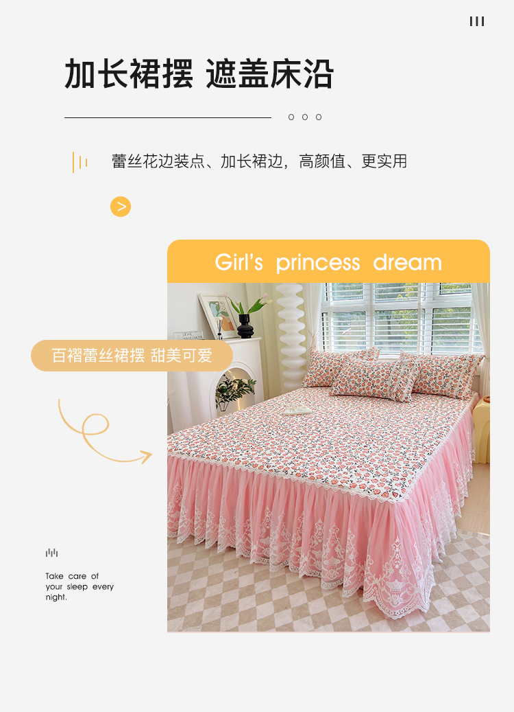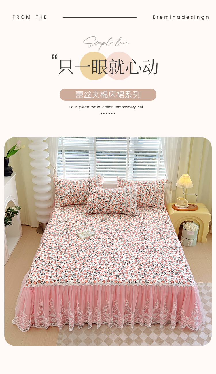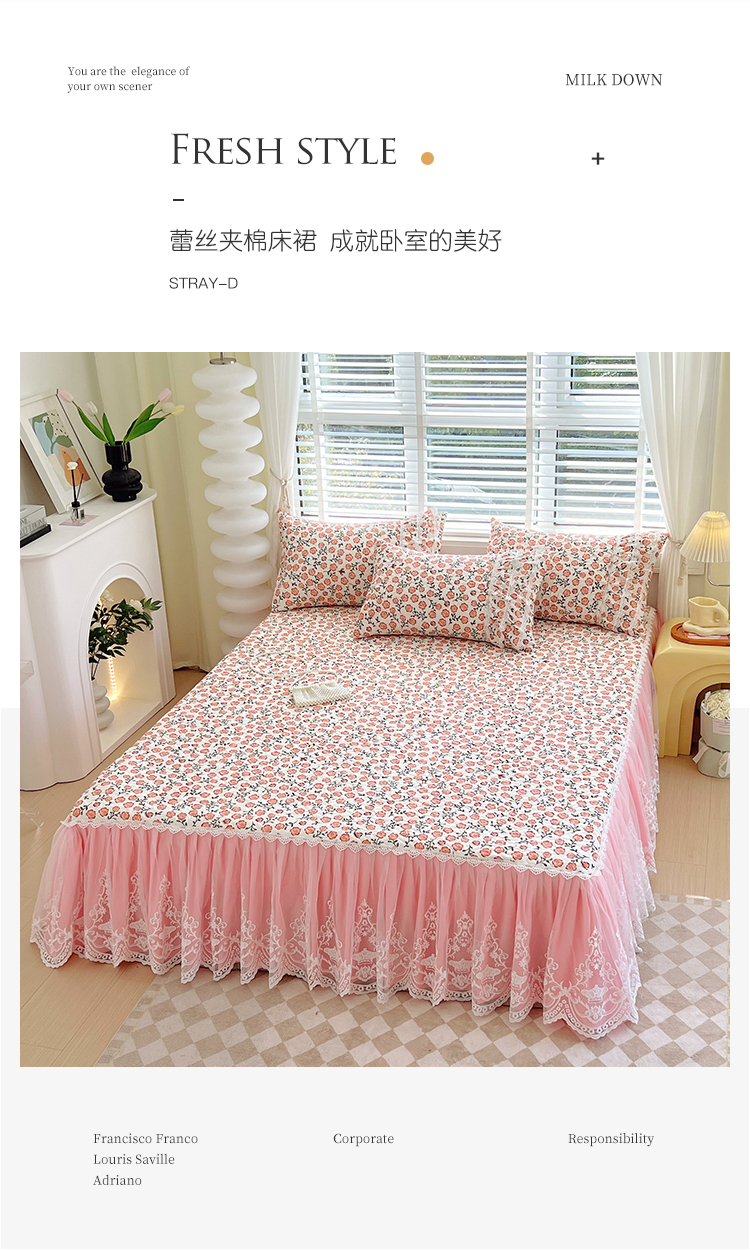 罗艺轩 2024新款法式风蕾丝夹棉床裙三件套 花想容-南国香