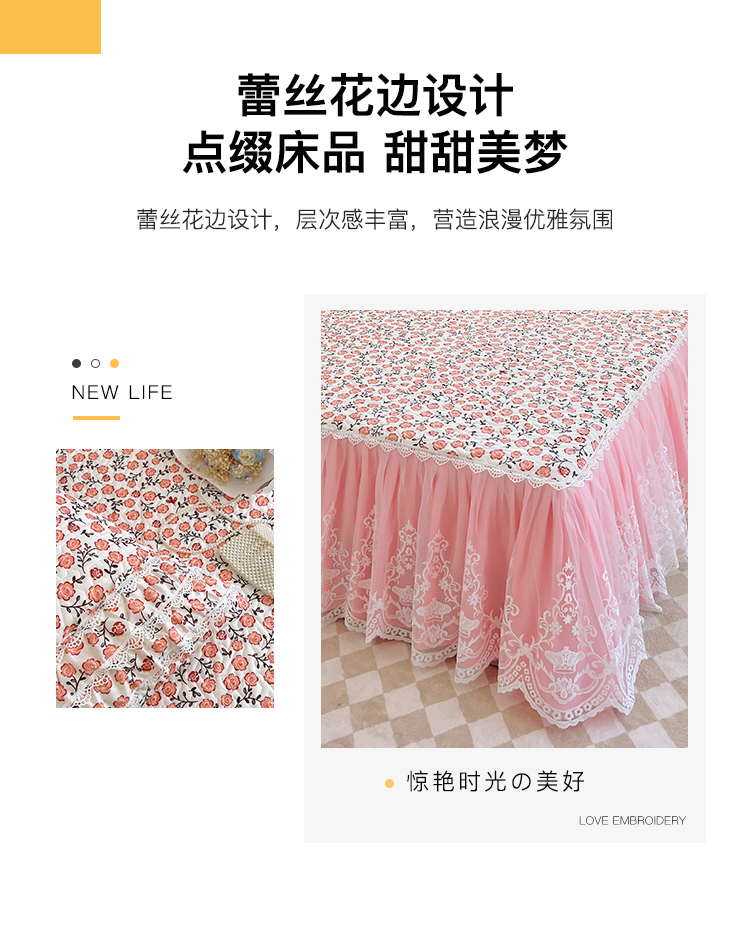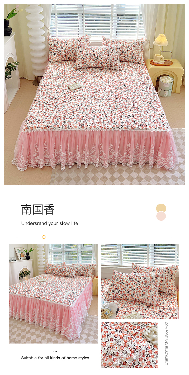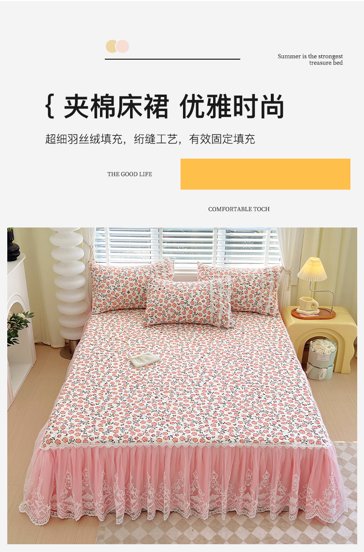 商品名称:罗艺轩 2024新款法式风蕾丝夹棉床裙三件套 花想容-南国香