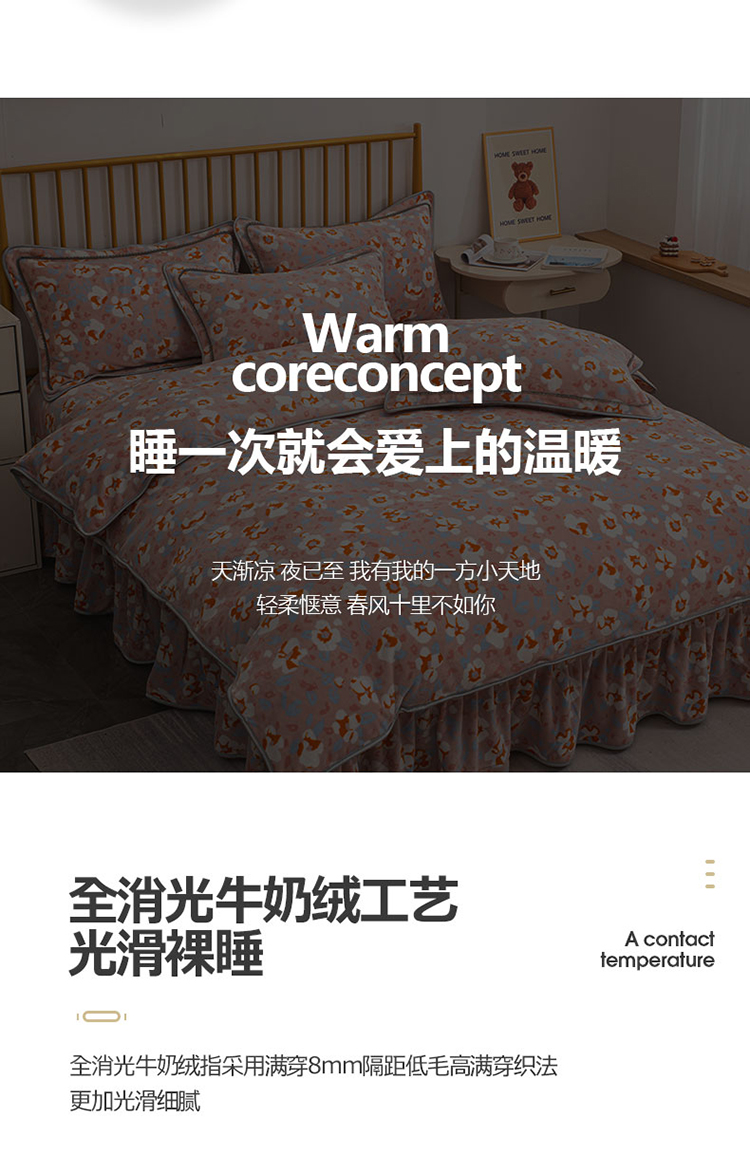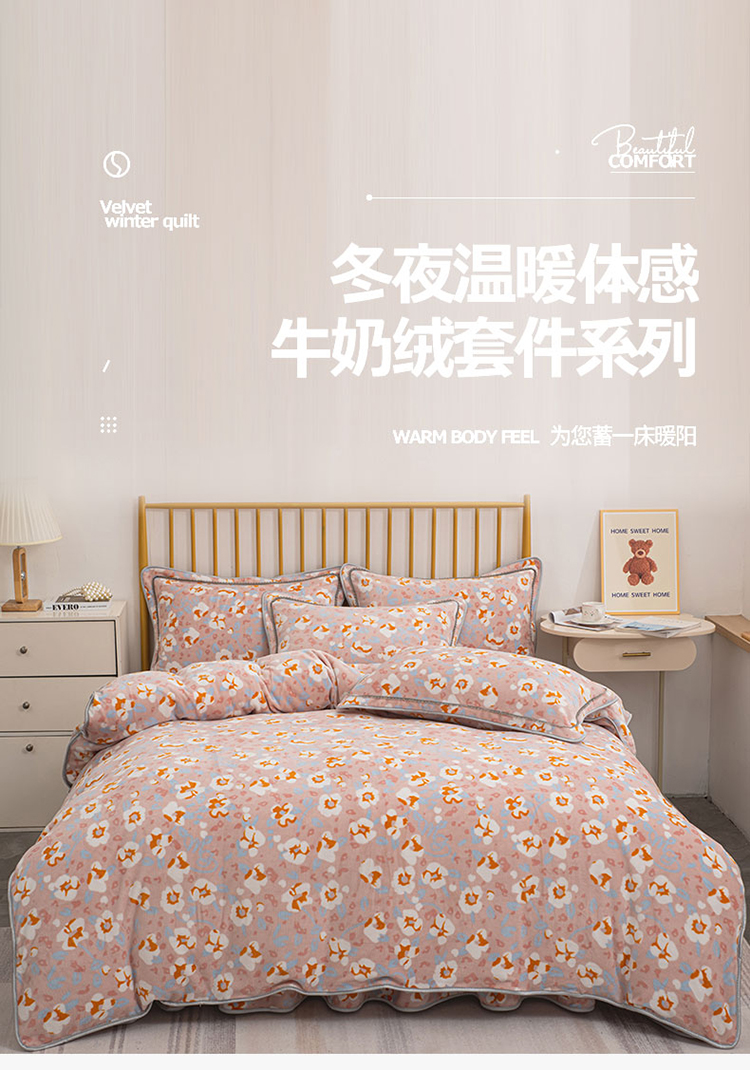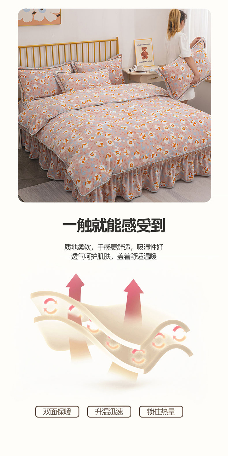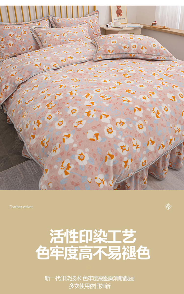 登登家纺 加厚印花牛奶金貂法莱宝宝绒四件套 繁花似锦