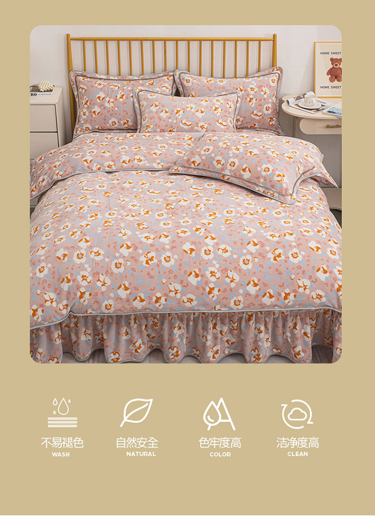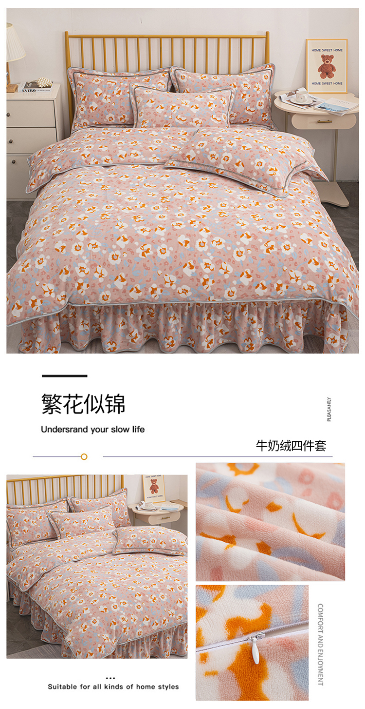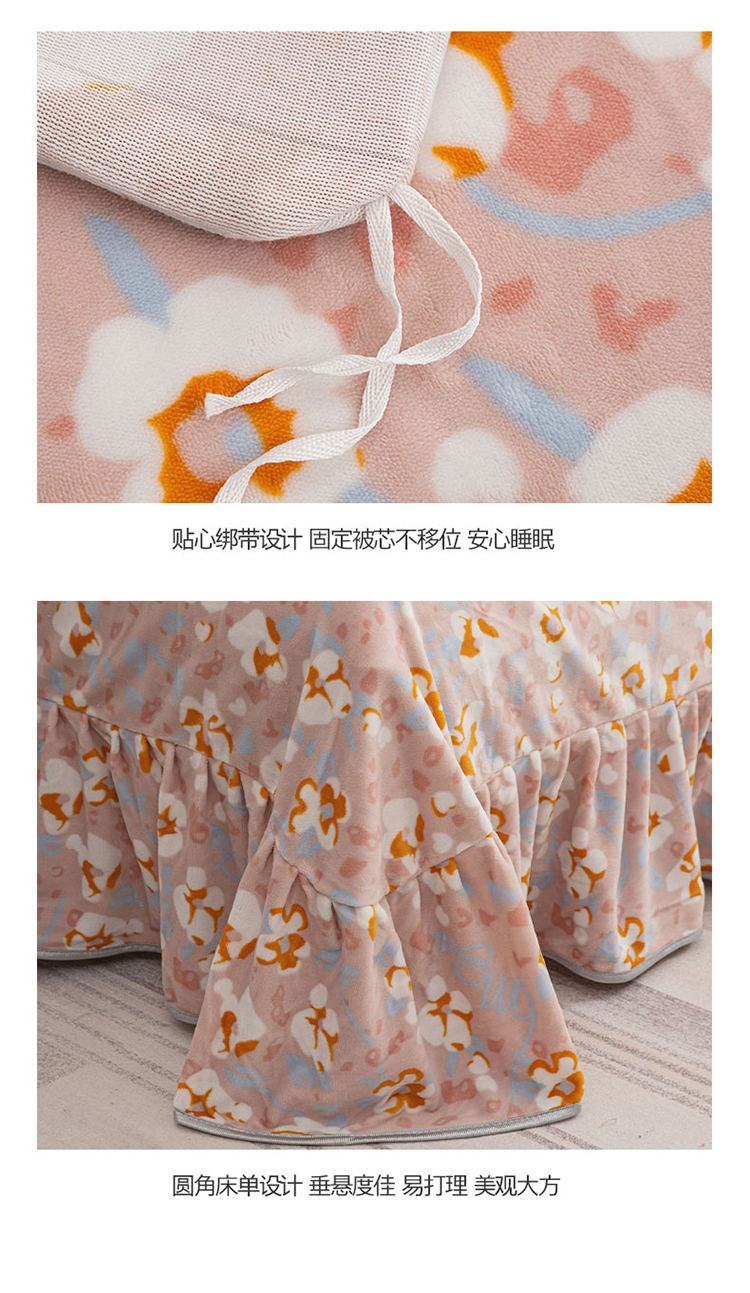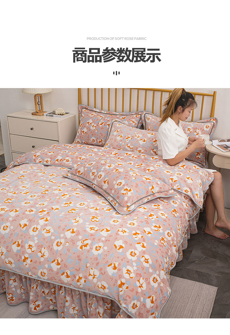 商品名称:登登家纺 加厚印花牛奶金貂法莱宝宝绒四件套 繁花似锦