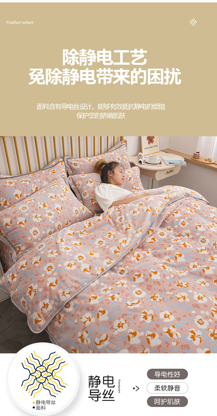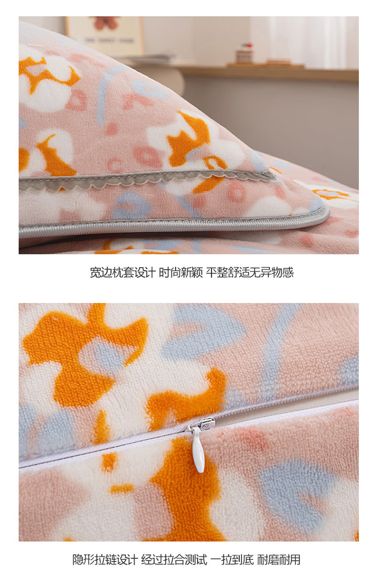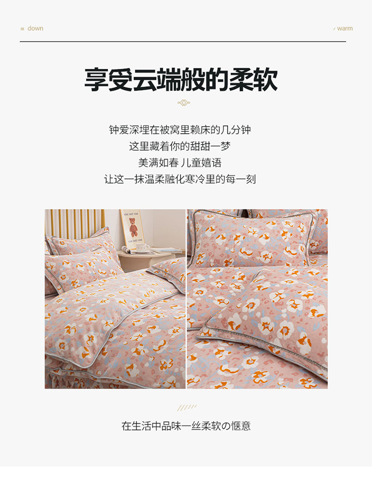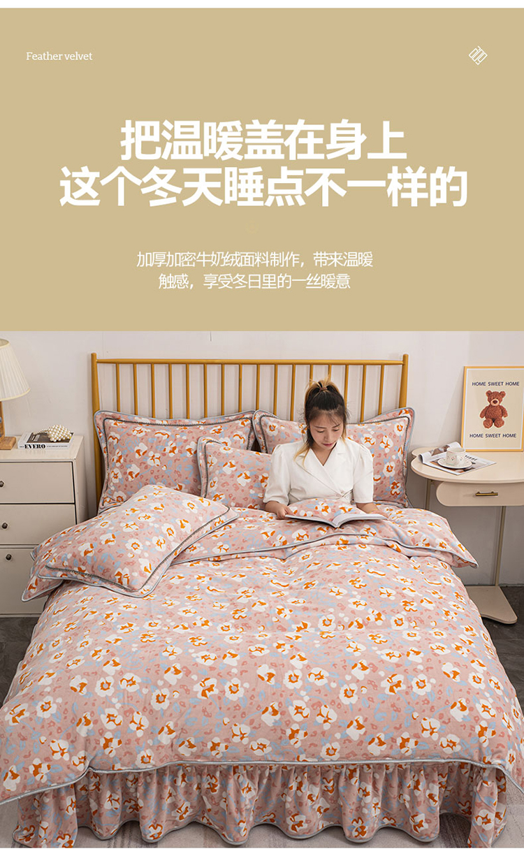 商品名称:登登家纺 加厚印花牛奶金貂法莱宝宝绒四件套 繁花似锦