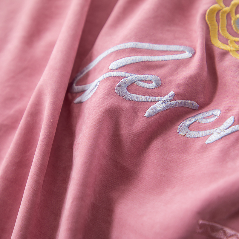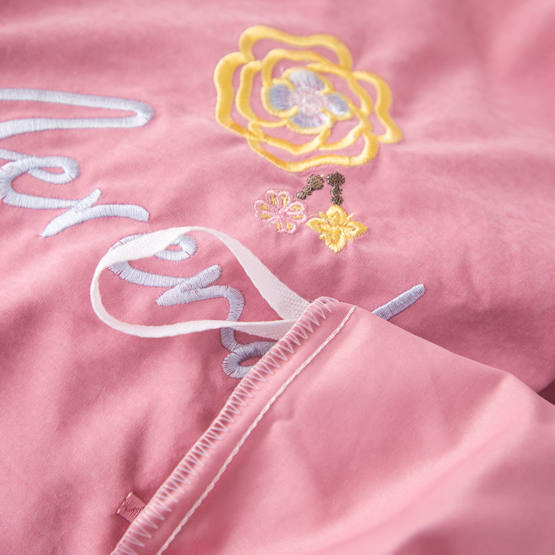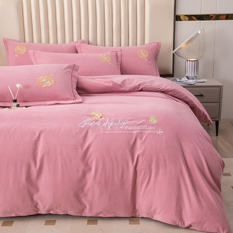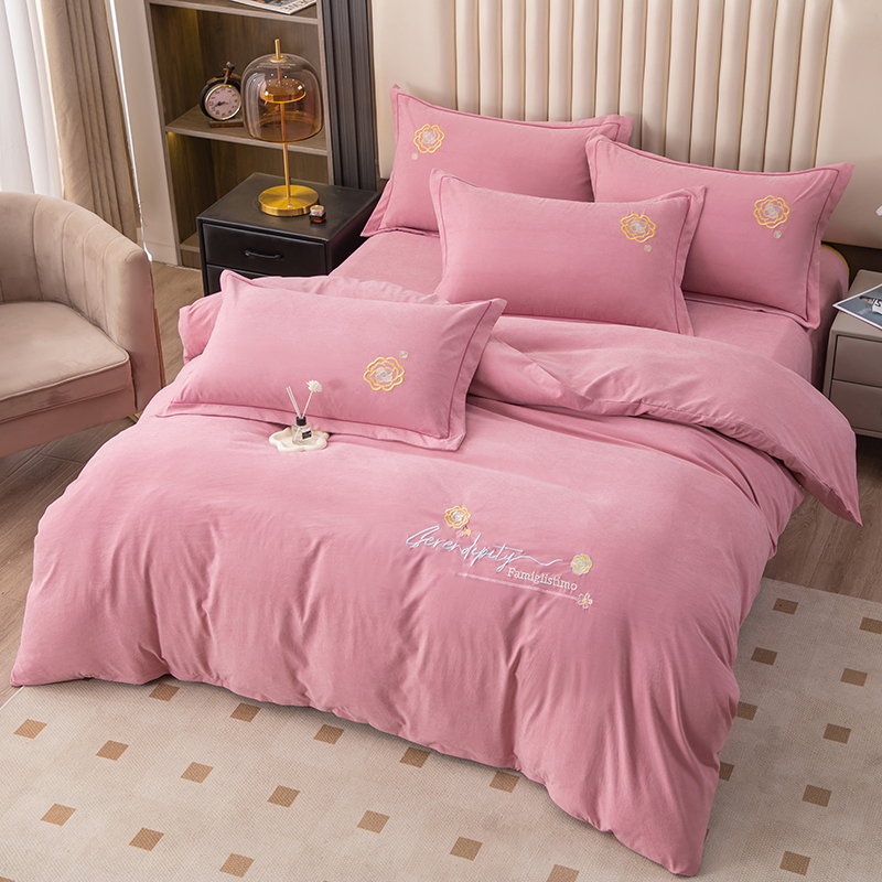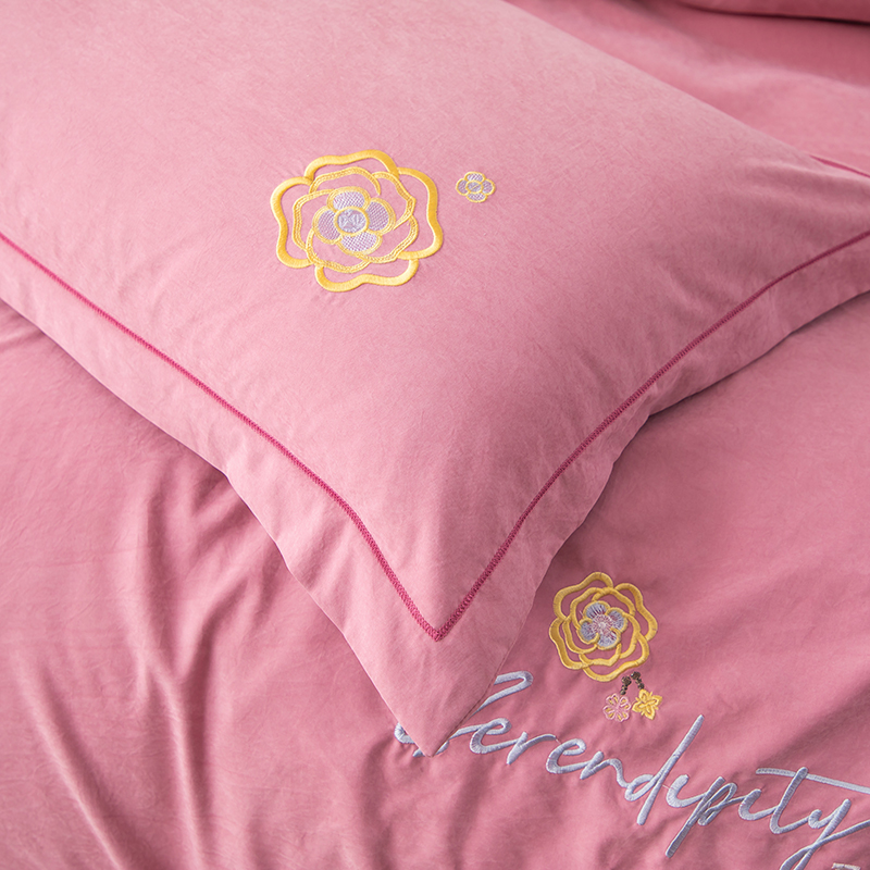 (总)优姿家纺 2026新款全棉棉麻绣花四件套,挚爱-粉豆沙