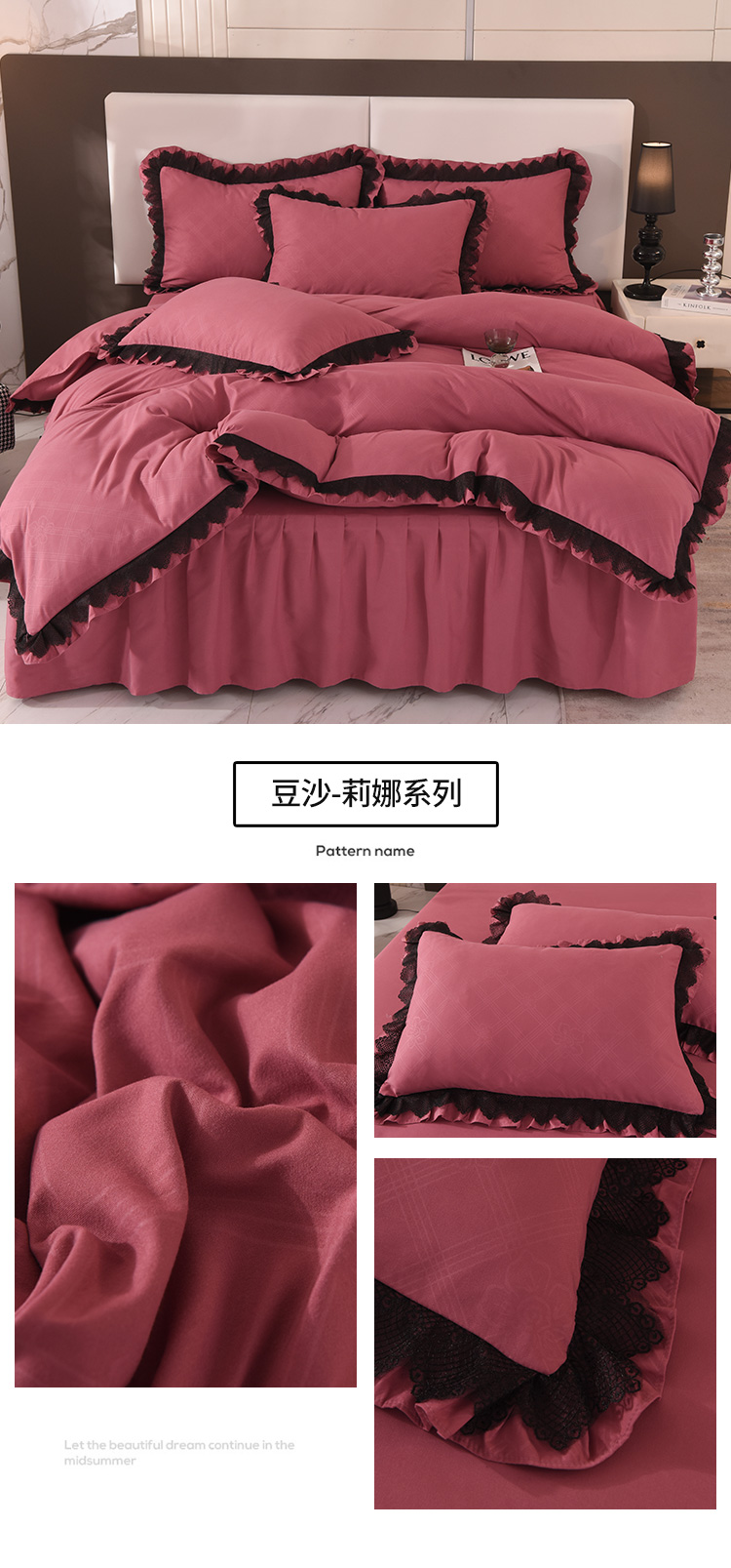 商品名称:芭比蔓 2024新款法式蕾丝电脑边四件套-莉娜系列 豆沙
