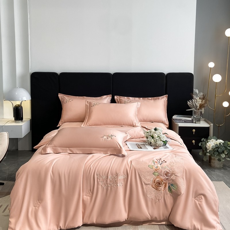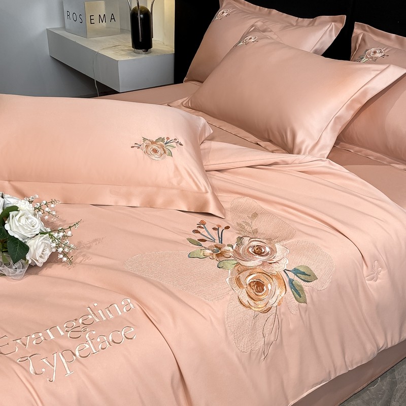 商品名称:伊人居 2024新款轻奢系列刺绣水洗真丝夏被四件套 蝶恋花-温柔粉