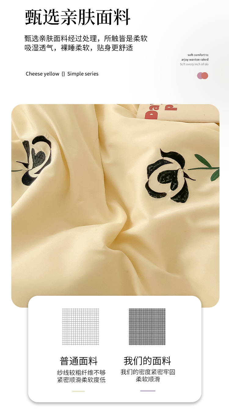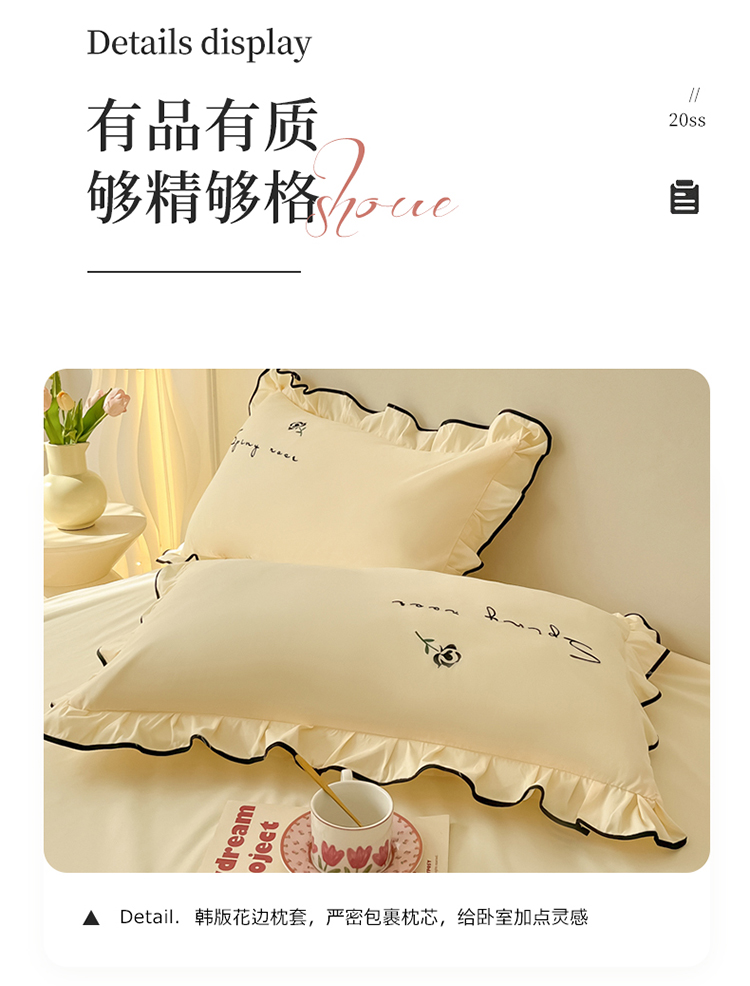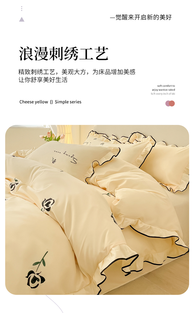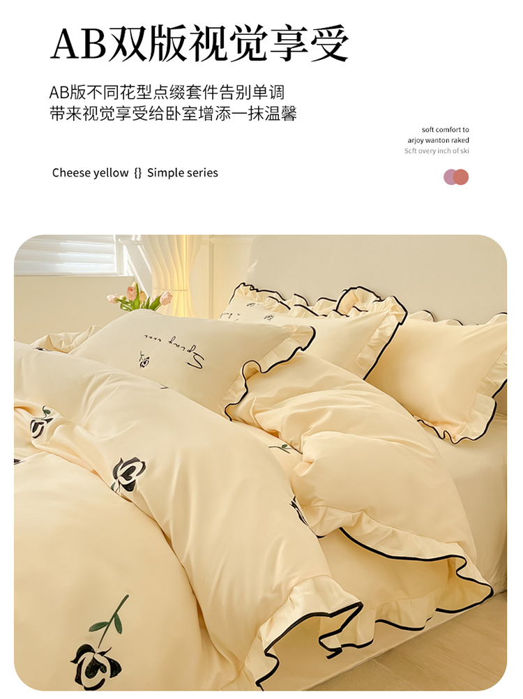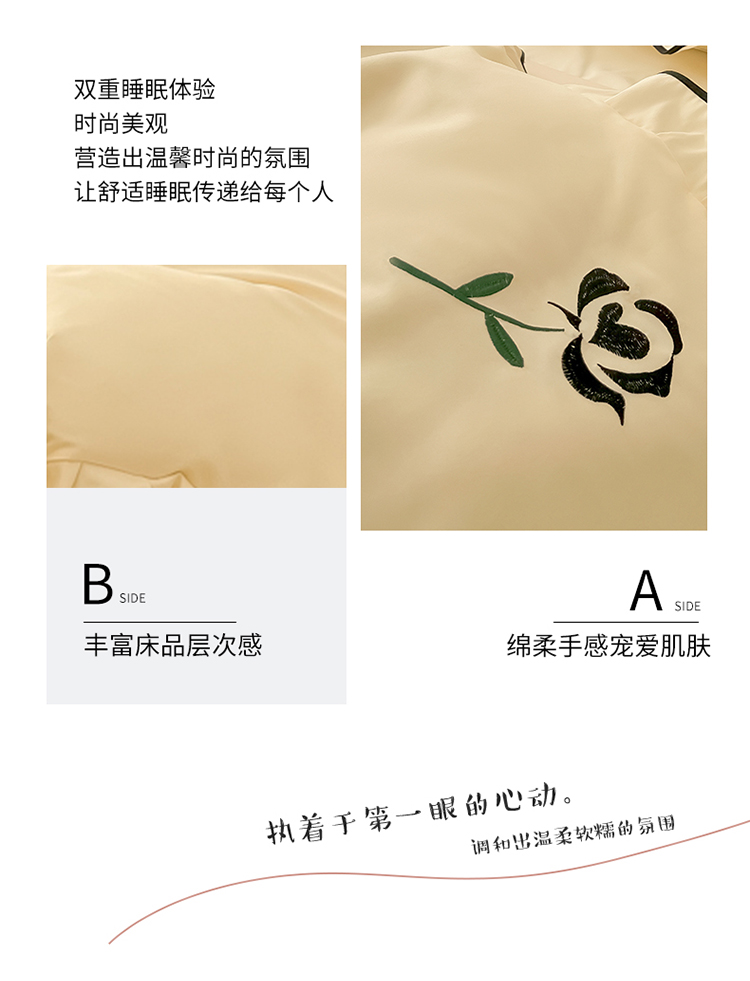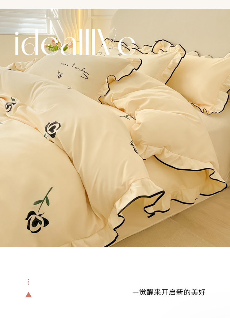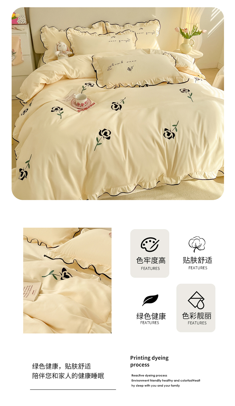 (总)韩都家居 2023新款花边刺绣玫瑰之约系列四件套,小情歌-奶白,小情歌-藕粉,玫瑰之约-红,玫瑰之约-黑