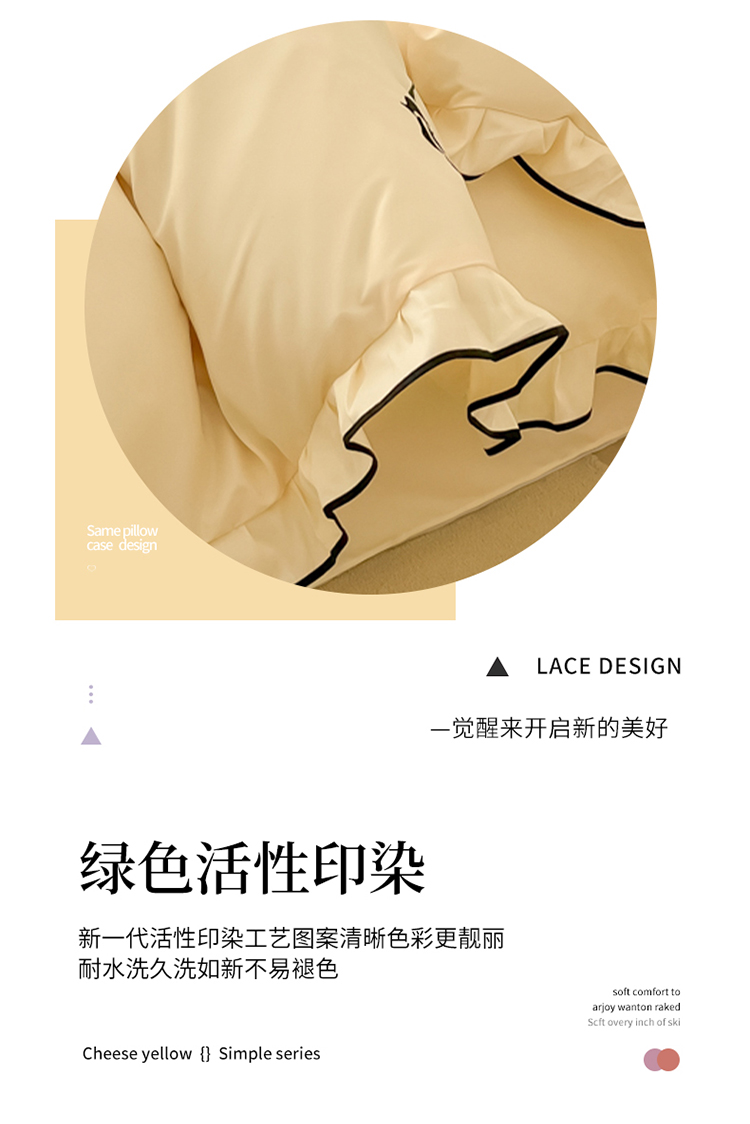 (总)韩都家居 2023新款公主风花边双拼四件套,粉玉奶黄,粉玉浅紫,奶油黄,奶油青绿,青绿奶黄,天蓝浅粉