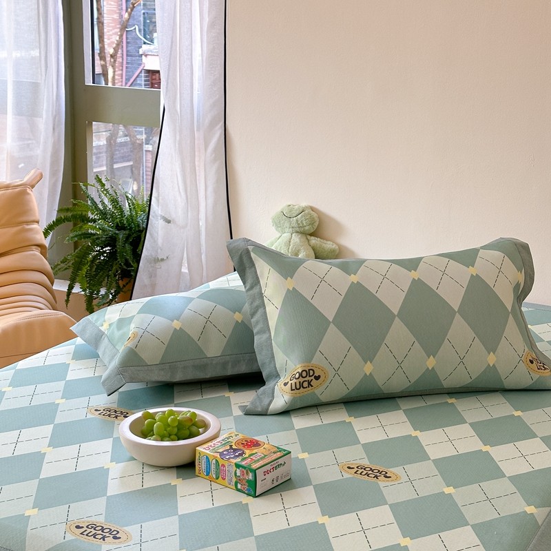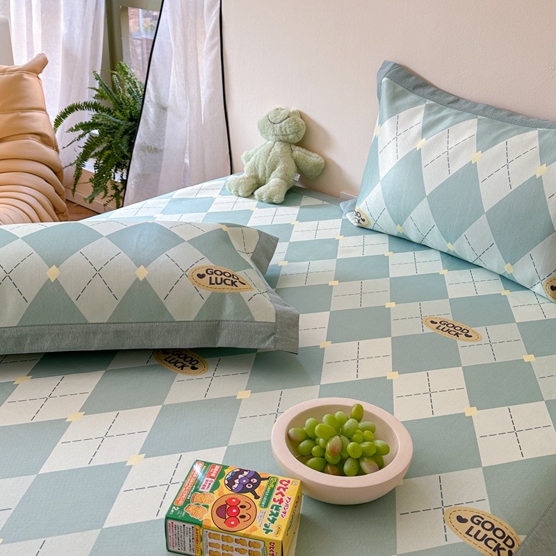 时年 2022新款全棉40支13372ins条纹款四件套 复古奶绿,复古奶绿