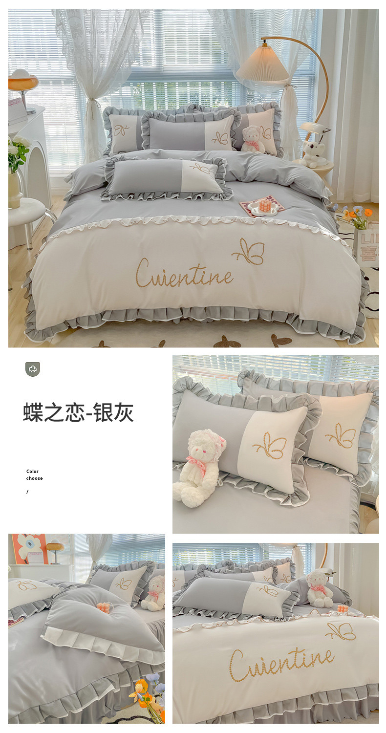当前位置: 91家纺网 > 商品网购 > 床品套件 > 四件套 > 普通磨毛四件套 > 慕语2023新款蝶之恋刺绣磨毛花边四件套 蝶之恋-银灰