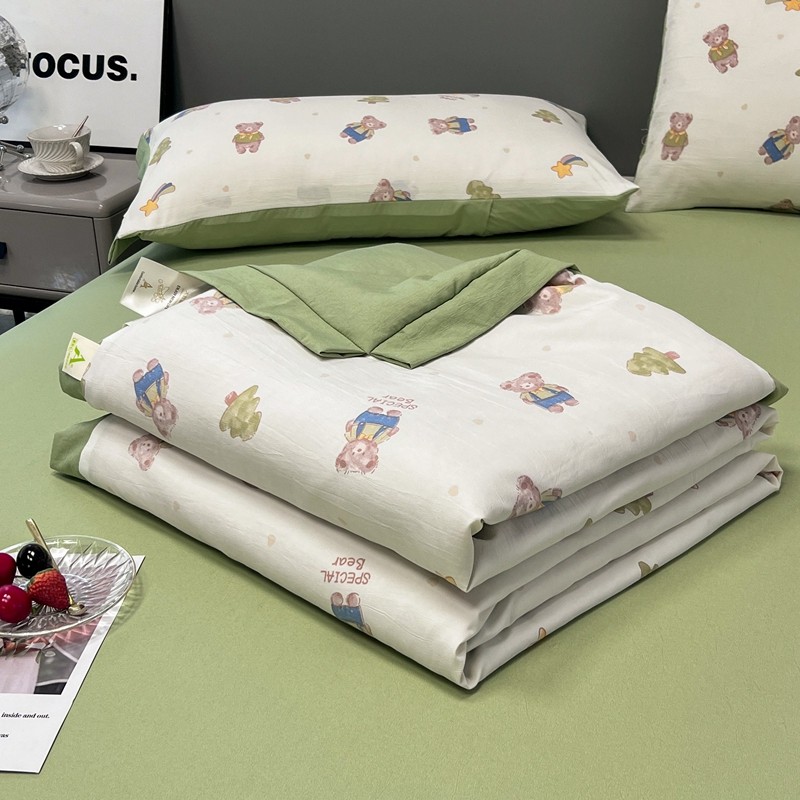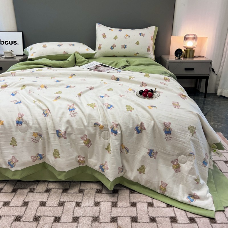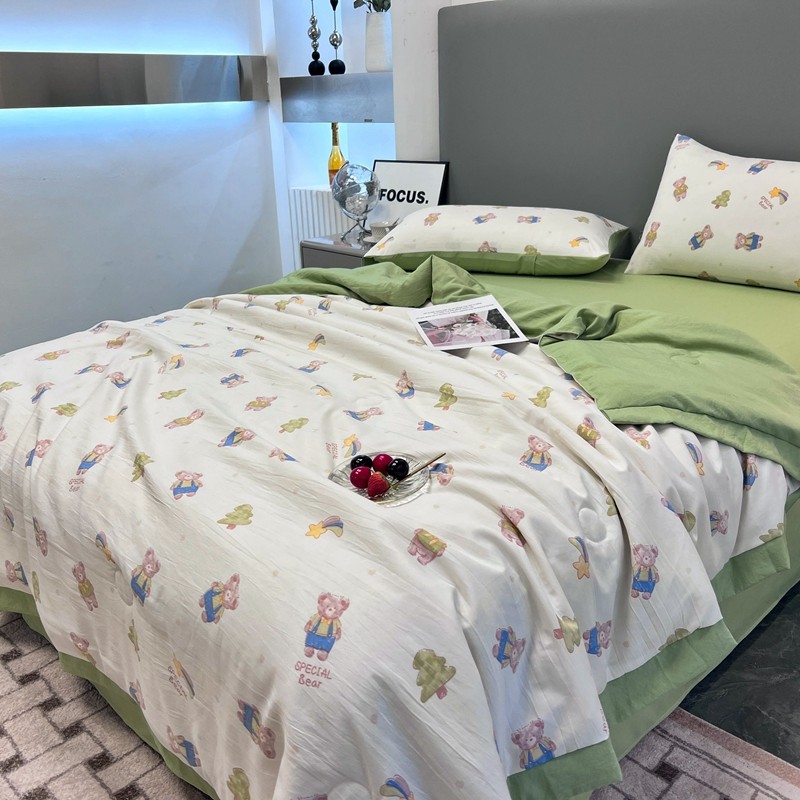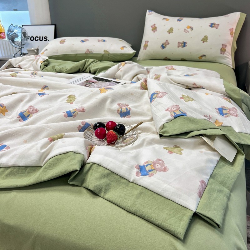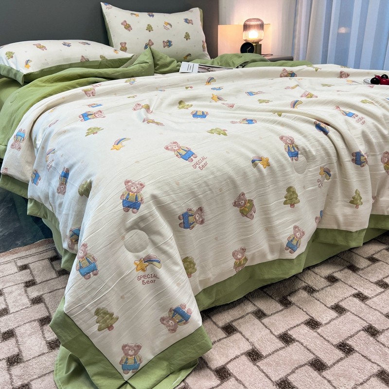 慕尚 2025新款水洗棉麻夏被四件套 萌萌可爱熊