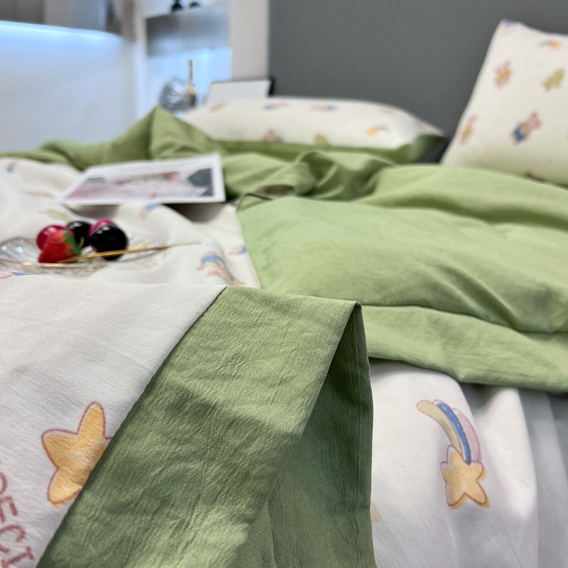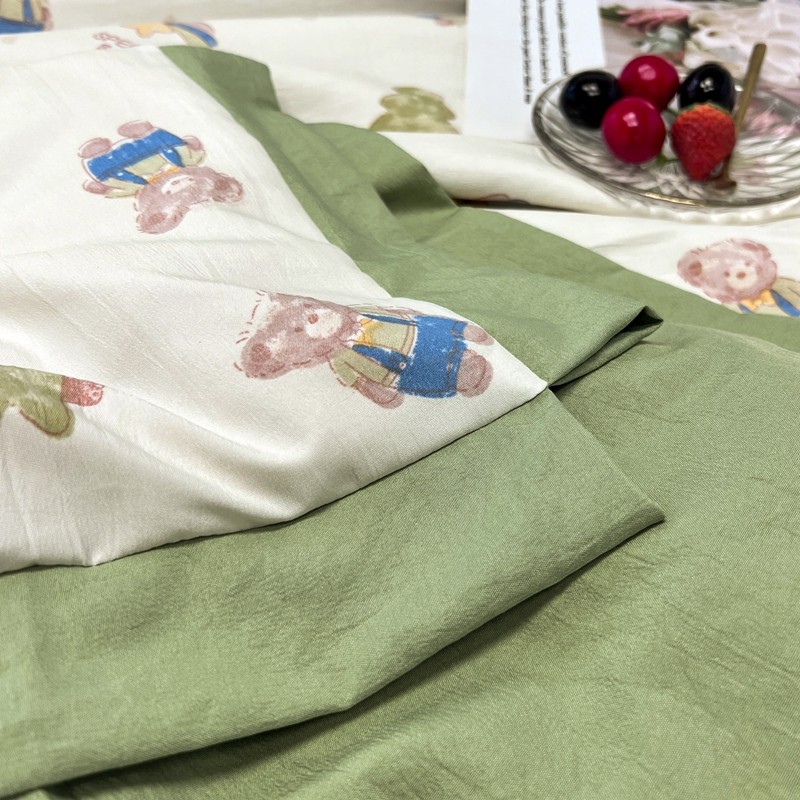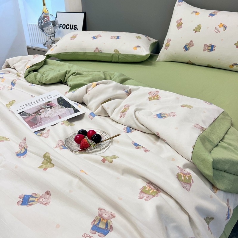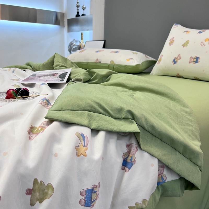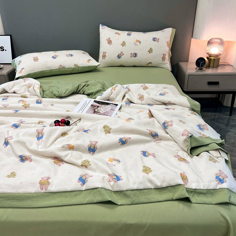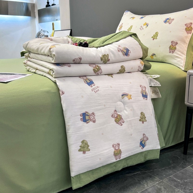 慕尚 2025新款水洗棉麻夏被四件套 萌萌可爱熊