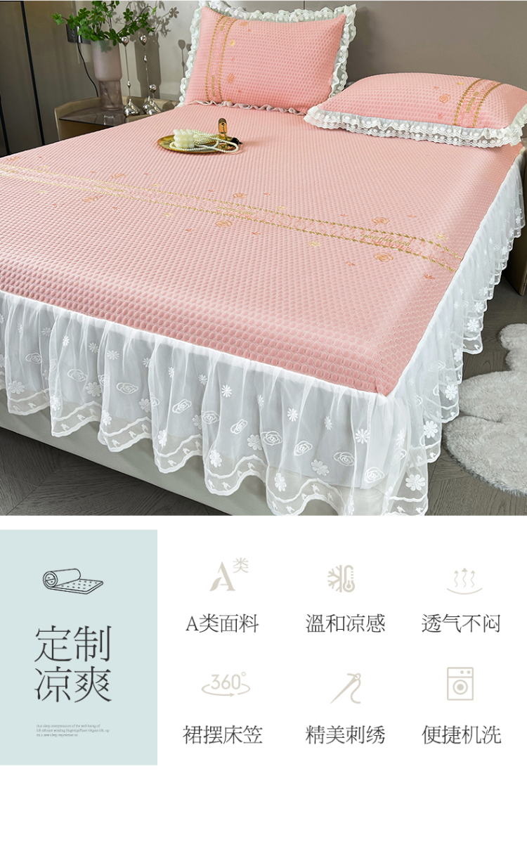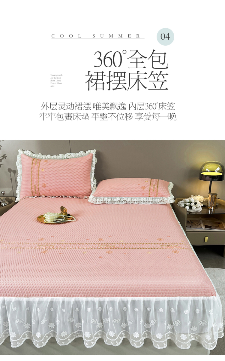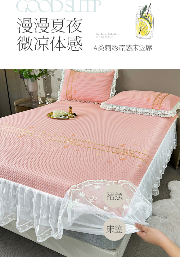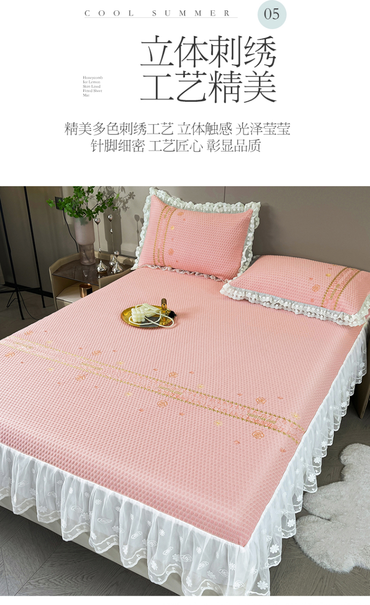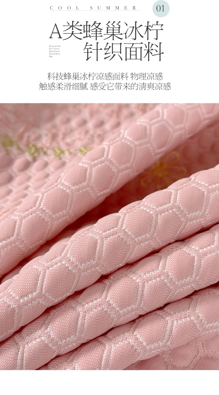 宜凡-2024新款A类蜂巢冰柠凉席床笠款三件套 简爱 柔玉