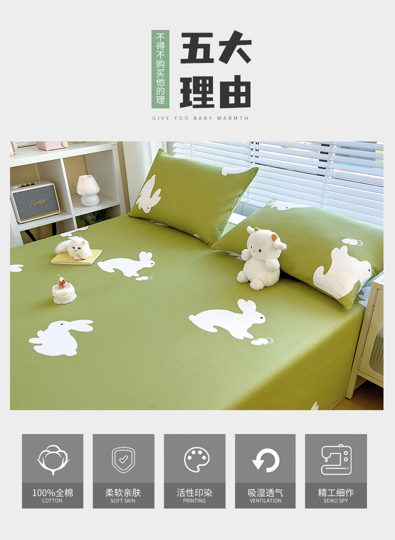芃成家纺 2023新款全棉13070单床单 可爱兔
