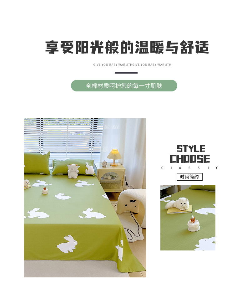 • 91家纺网 家纺一手货源 找家纺 芃成家纺 2023新款全棉13070单床单 可爱兔