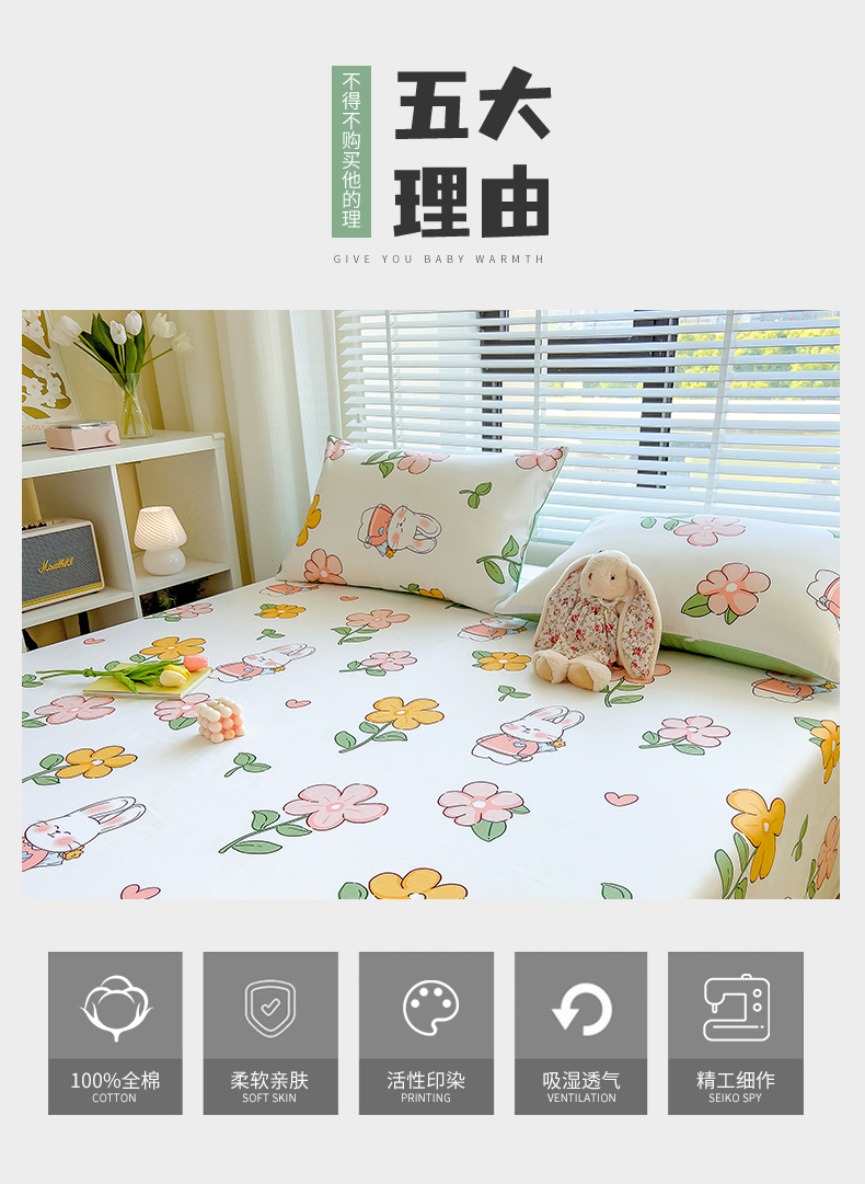 芃成家纺 2023新款全棉13070单床单 时尚小兔