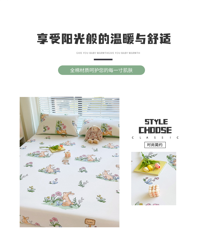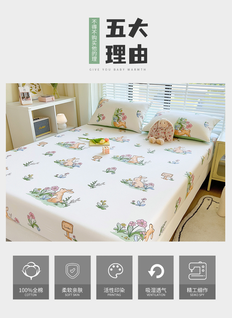 芃成家纺 2023新款全棉13070单床笠 花园兔